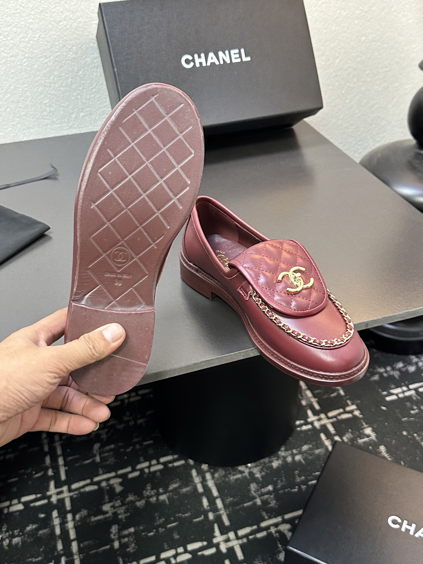This shoes is AAAAA 1:1 quality (superb). Materials used are identical to the original ones. Chanel trademark marks are indistinguishable to the authentic. Photos take by actual shoes, what you receive will be 100% same with our photos.