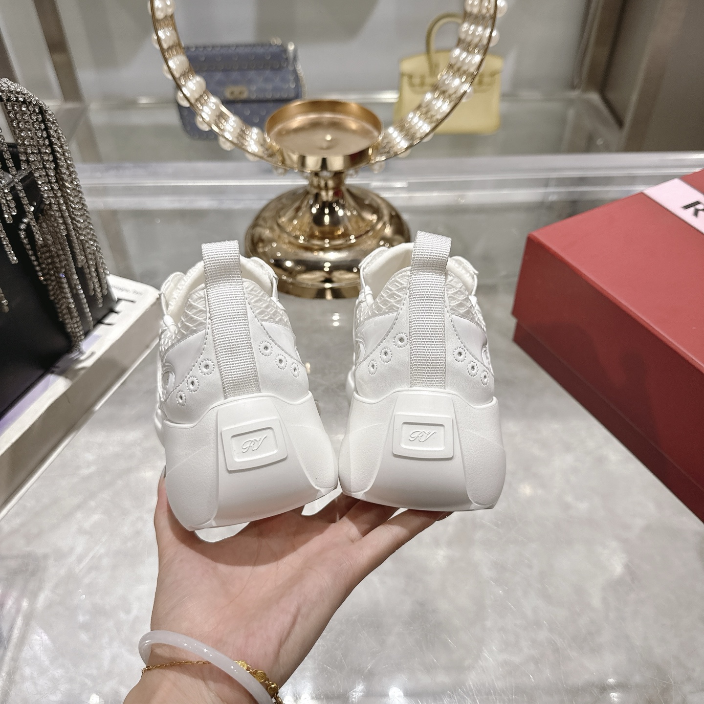 This shoes is AAAAA 1:1 quality (superb). Materials used are identical to the original ones. Roger Vivier trademark marks are indistinguishable to the authentic. Photos take by actual shoes, what you receive will be 100% same with our photos.