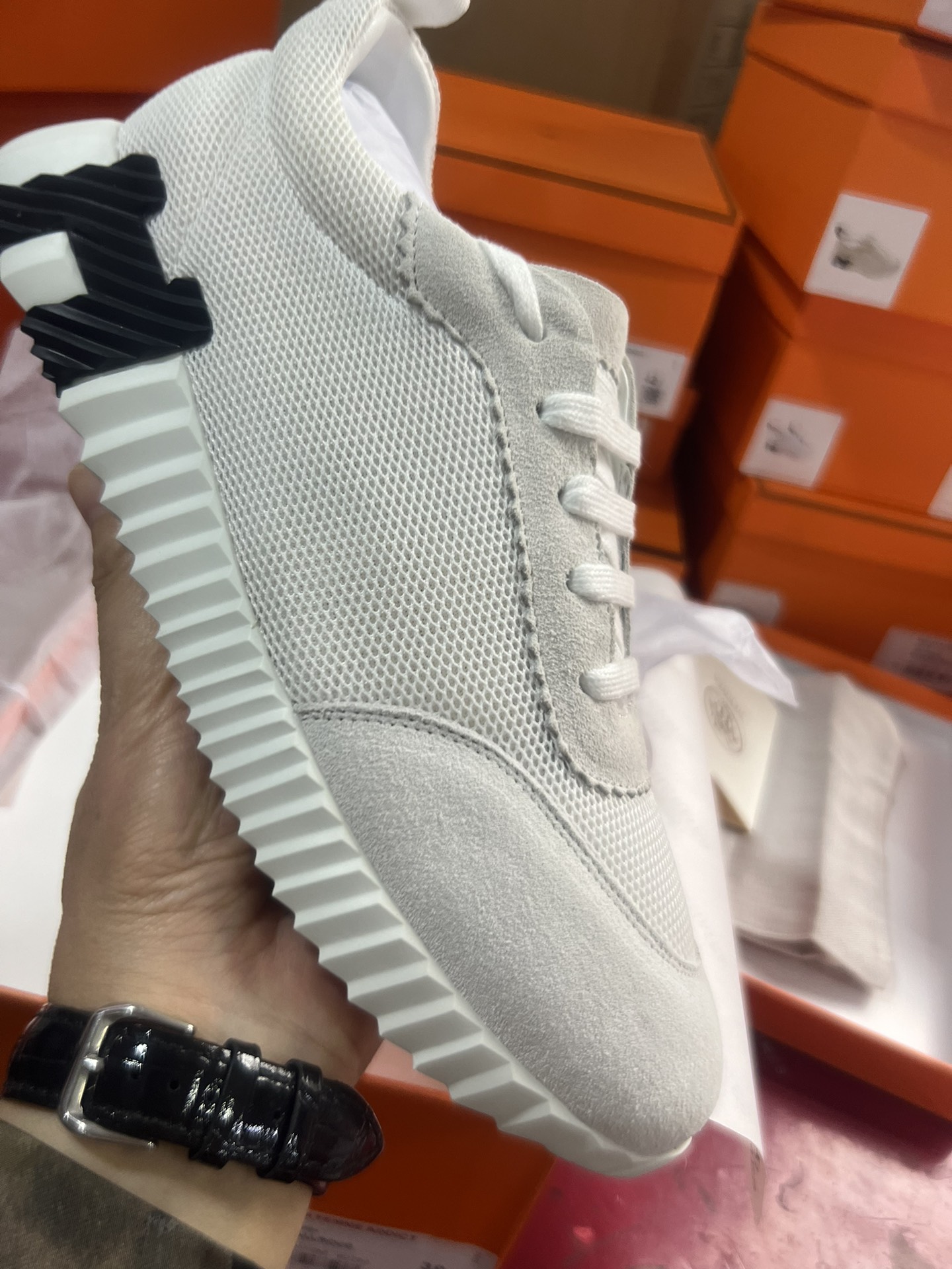 This shoes is AAAAA 1:1 quality (superb). Materials used are identical to the original ones. trademark marks are indistinguishable to the authentic. Photos take by actual shoes, what you receive will be 100% same with our photos.