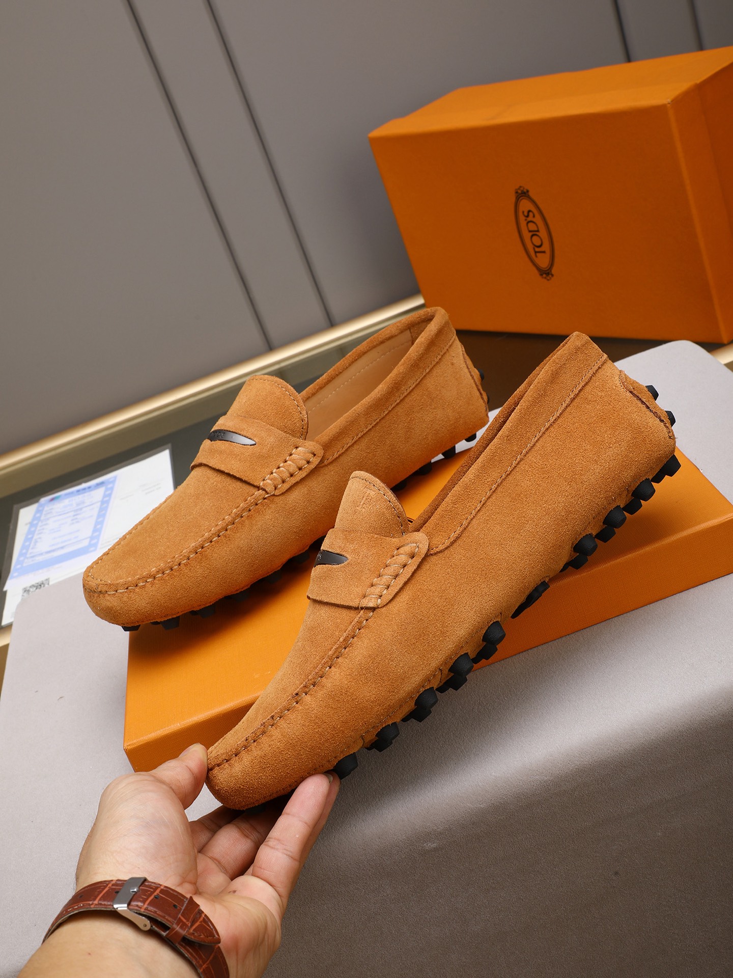 This shoes is AAAAA 1:1 quality (superb). Materials used are identical to the original ones. Tod's trademark marks are indistinguishable to the authentic. Photos take by actual shoes, what you receive will be 100% same with our photos.