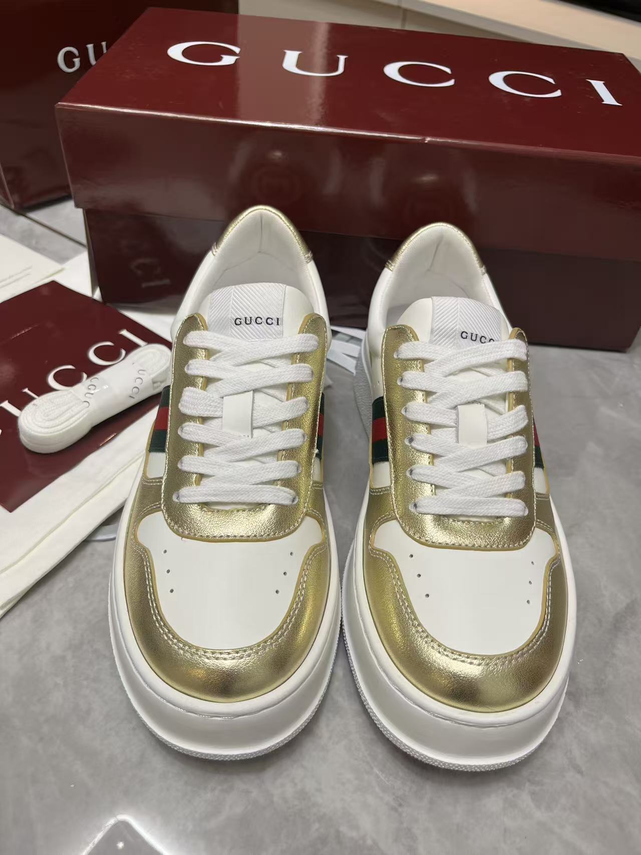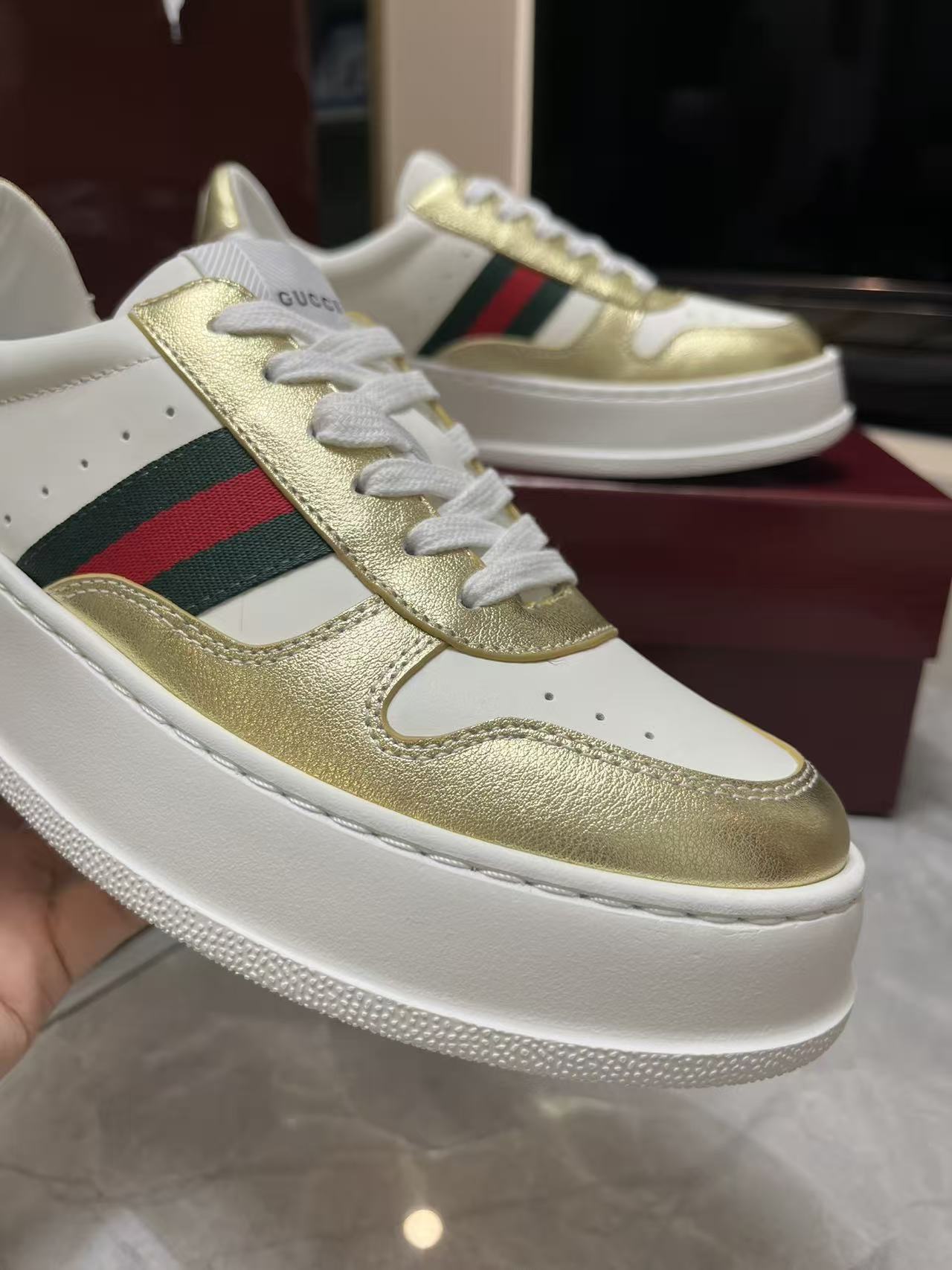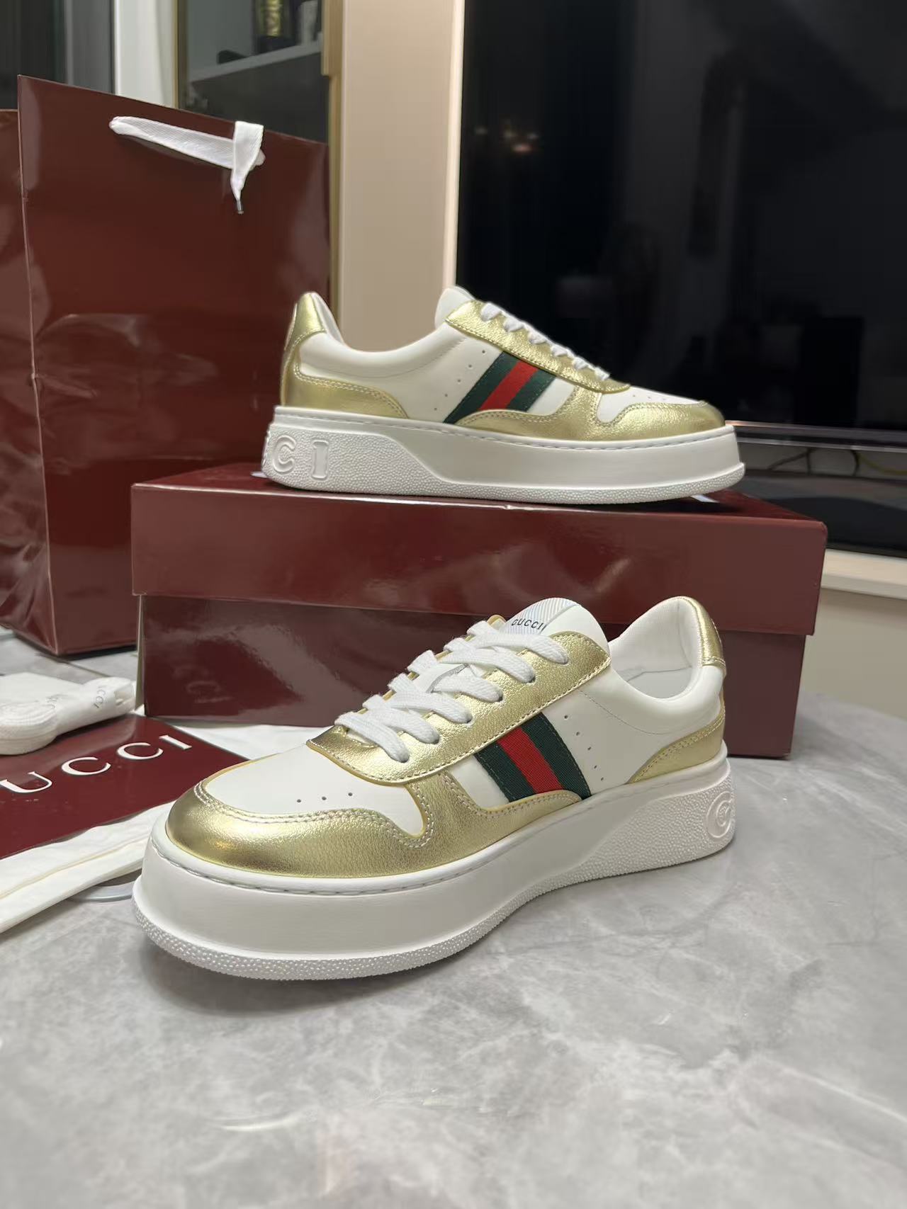 This shoes is AAAAA 1:1 quality (superb). Materials used are identical to the original ones. Gucci trademark marks are indistinguishable to the authentic. Photos take by actual shoes, what you receive will be 100% same with our photos.