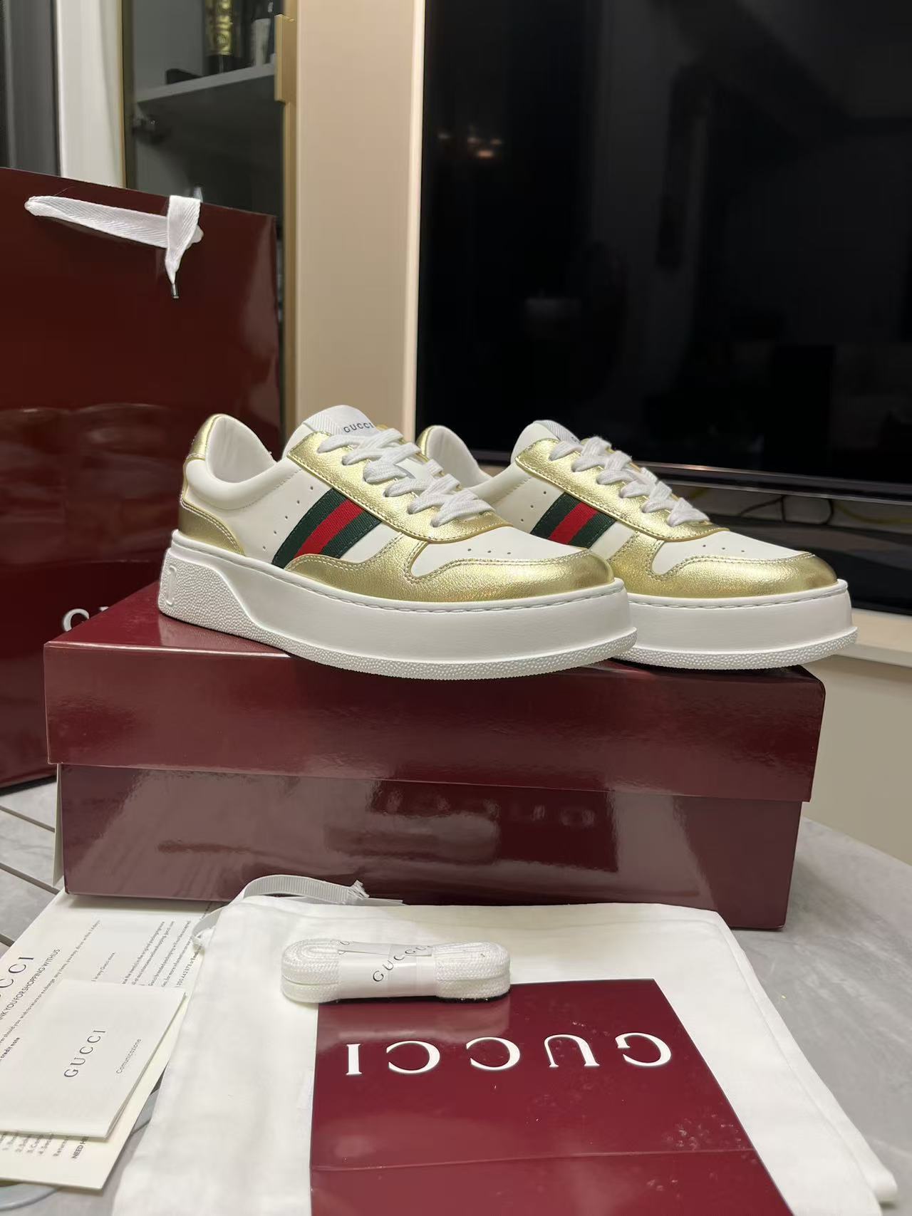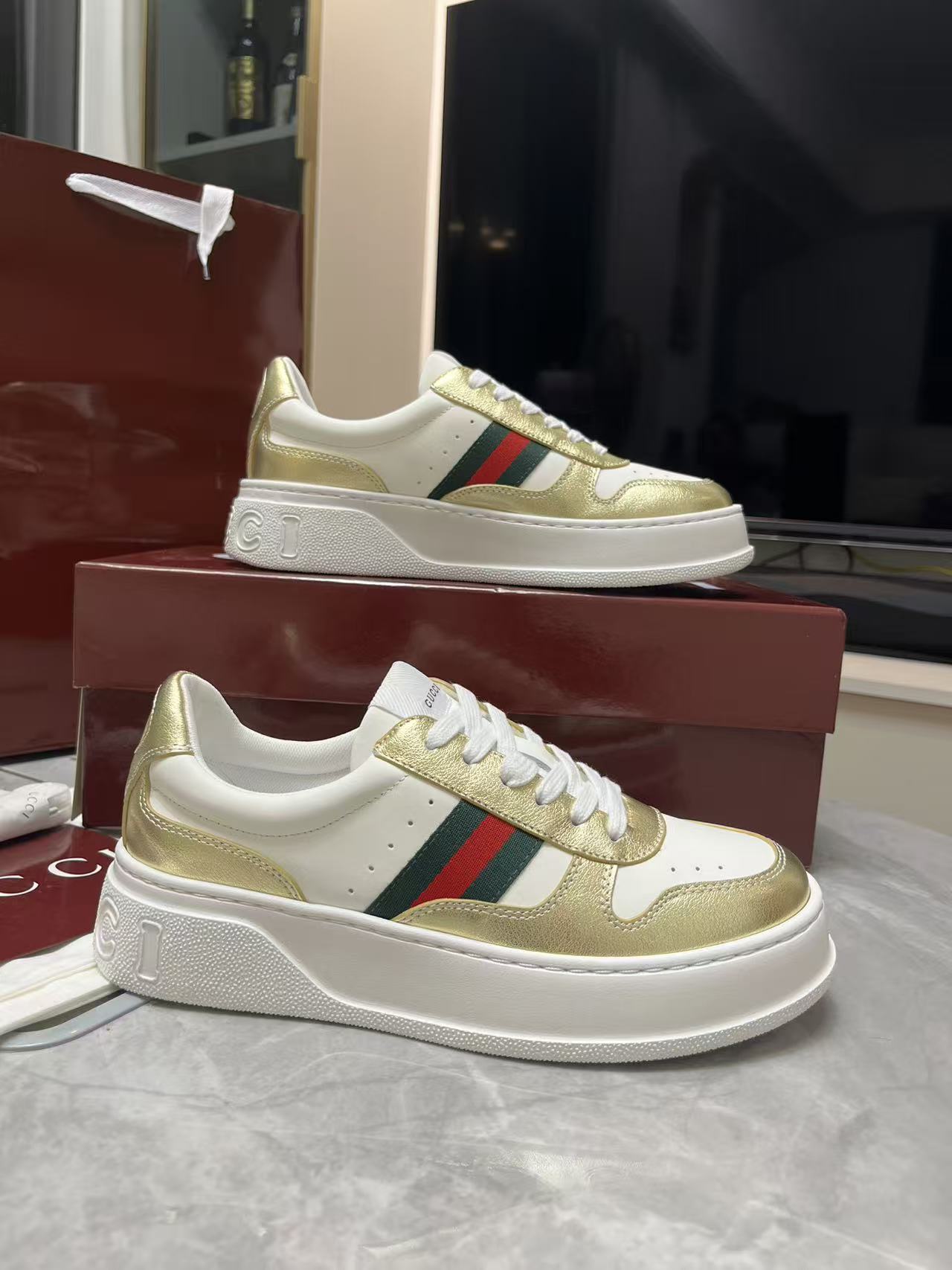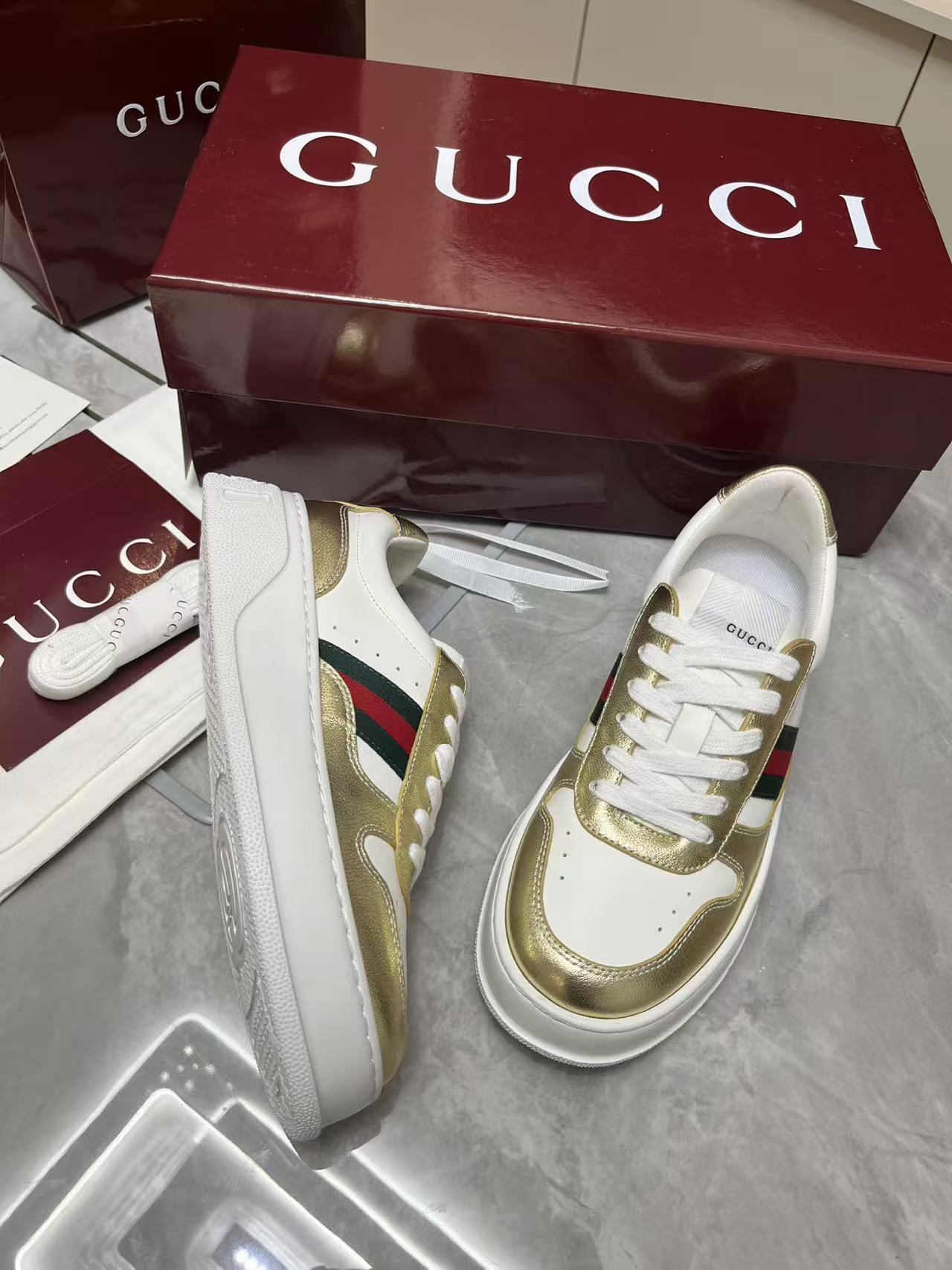 This shoes is AAAAA 1:1 quality (superb). Materials used are identical to the original ones. Gucci trademark marks are indistinguishable to the authentic. Photos take by actual shoes, what you receive will be 100% same with our photos.