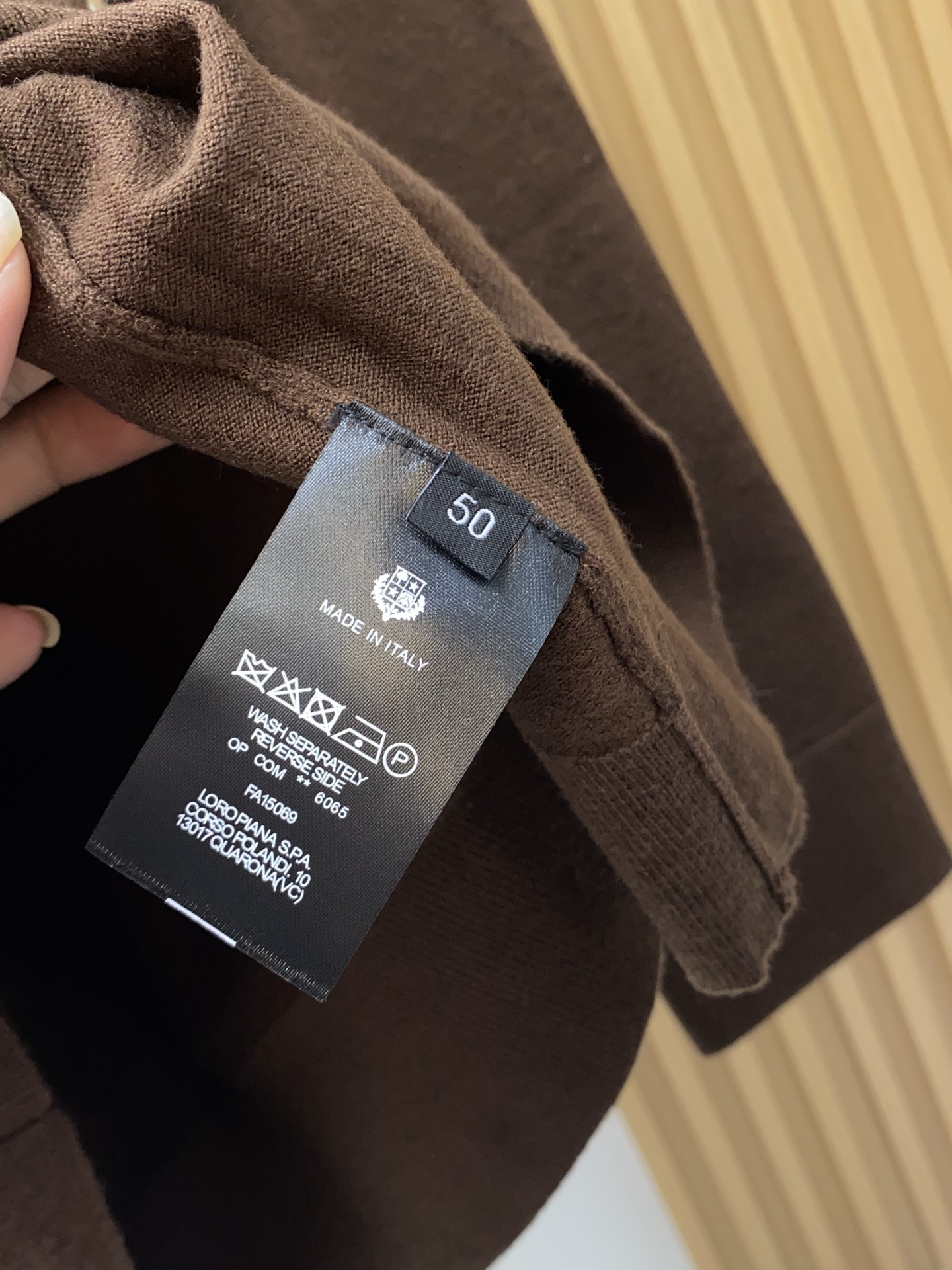 This clothes is AAAAA 1:1 quality (superb). Materials used are identical to the original ones. Loro Piana trademark marks are indistinguishable to the authentic. Photos take by actual clothes, what you receive will be 100% same with our photos.