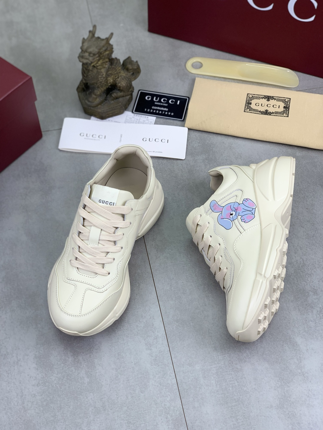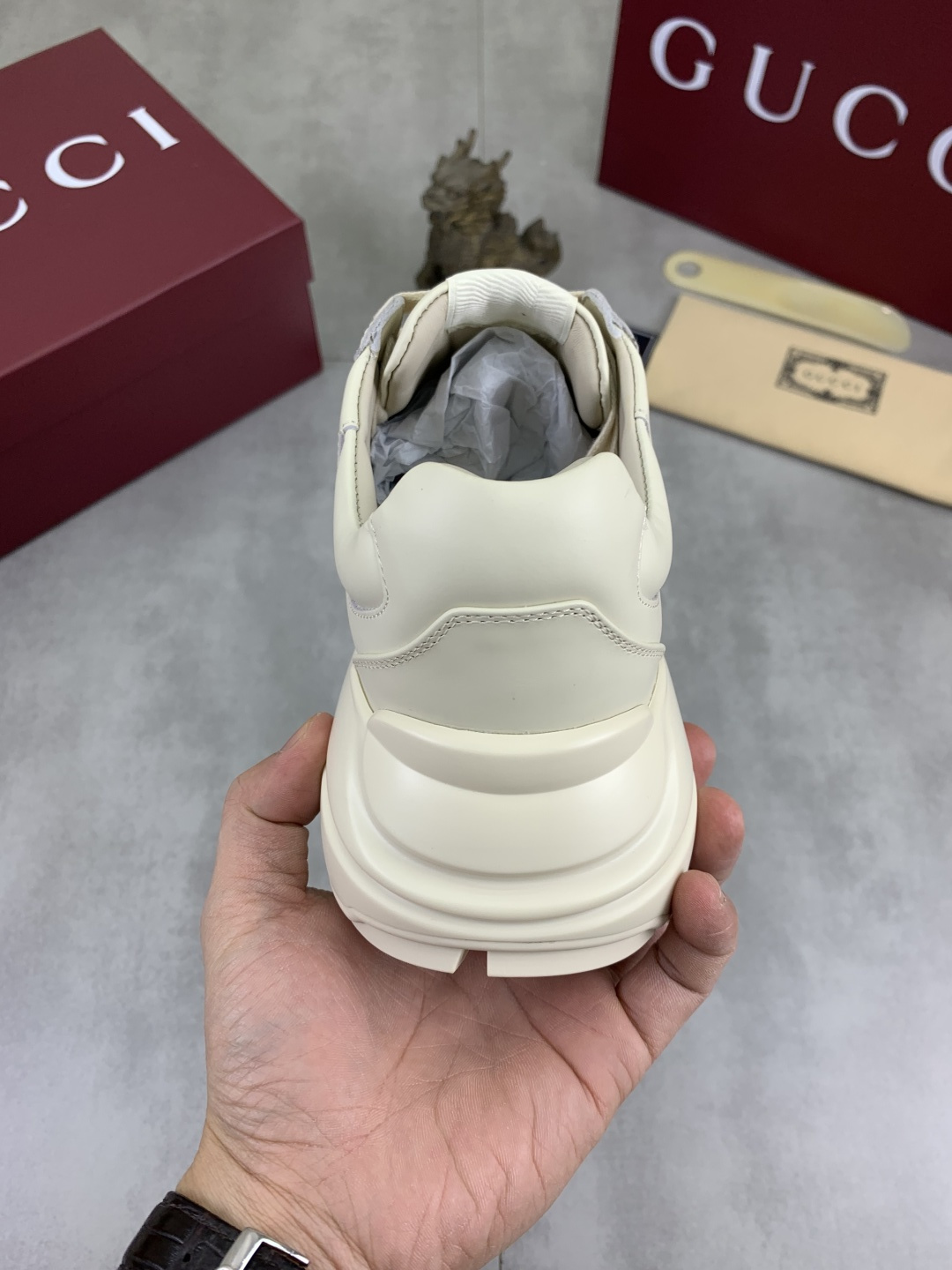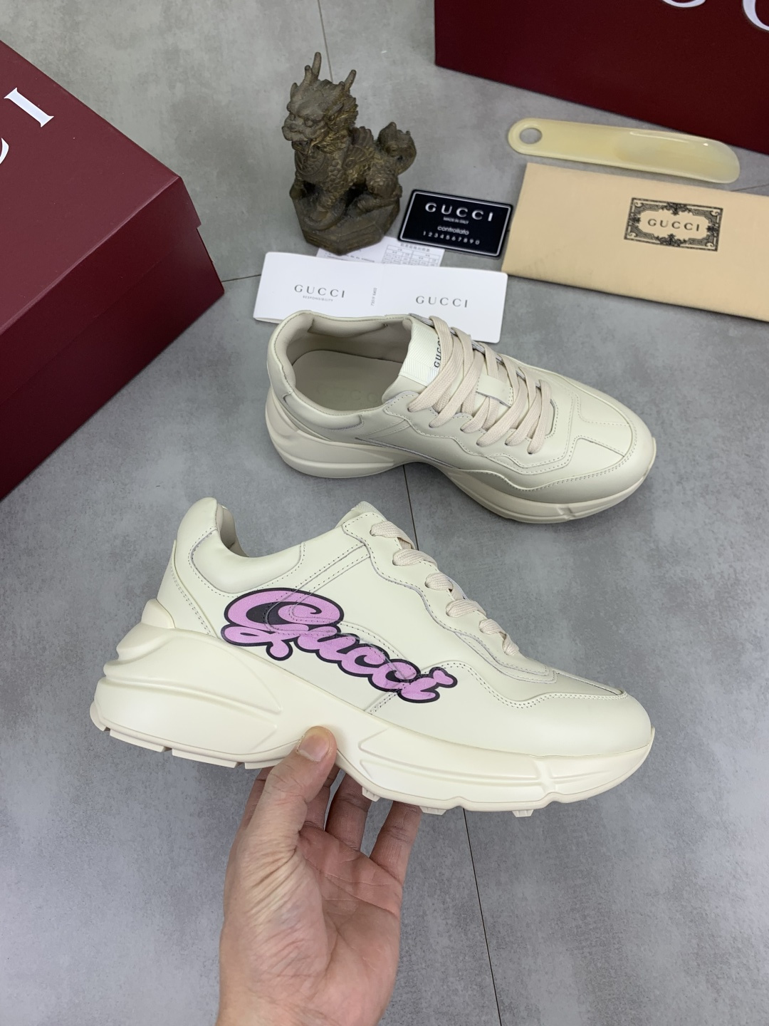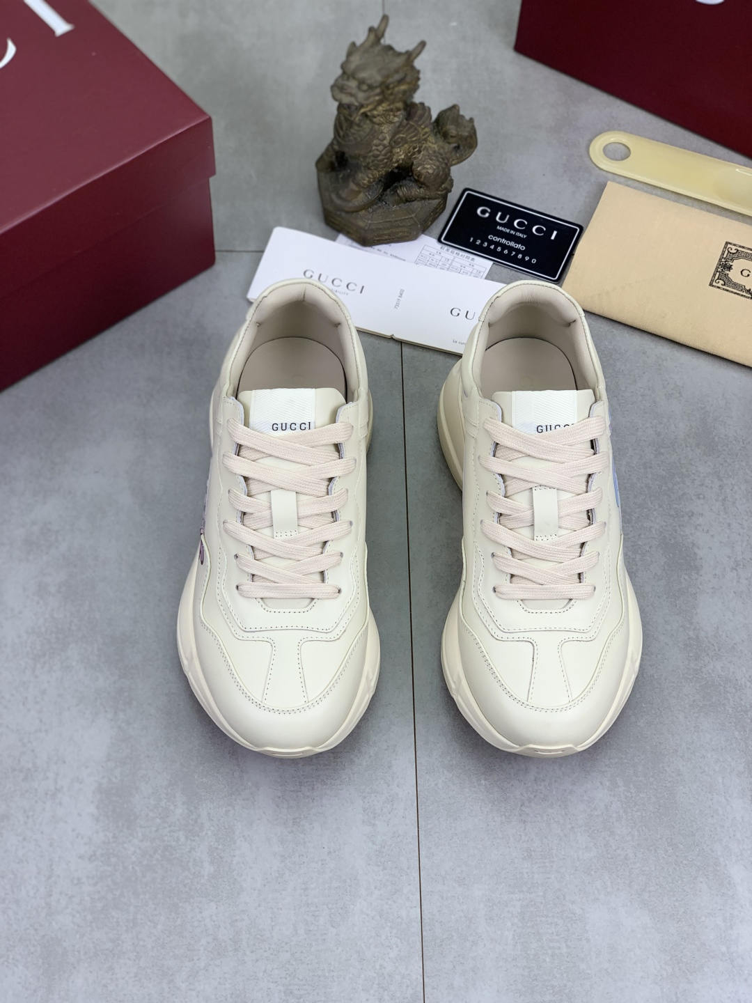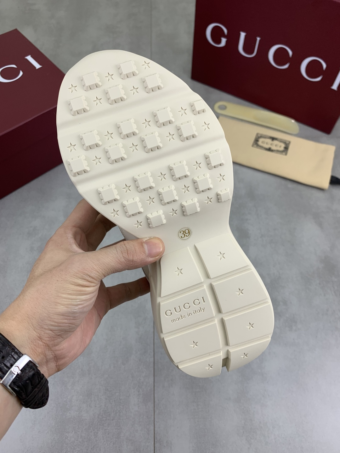 This shoes is AAAAA 1:1 quality (superb). Materials used are identical to the original ones. Gucci trademark marks are indistinguishable to the authentic. Photos take by actual shoes, what you receive will be 100% same with our photos.