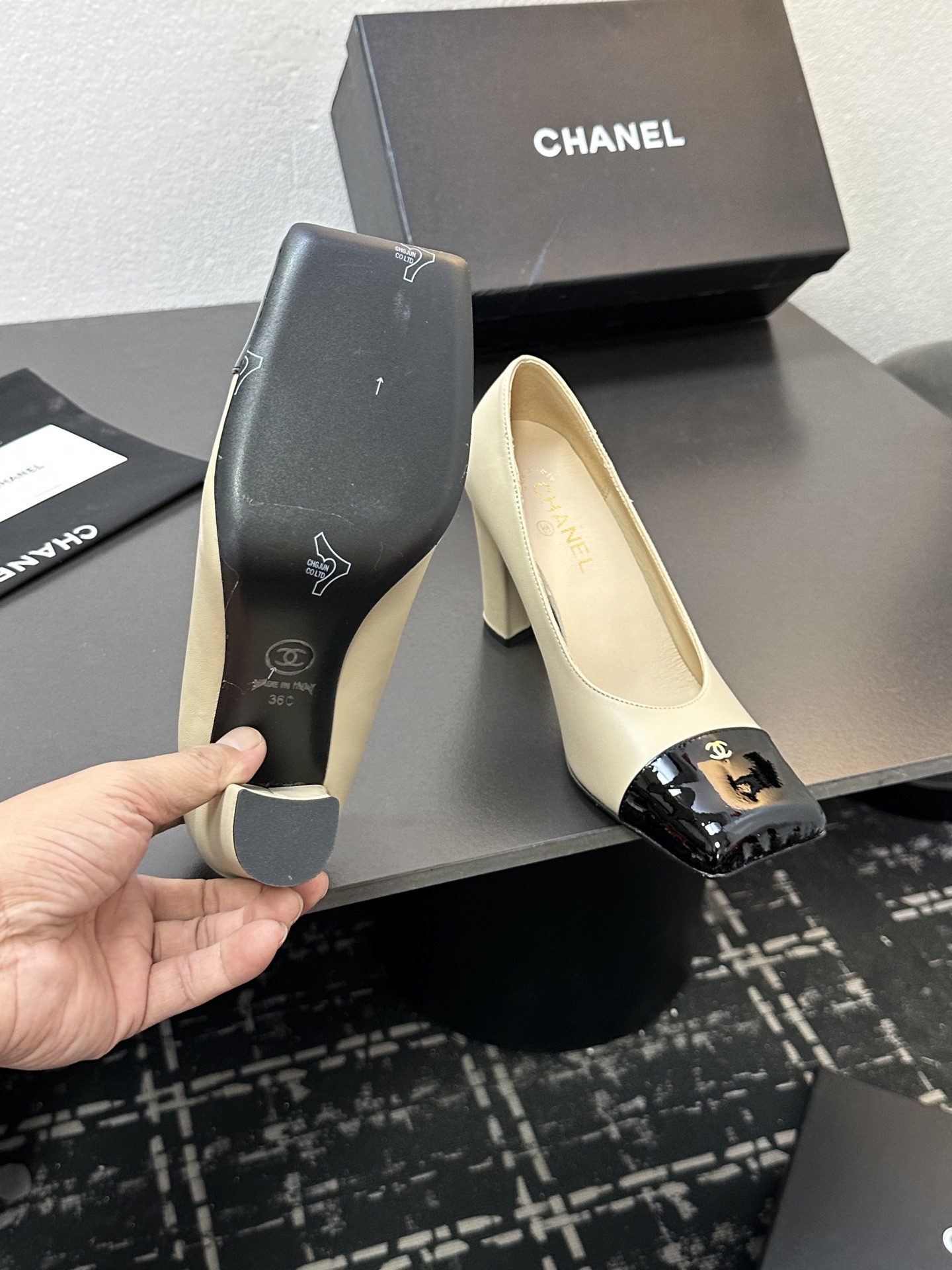 This shoes is AAAAA 1:1 quality (superb). Materials used are identical to the original ones. Chanel trademark marks are indistinguishable to the authentic. Photos take by actual shoes, what you receive will be 100% same with our photos.
