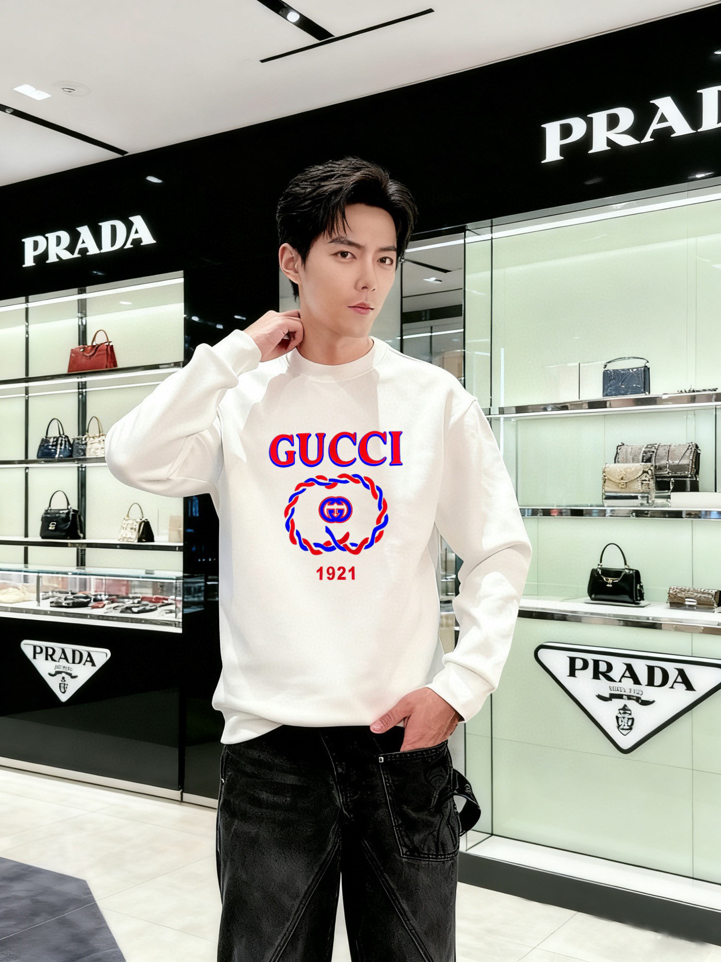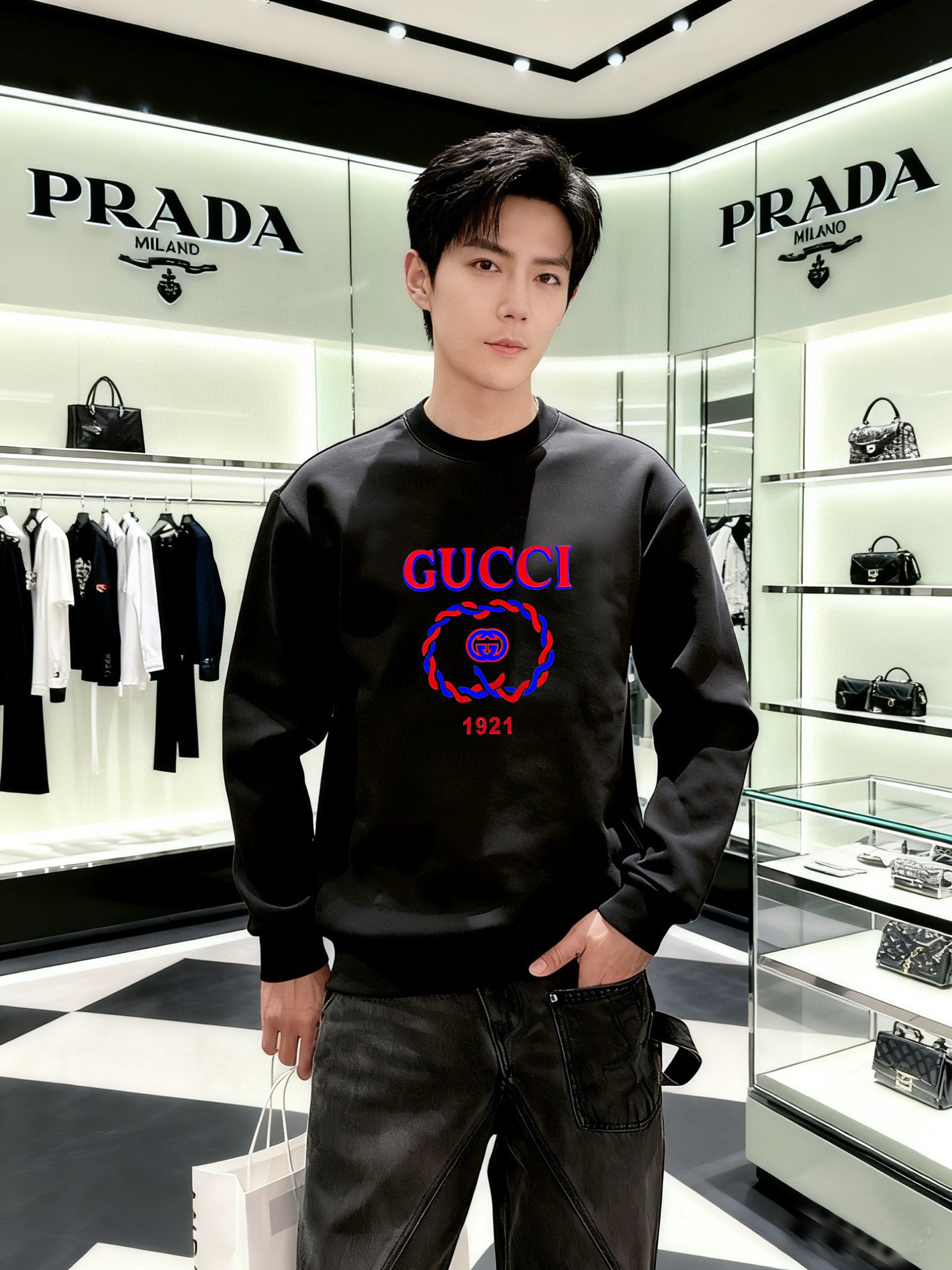 NO:3944356. The clothes is from Gucci designer.