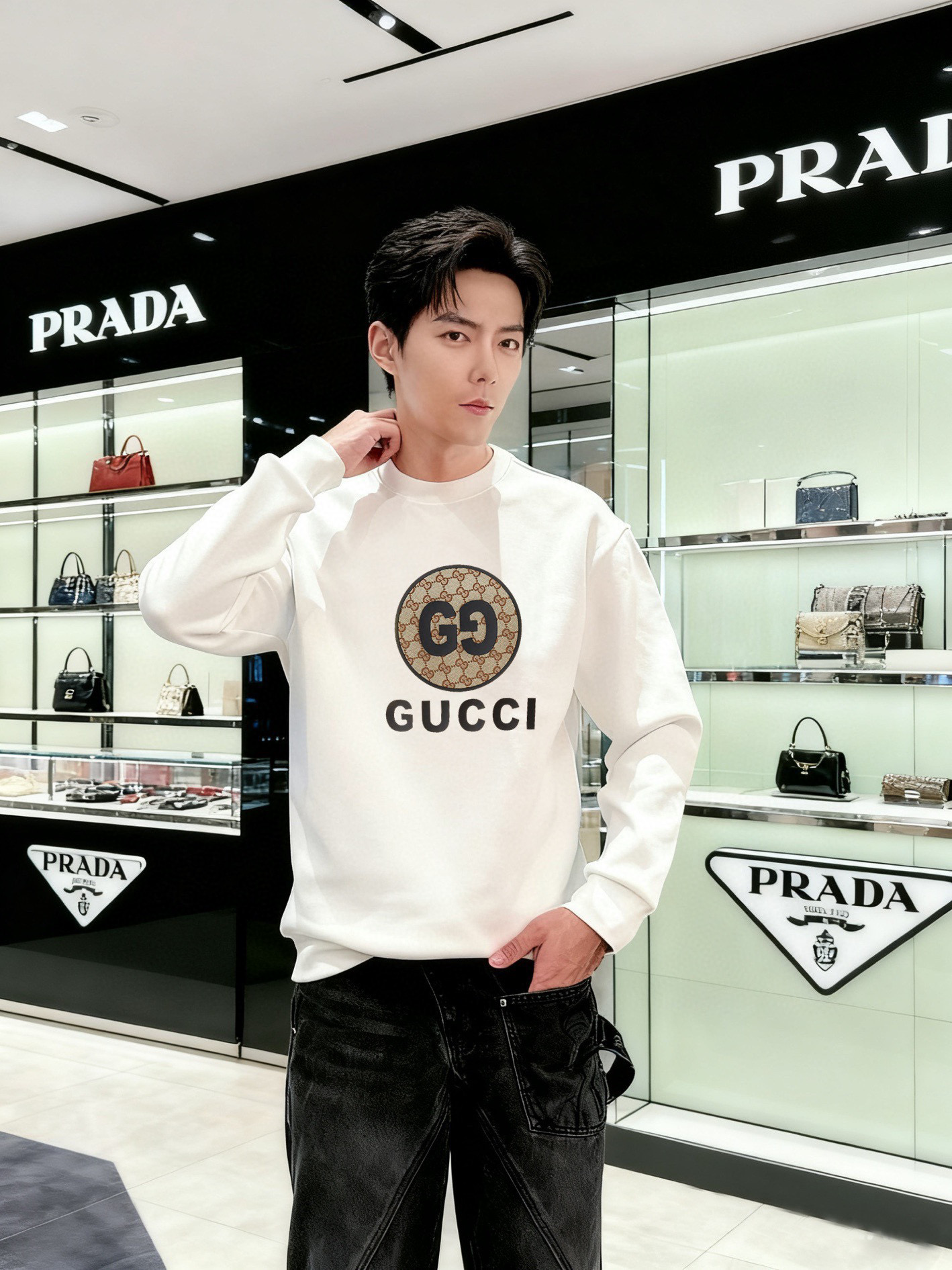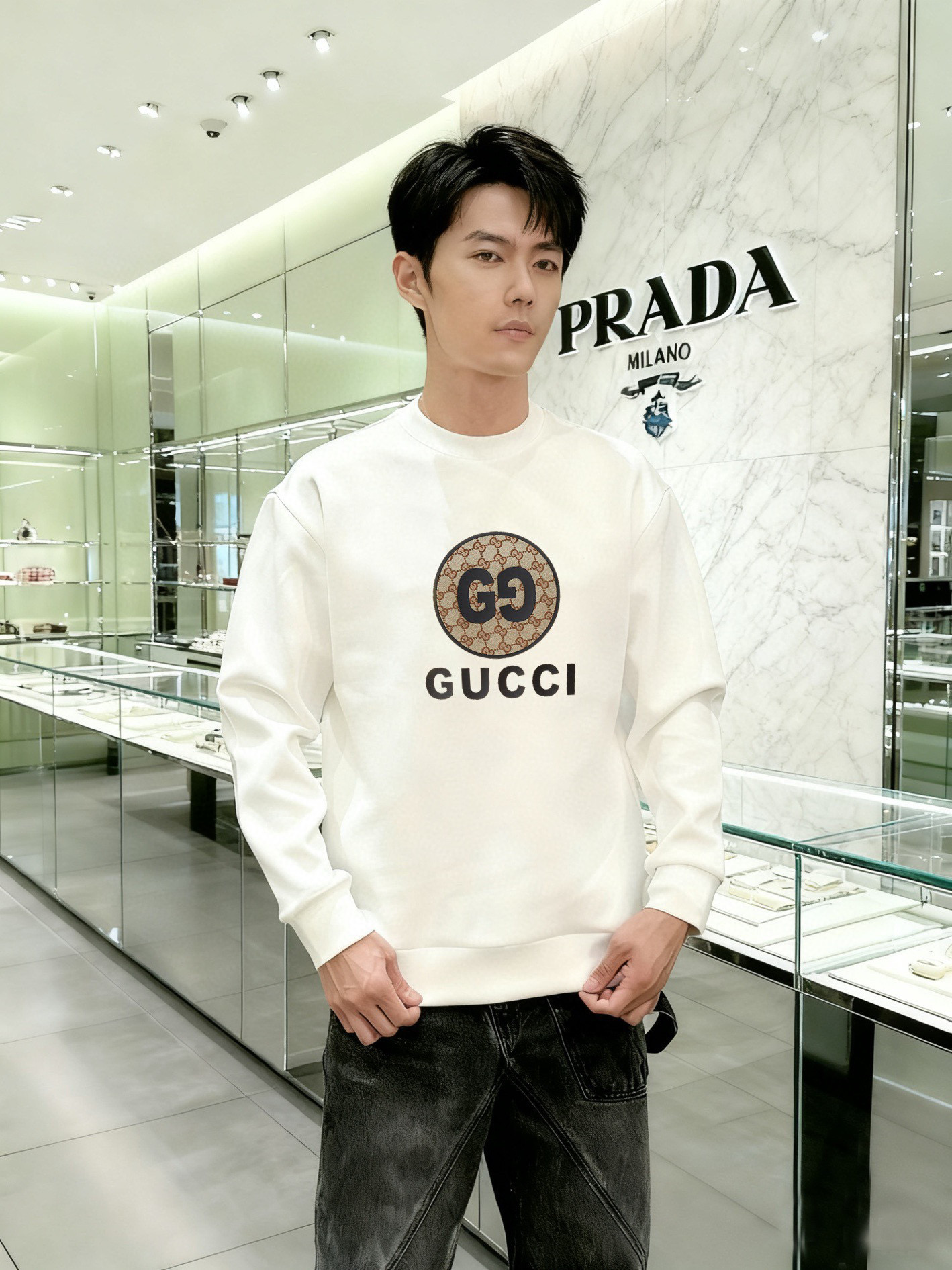 NO:3944359. The clothes is from Gucci designer.