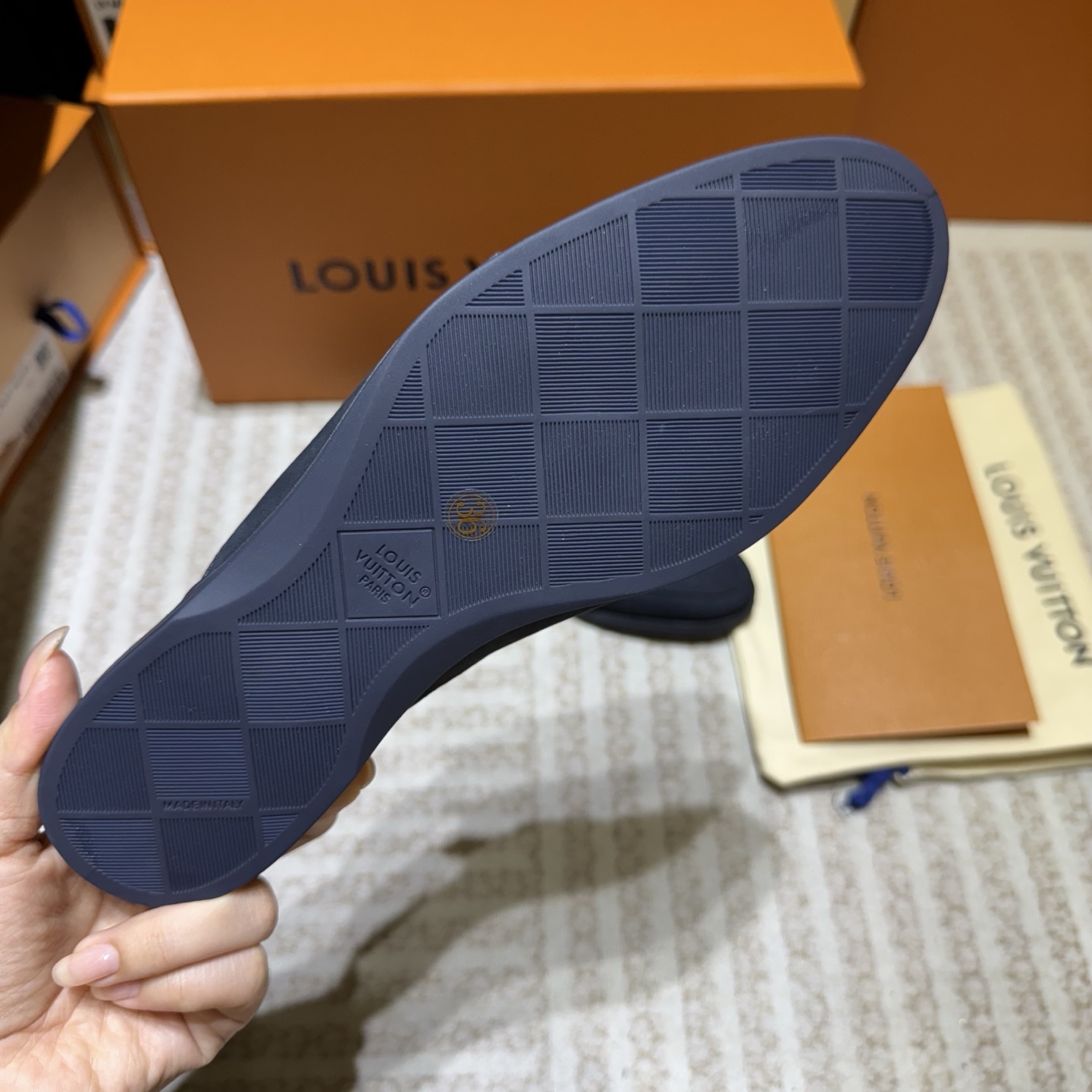 This shoes is AAAAA 1:1 quality (superb). Materials used are identical to the original ones. Louis Vuitton trademark marks are indistinguishable to the authentic. Photos take by actual shoes, what you receive will be 100% same with our photos.