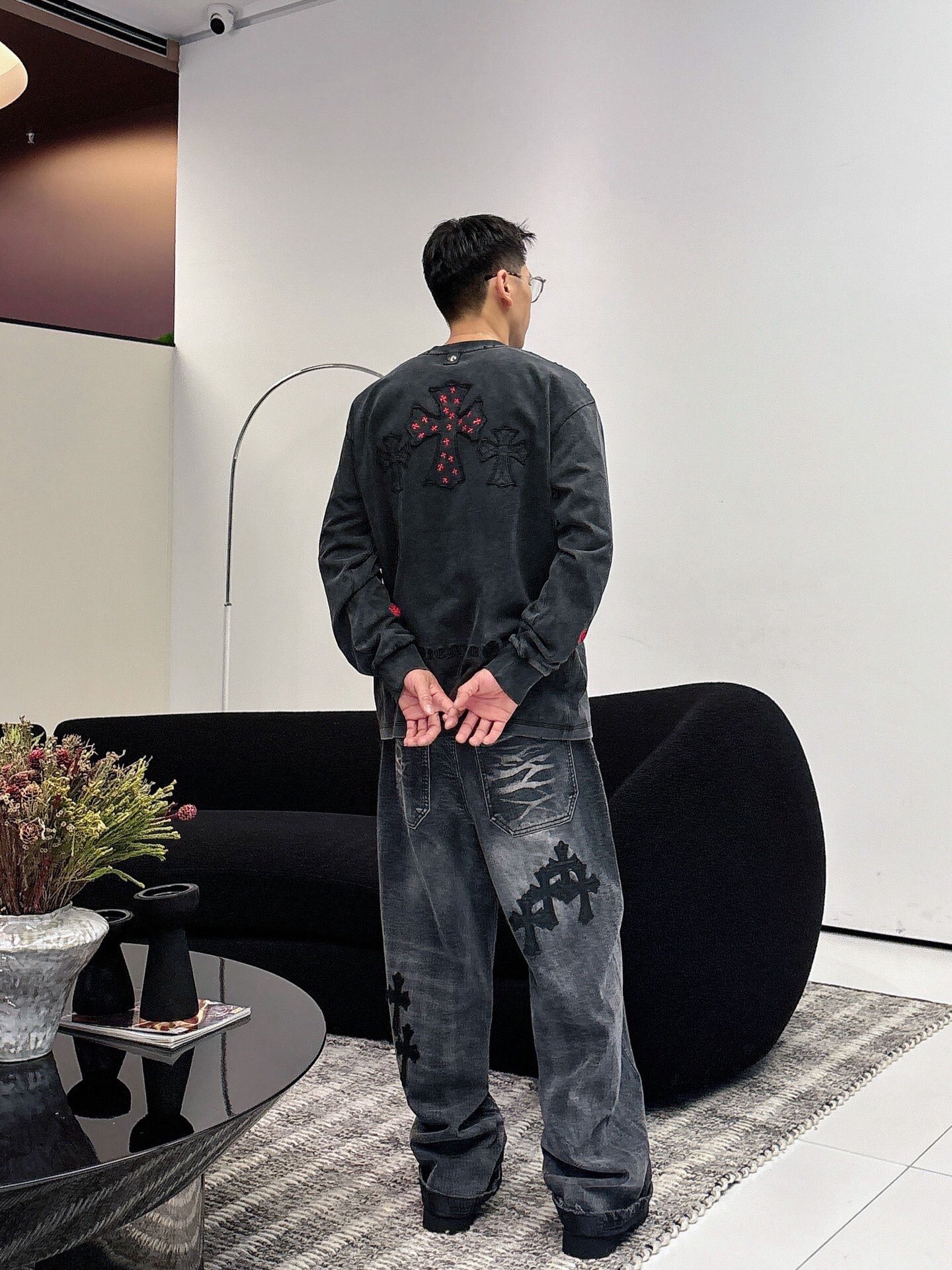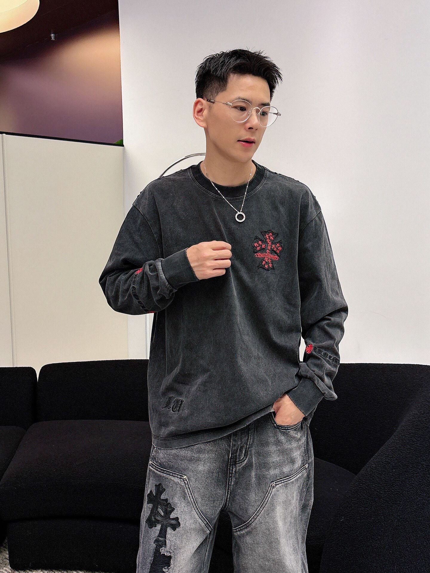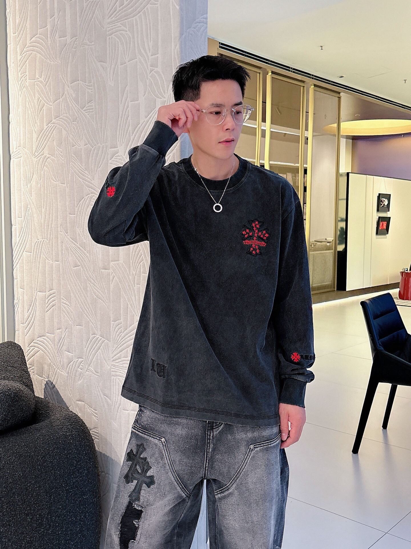 NO:3950673. The clothes is from Chrome Hearts designer.