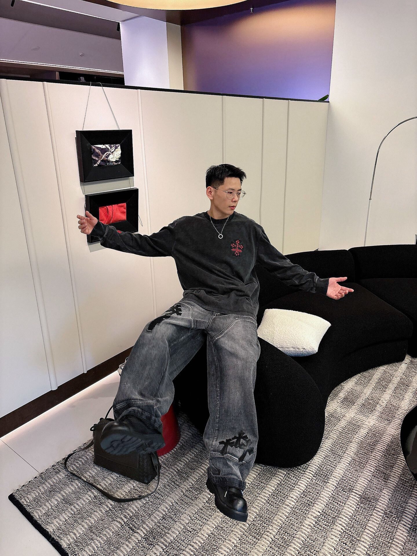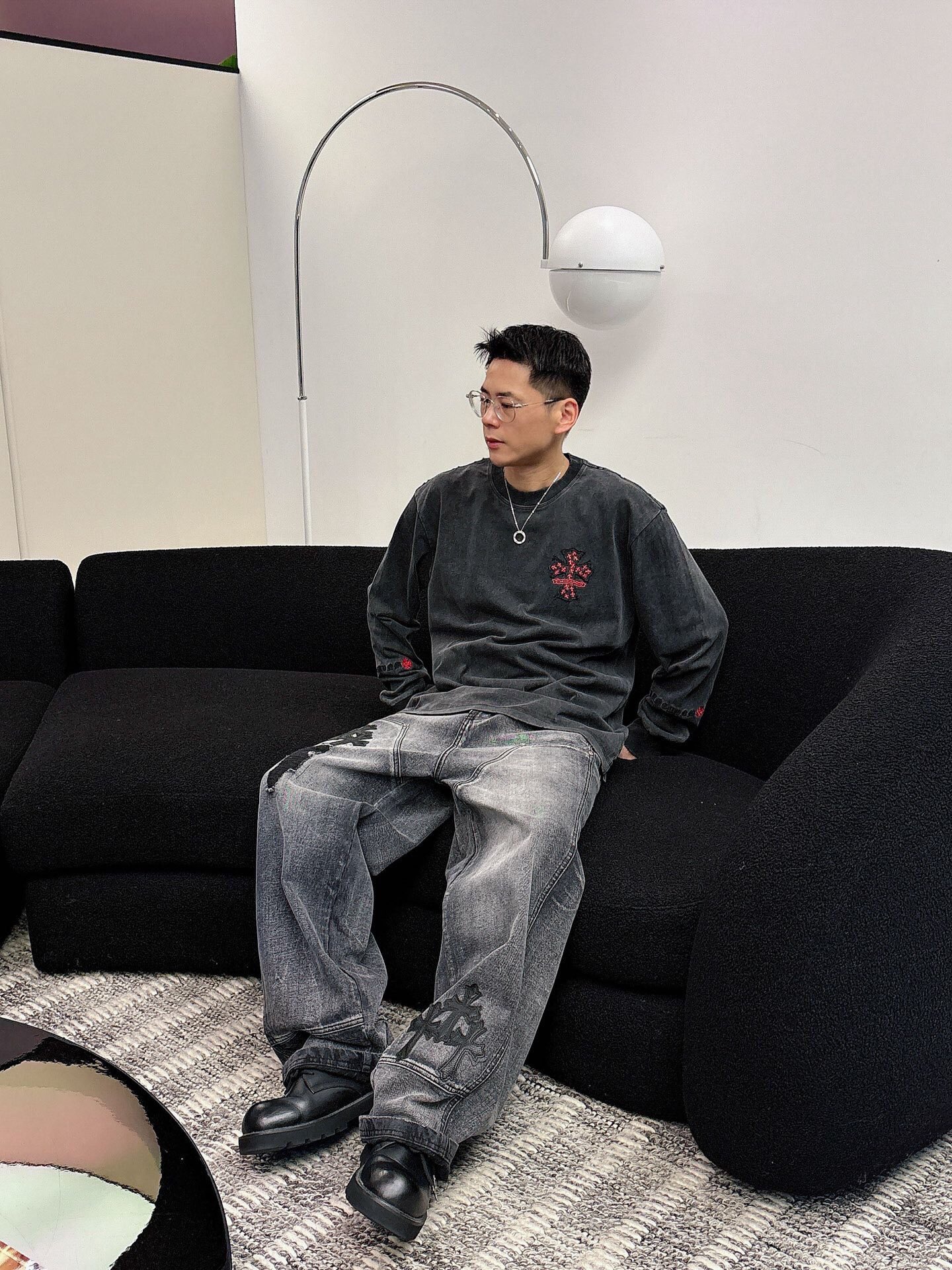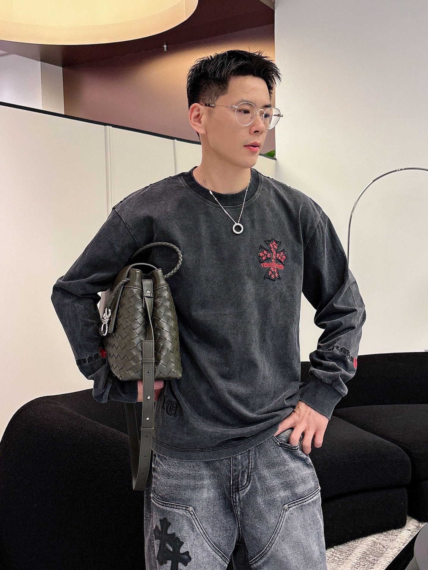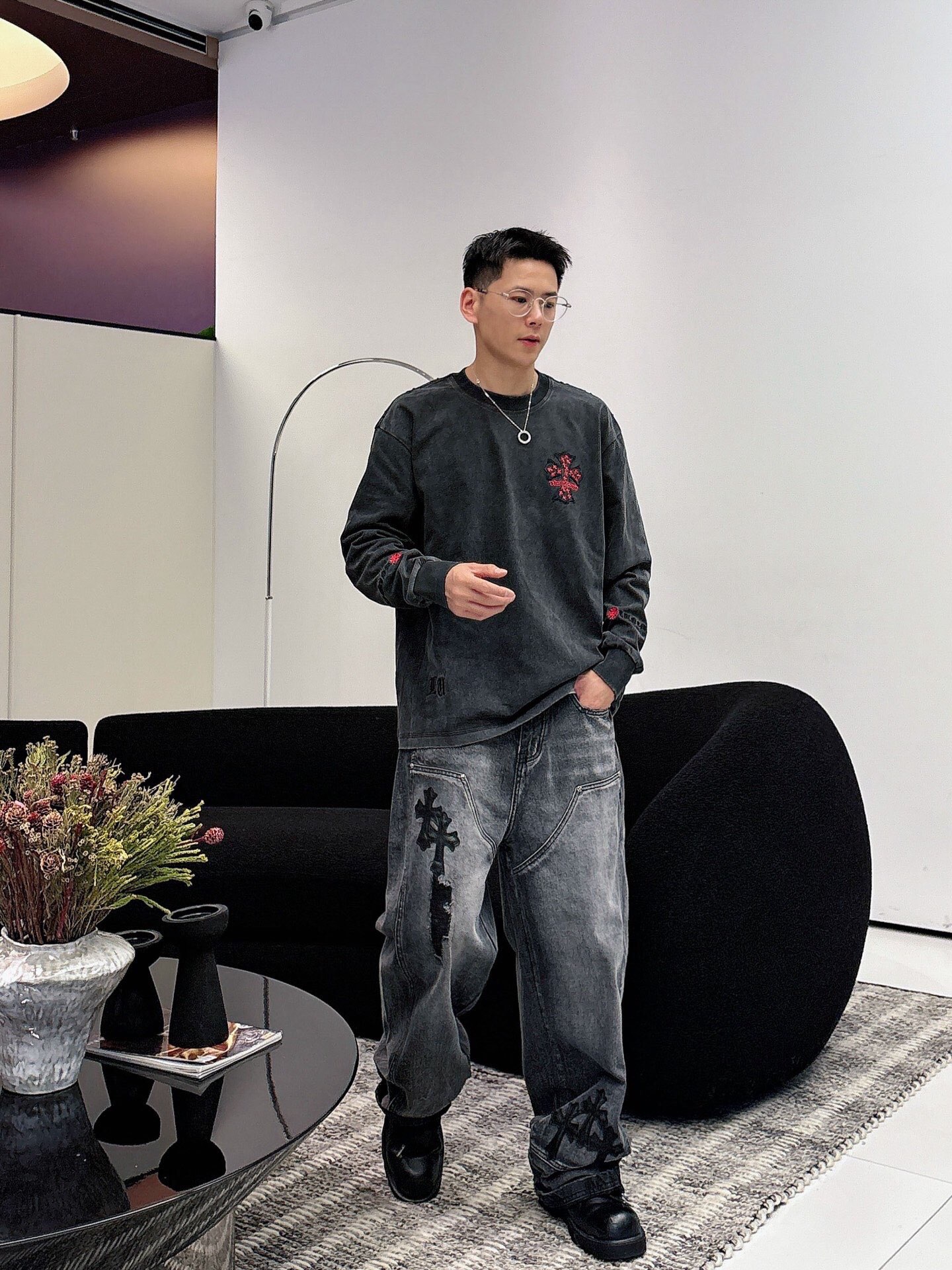 NO:3950673. The clothes is from Chrome Hearts designer.