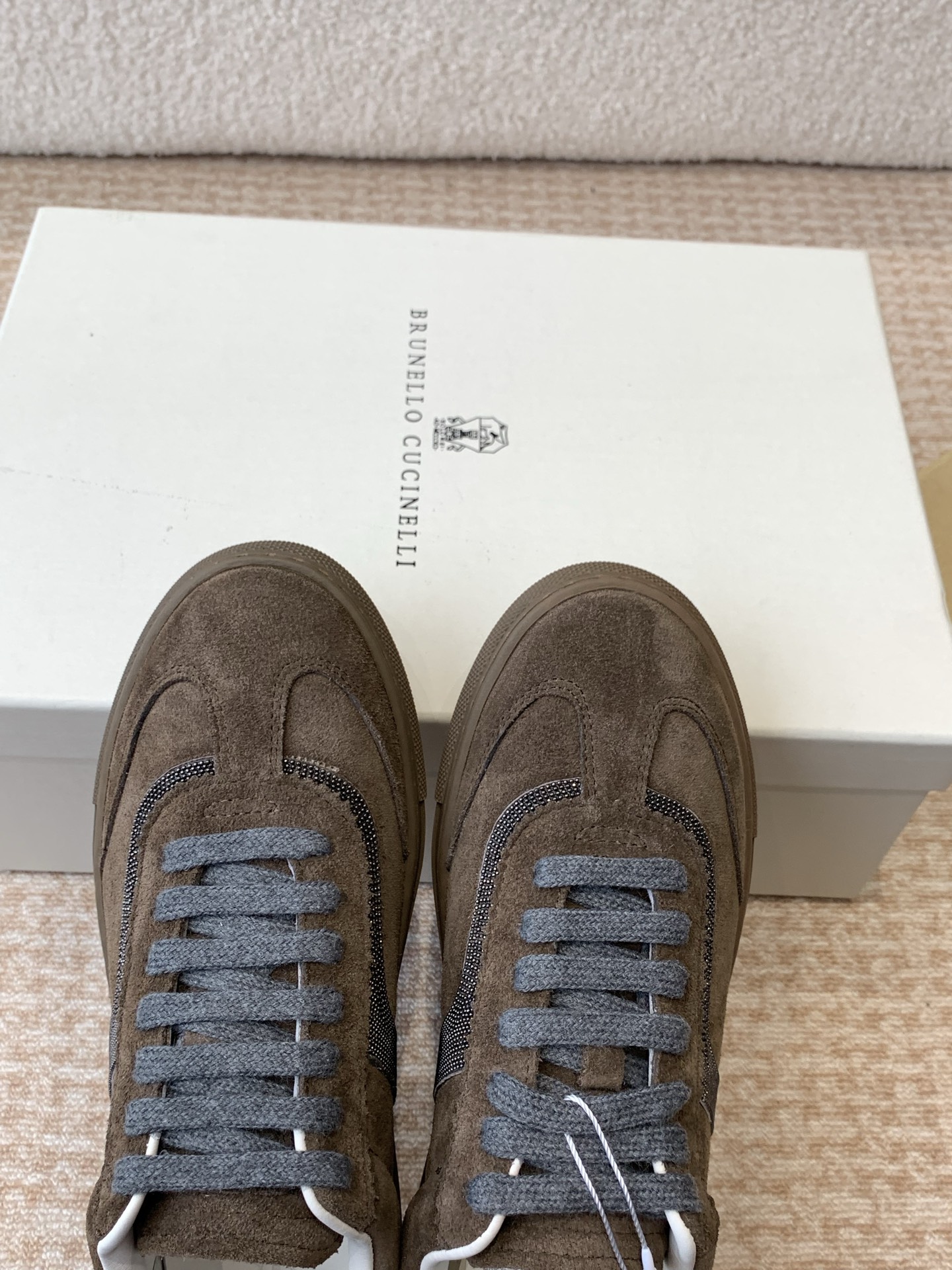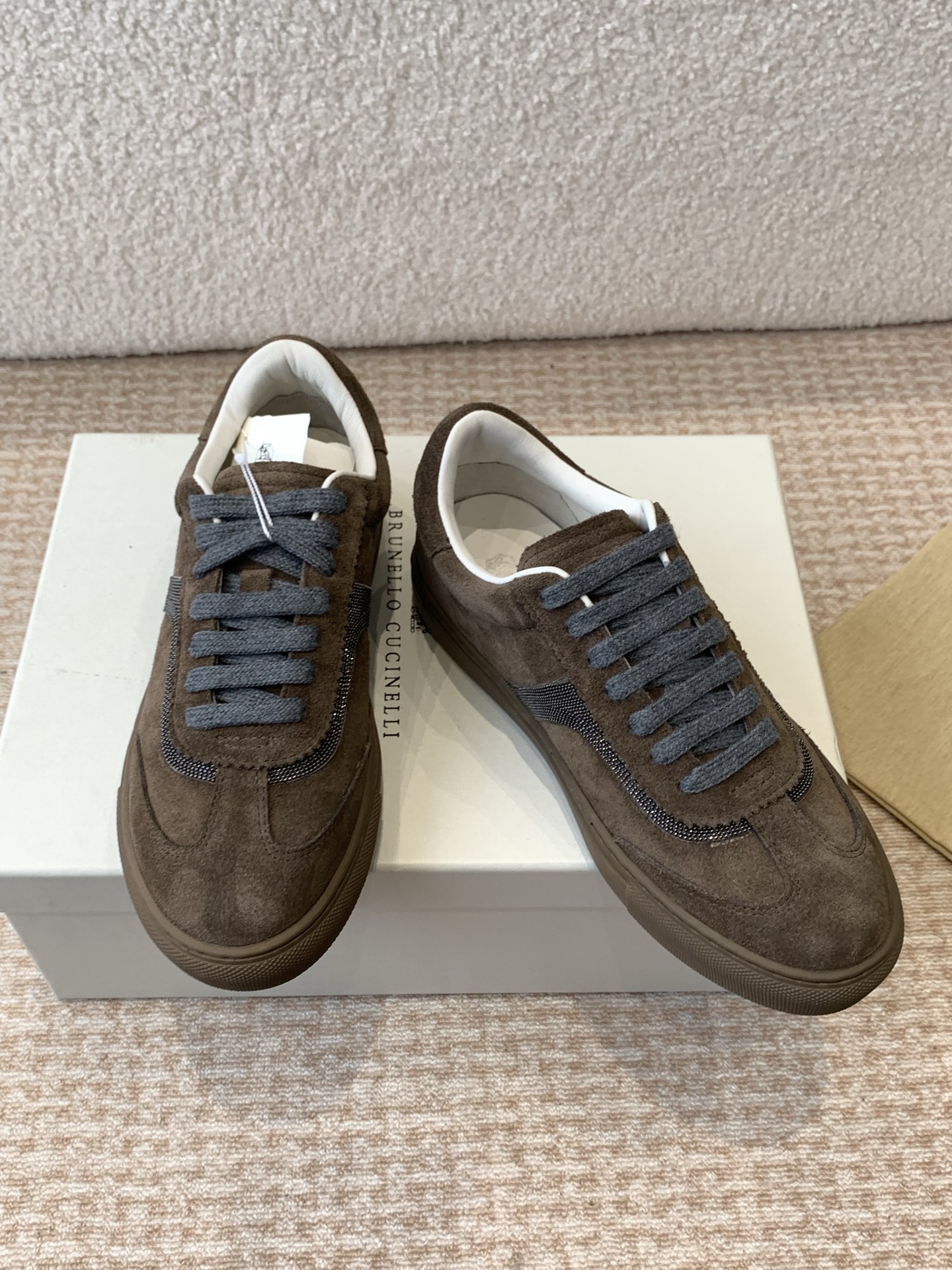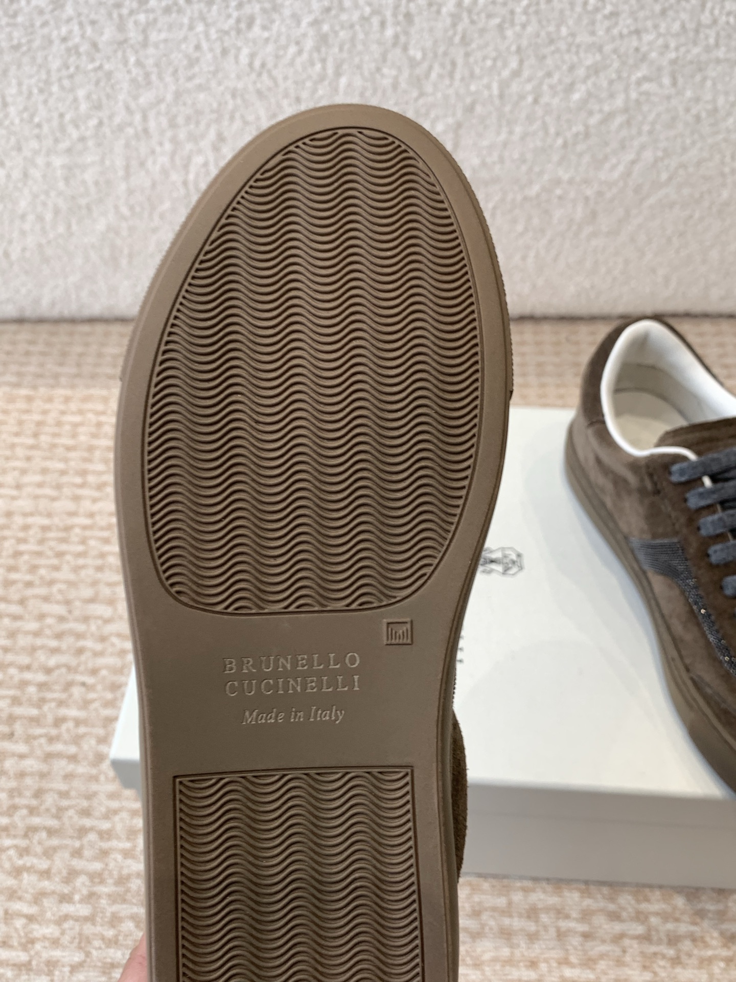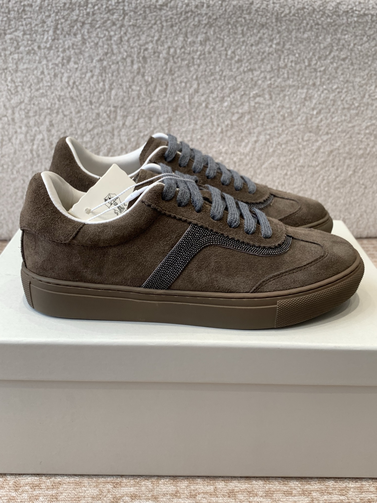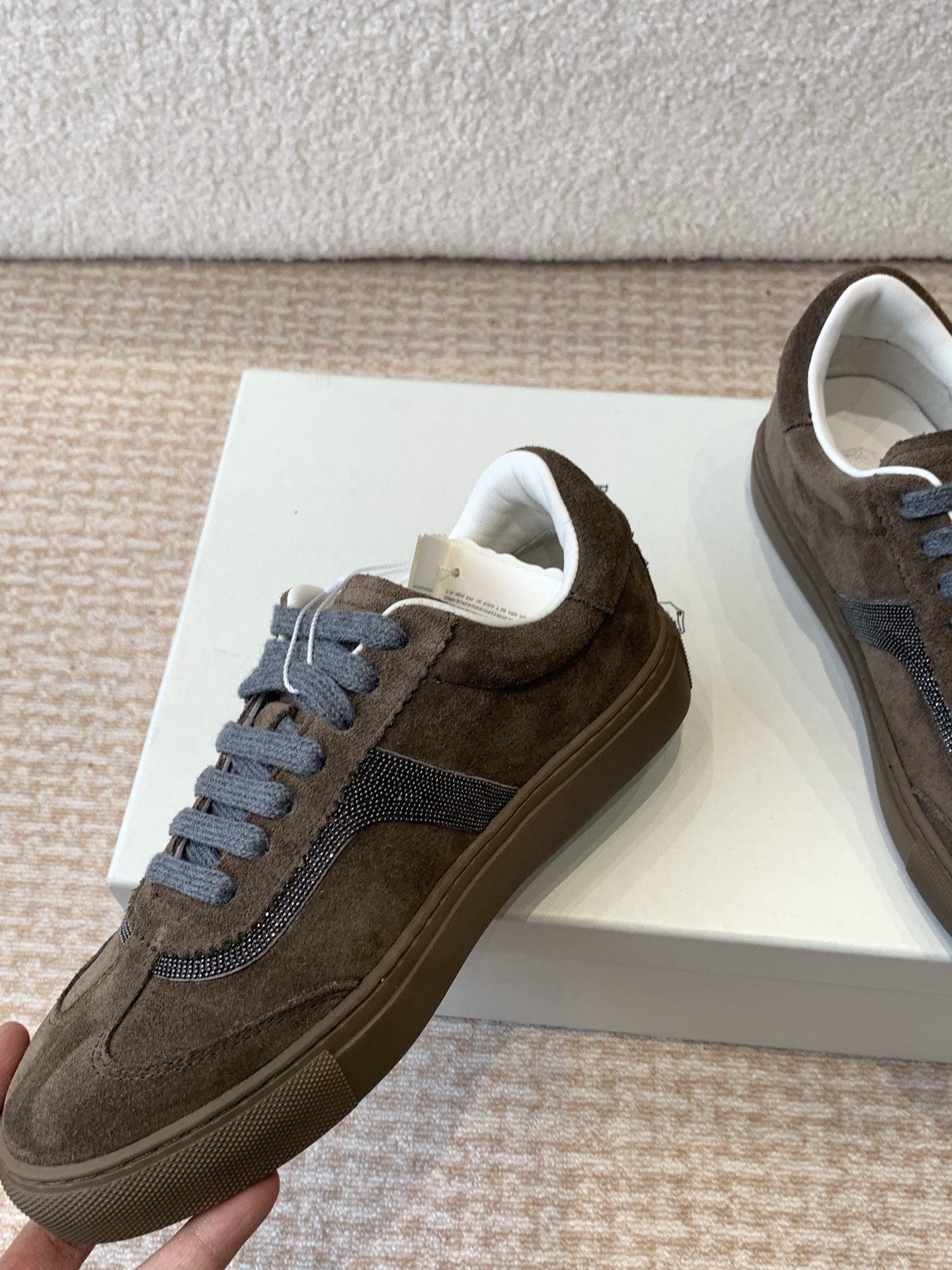 This shoes is AAAAA 1:1 quality (superb). Materials used are identical to the original ones. Brunello Cucinelli trademark marks are indistinguishable to the authentic. Photos take by actual shoes, what you receive will be 100% same with our photos.