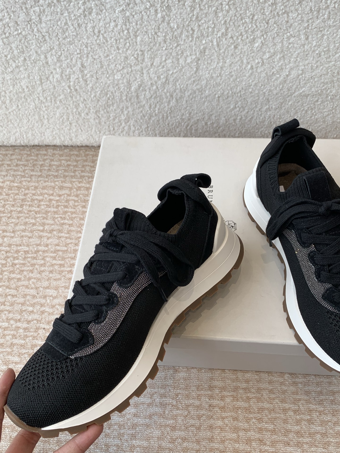 This shoes is AAAAA 1:1 quality (superb). Materials used are identical to the original ones. Brunello Cucinelli trademark marks are indistinguishable to the authentic. Photos take by actual shoes, what you receive will be 100% same with our photos.