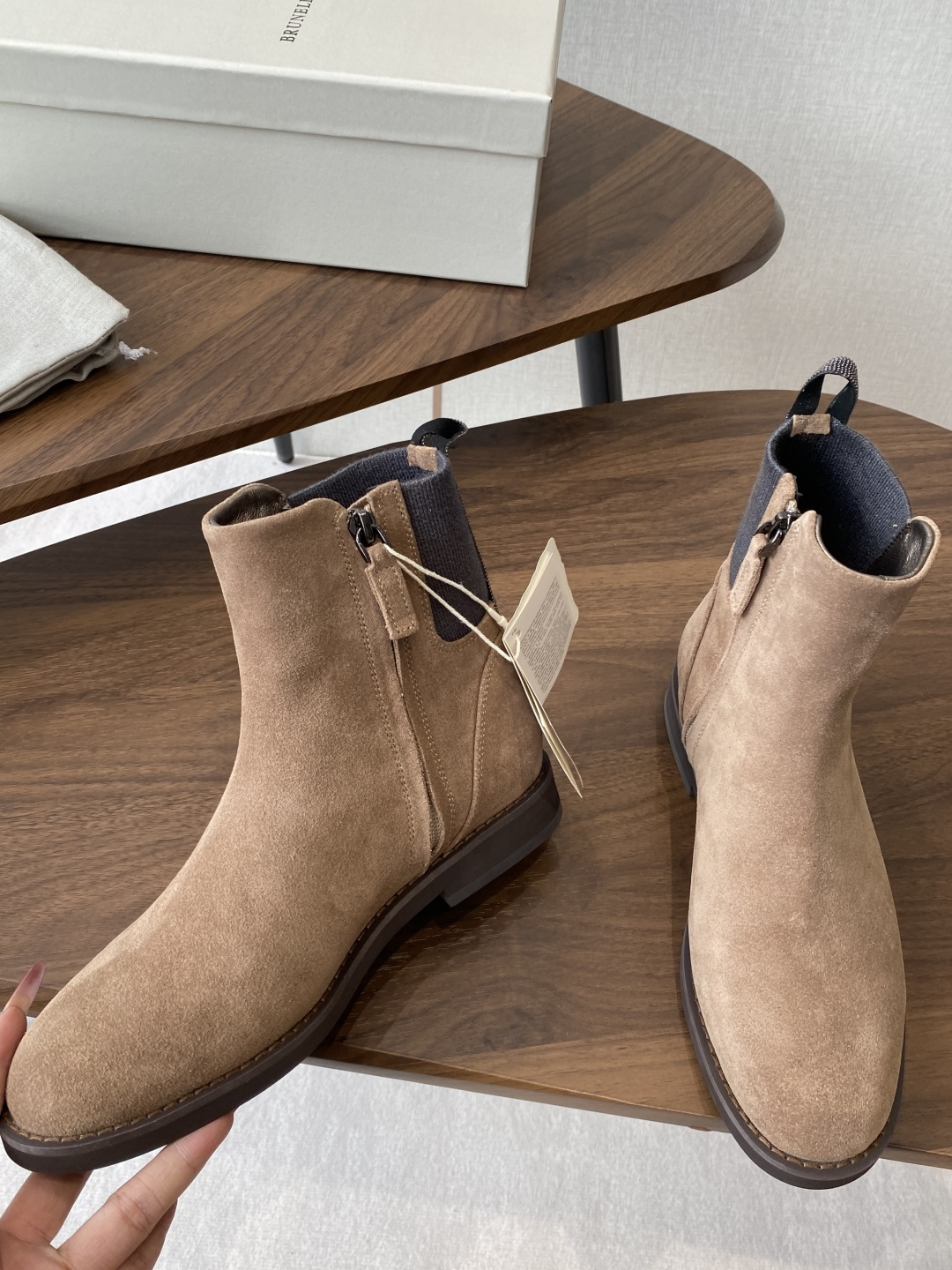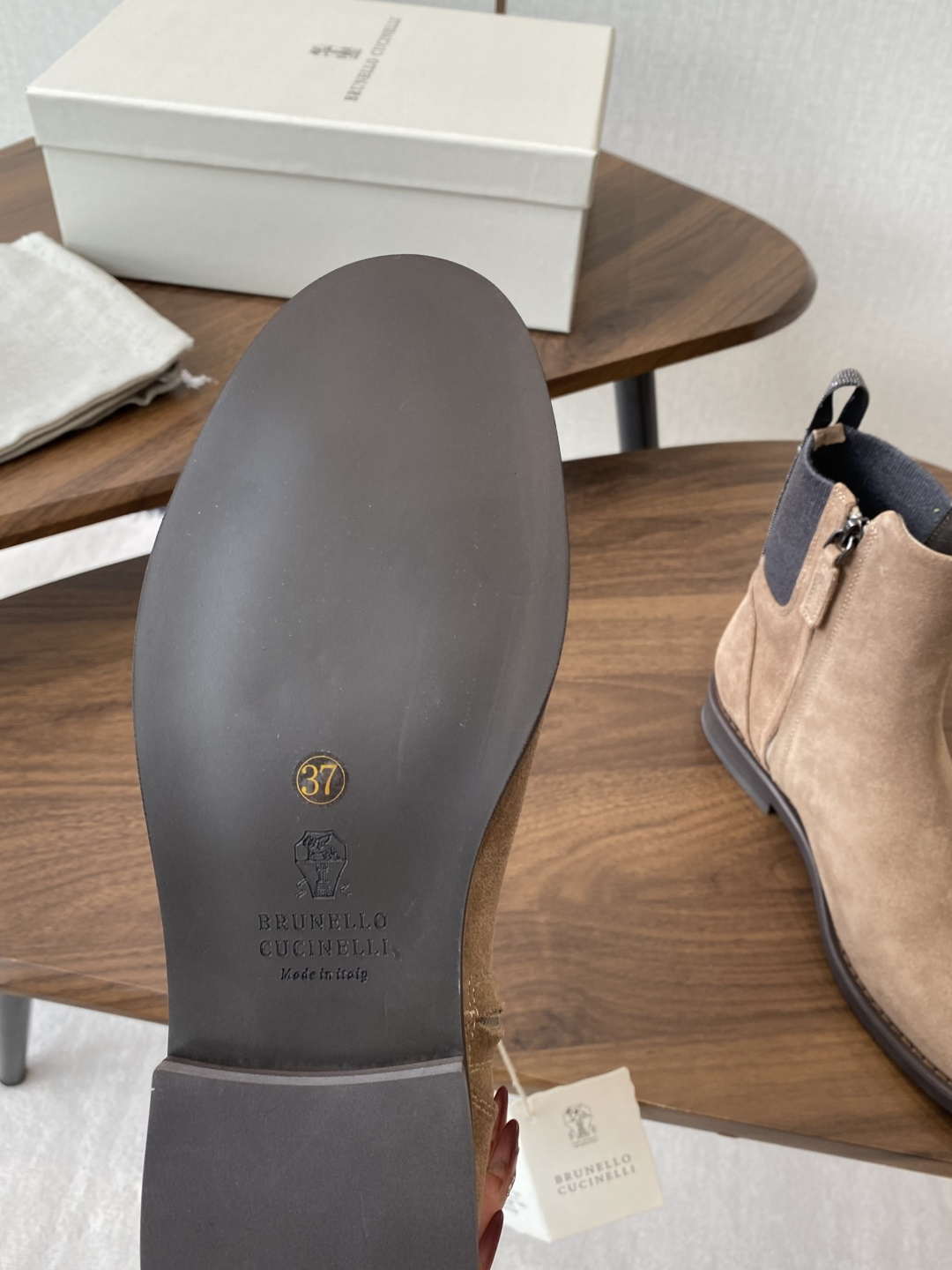 This shoes is AAAAA 1:1 quality (superb). Materials used are identical to the original ones. Brunello Cucinelli trademark marks are indistinguishable to the authentic. Photos take by actual shoes, what you receive will be 100% same with our photos.
