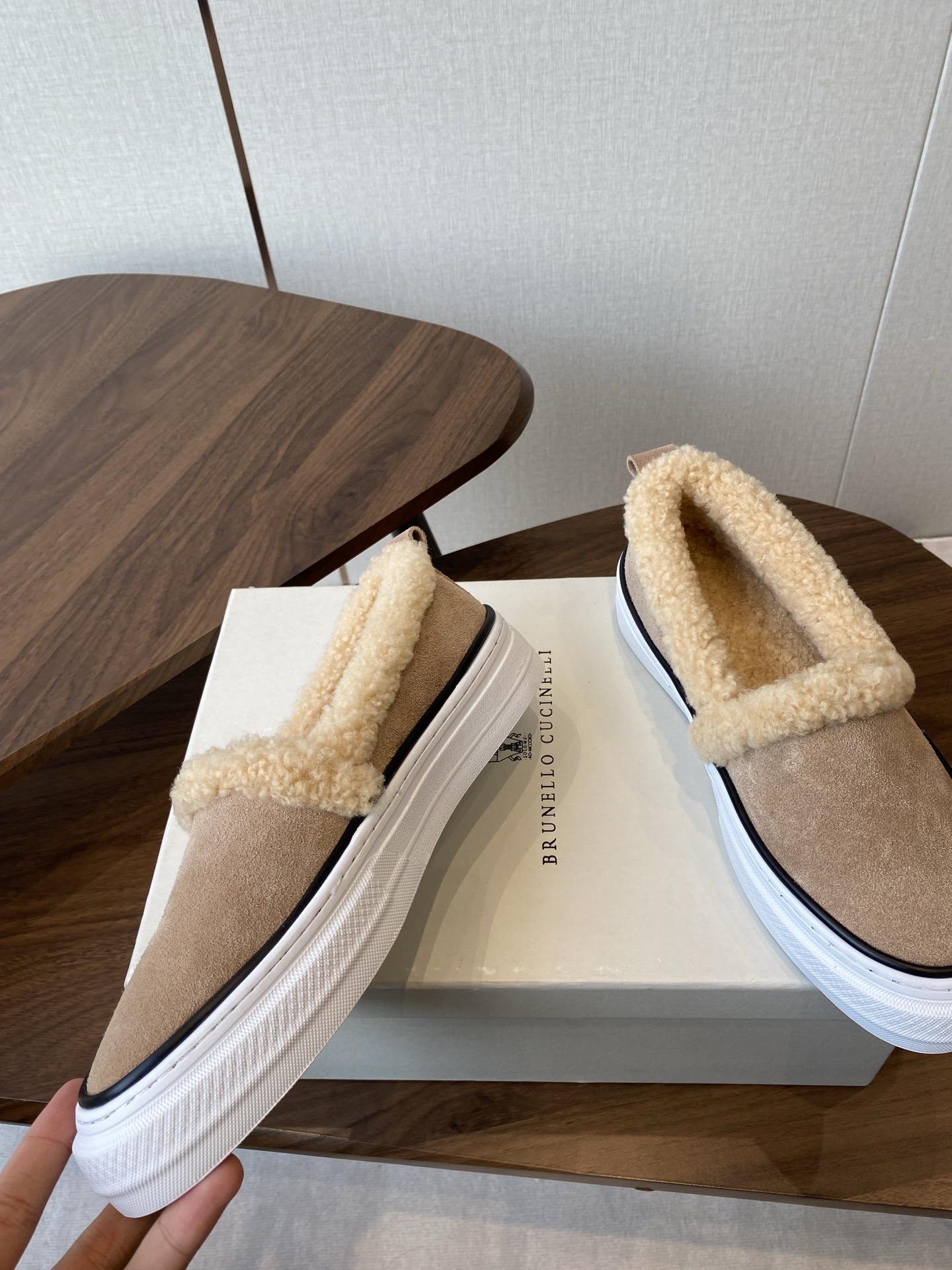 This shoes is AAAAA 1:1 quality (superb). Materials used are identical to the original ones. Brunello Cucinelli trademark marks are indistinguishable to the authentic. Photos take by actual shoes, what you receive will be 100% same with our photos.