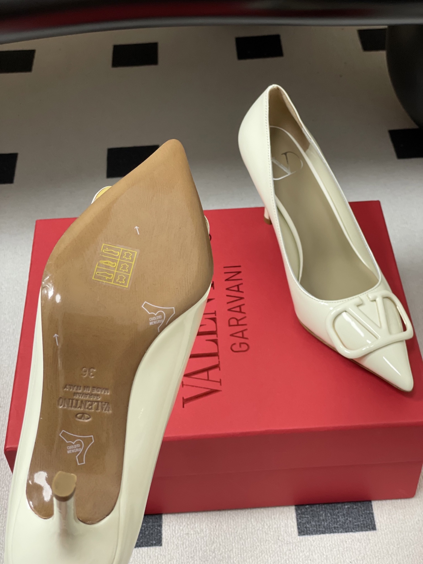 This shoes is AAAAA 1:1 quality (superb). Materials used are identical to the original ones. Valentino trademark marks are indistinguishable to the authentic. Photos take by actual shoes, what you receive will be 100% same with our photos.