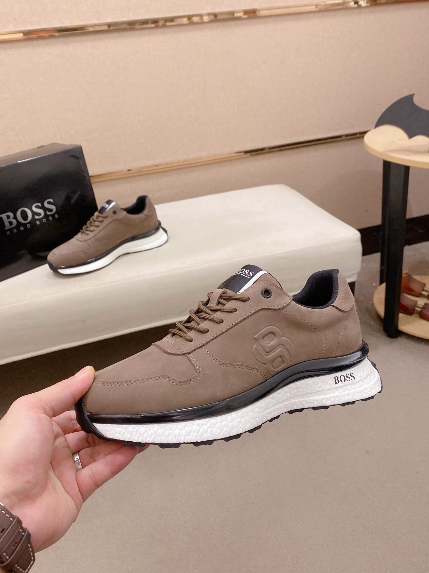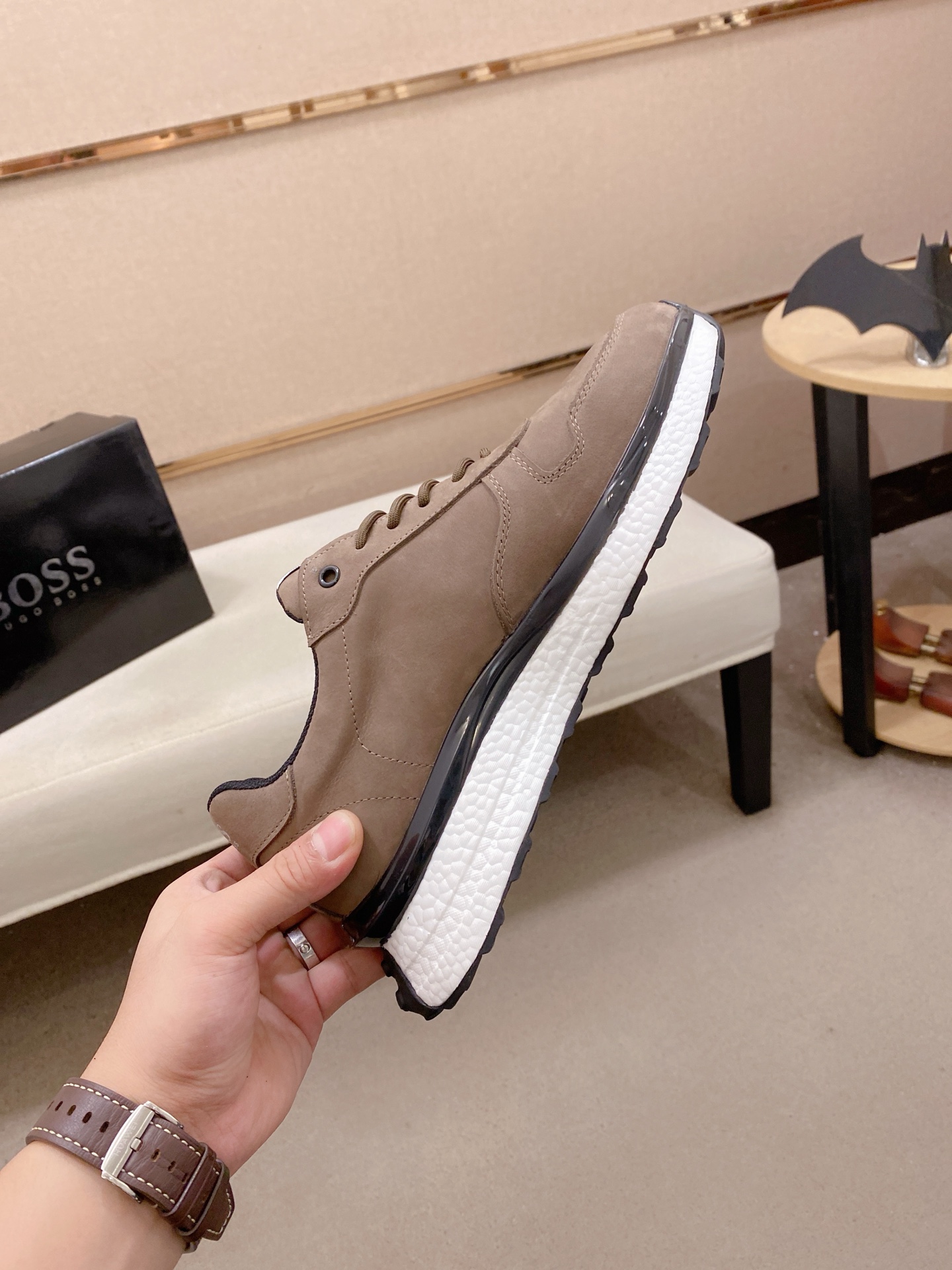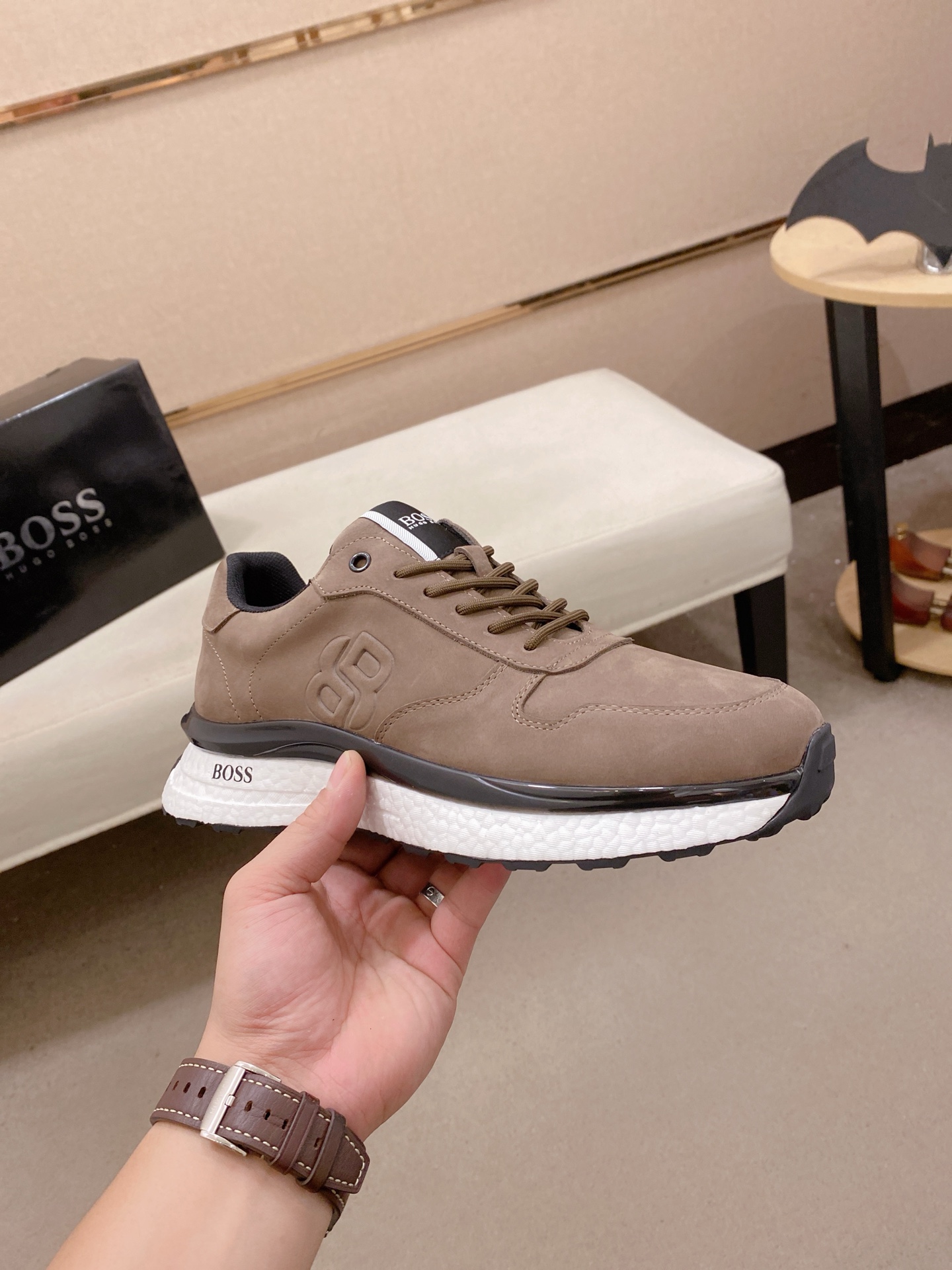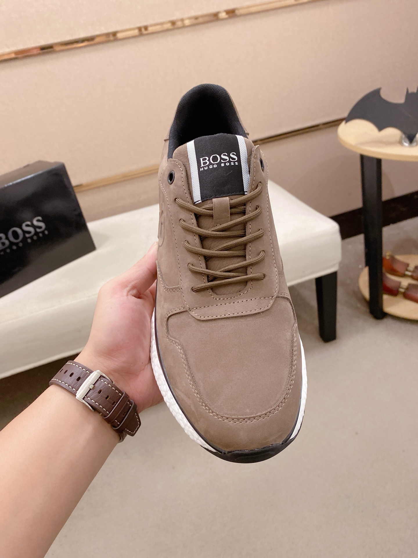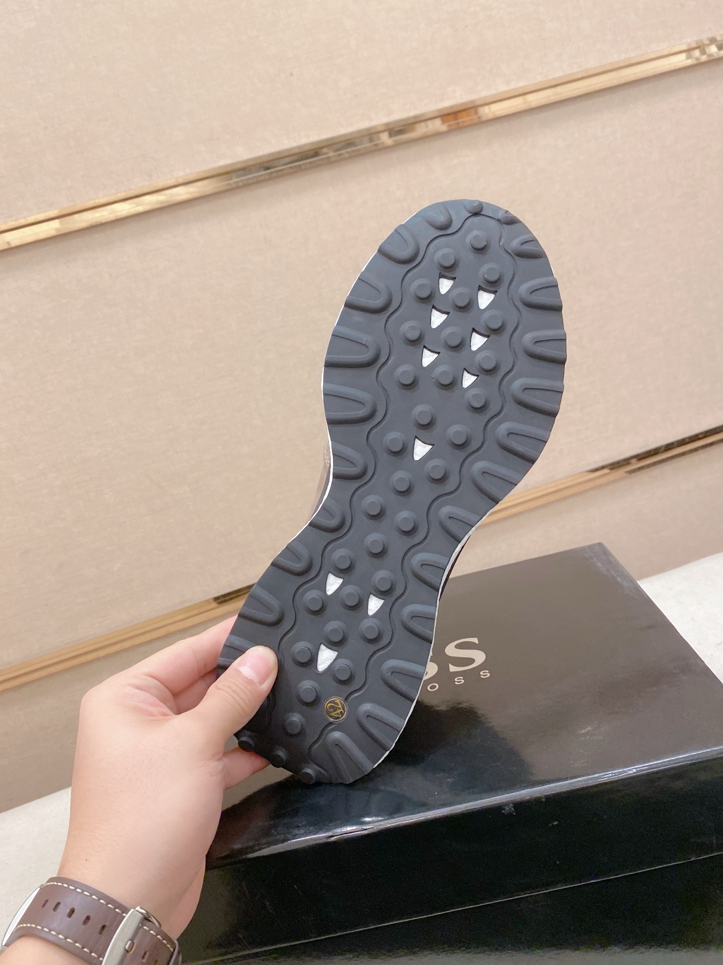 This shoes is AAAAA 1:1 quality (superb). Materials used are identical to the original ones. BOSS trademark marks are indistinguishable to the authentic. Photos take by actual shoes, what you receive will be 100% same with our photos.