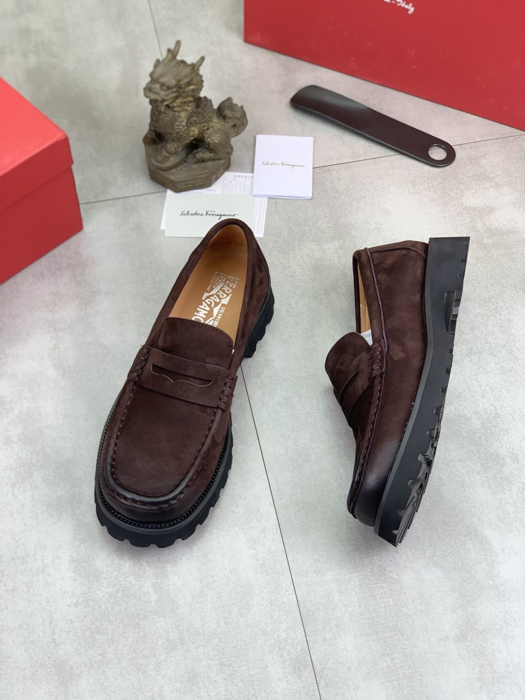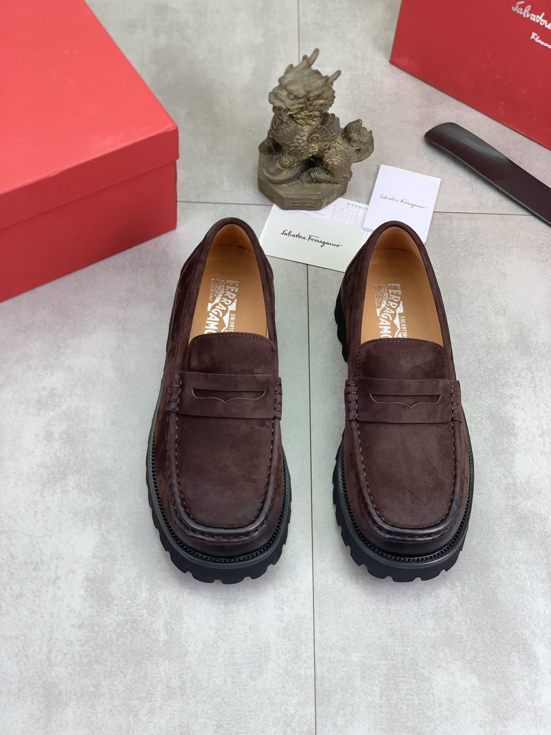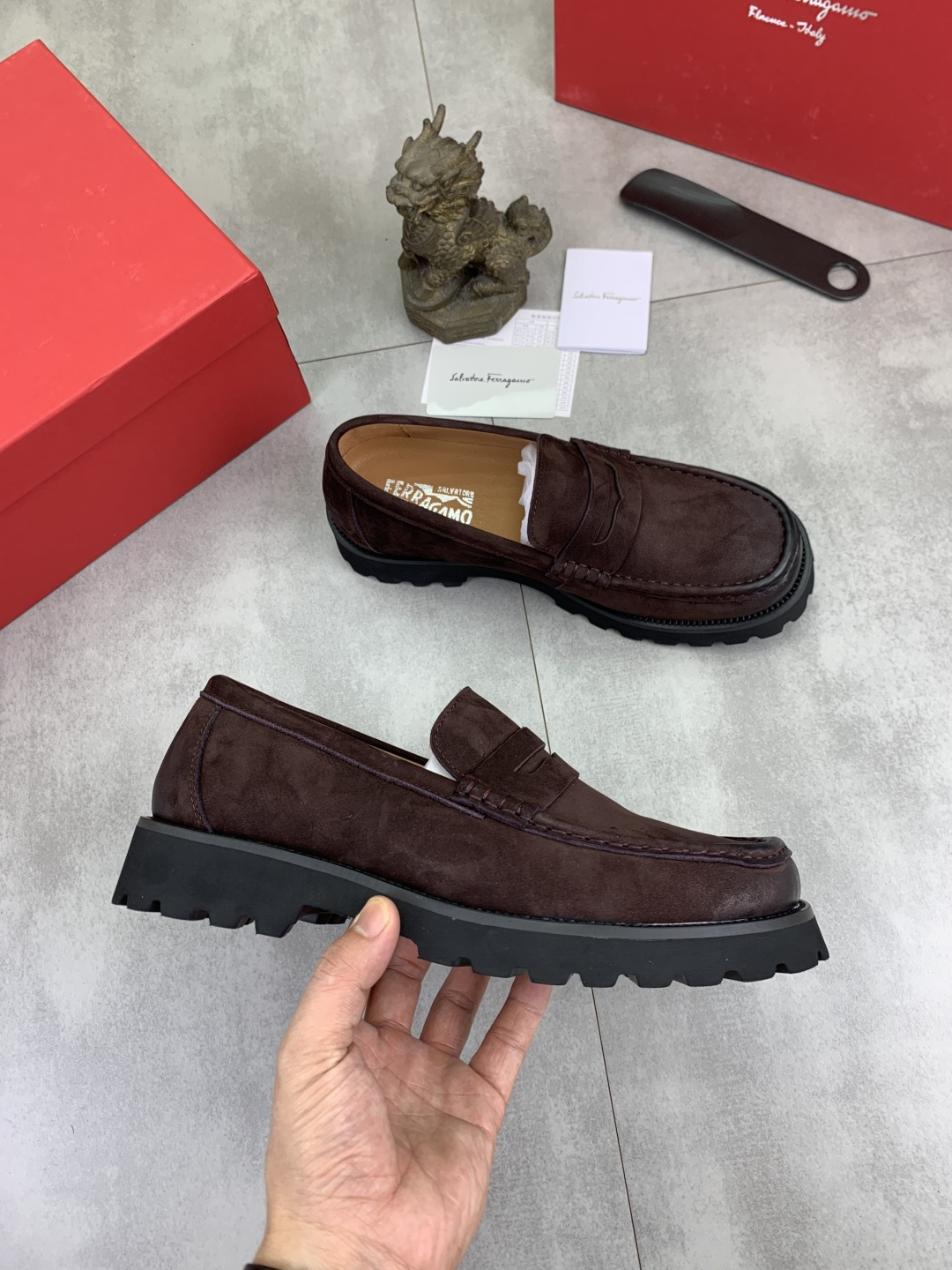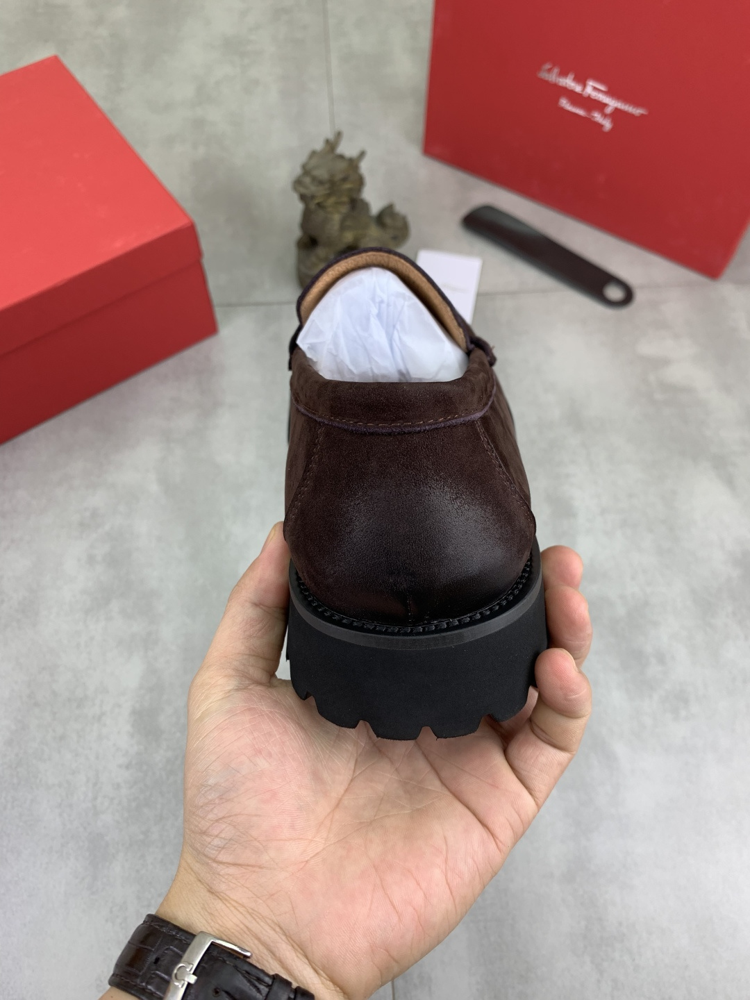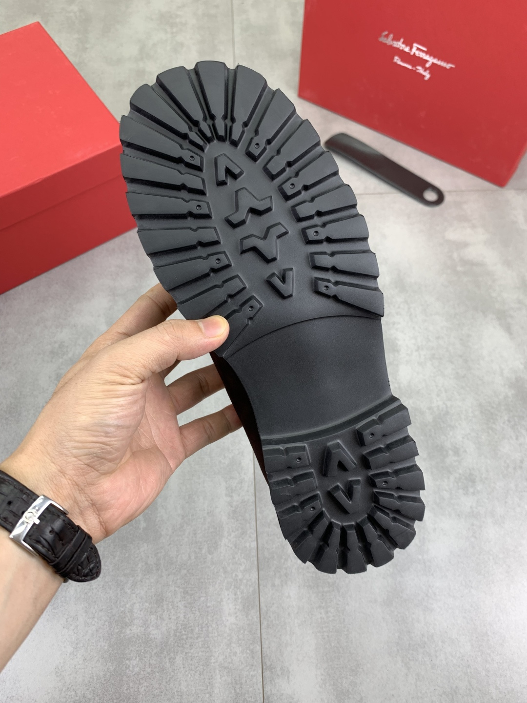 This shoes is AAAAA 1:1 quality (superb). Materials used are identical to the original ones. Salvatore Ferragamo trademark marks are indistinguishable to the authentic. Photos take by actual shoes, what you receive will be 100% same with our photos.