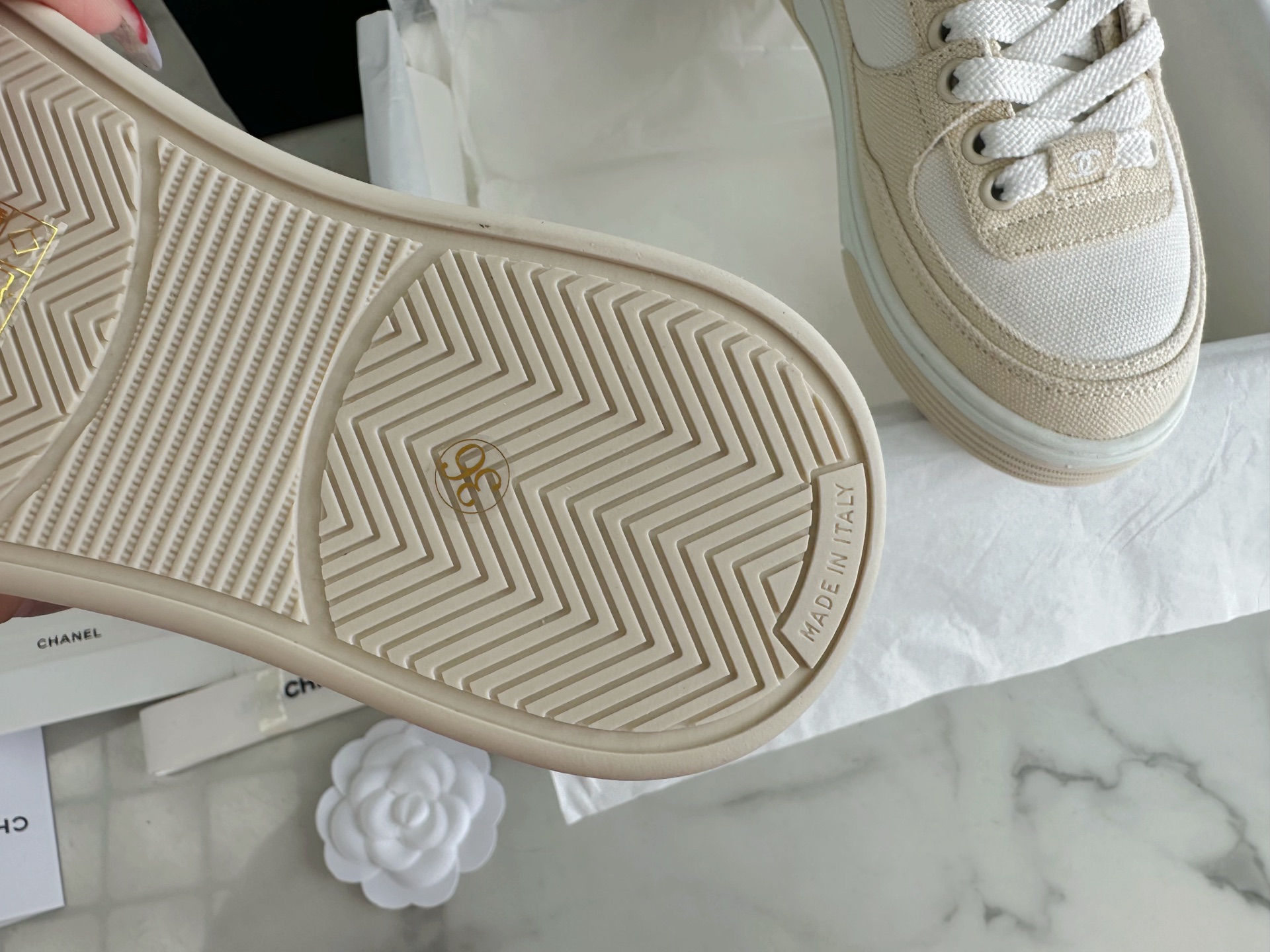 This shoes is AAAAA 1:1 quality (superb). Materials used are identical to the original ones. Chanel trademark marks are indistinguishable to the authentic. Photos take by actual shoes, what you receive will be 100% same with our photos.