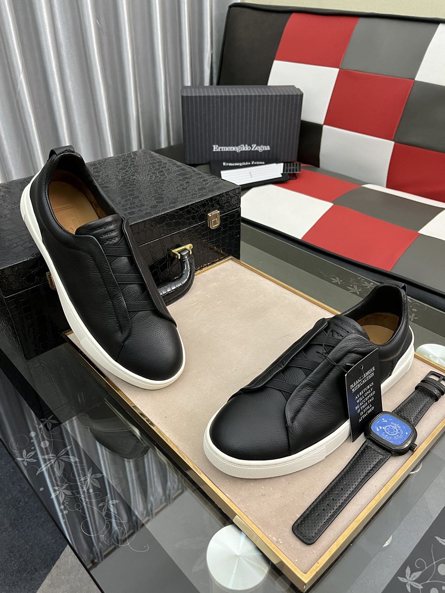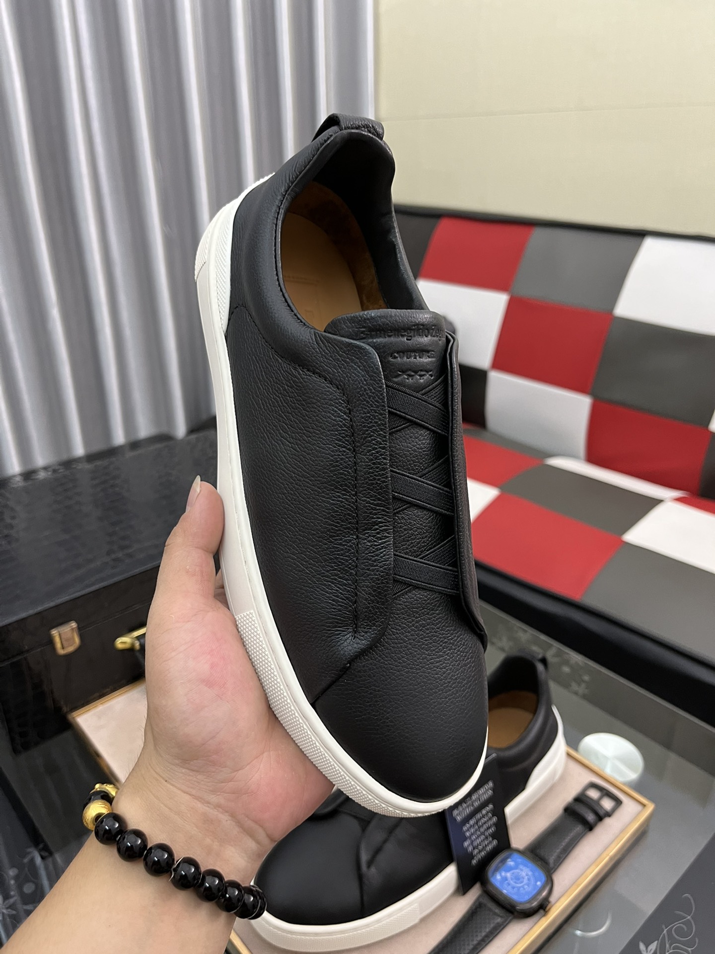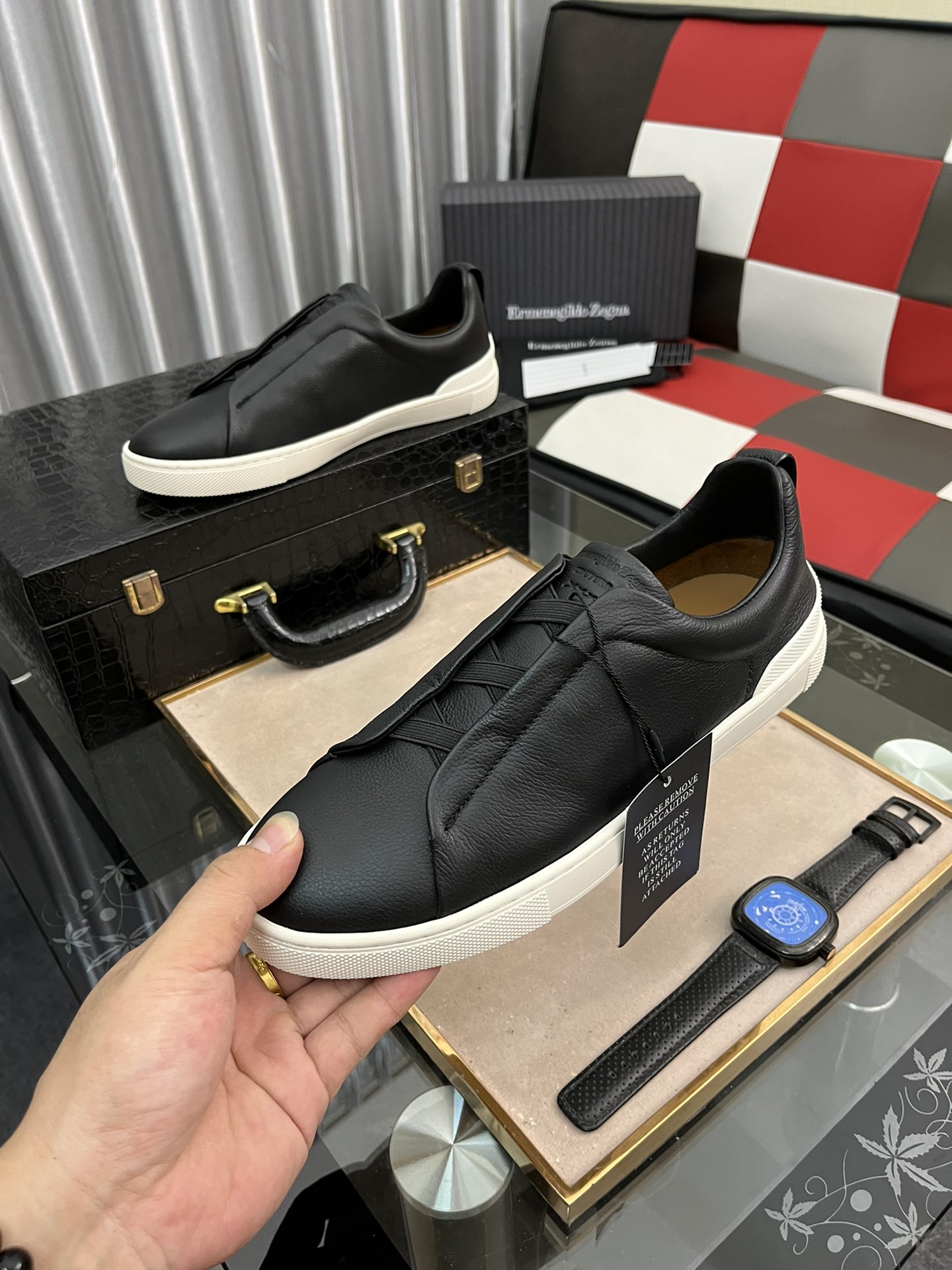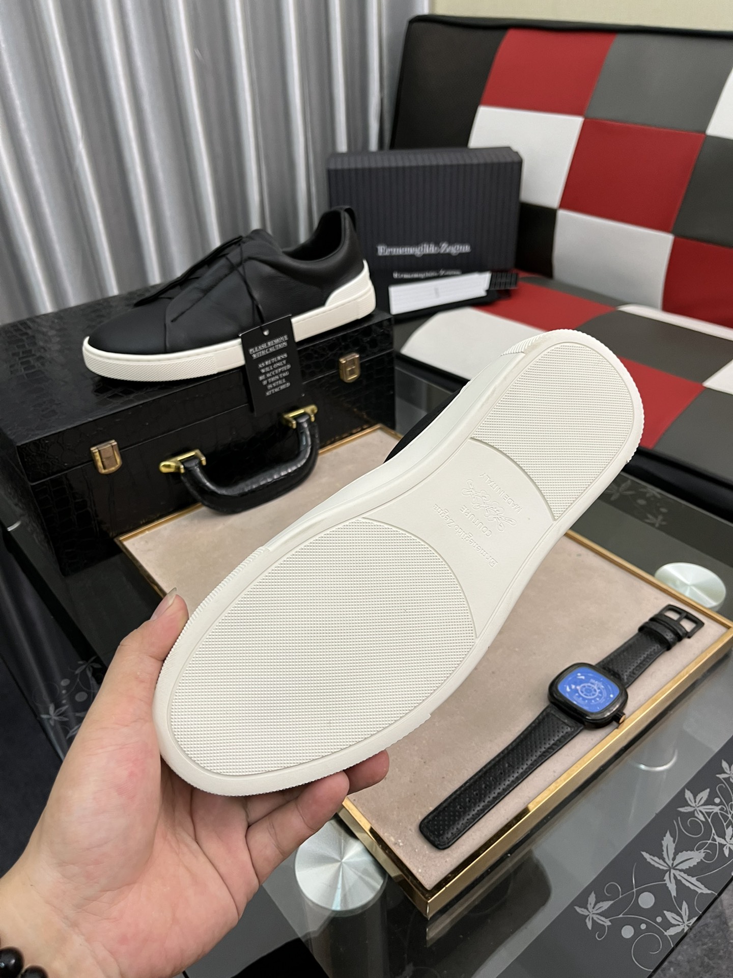 This shoes is AAAAA 1:1 quality (superb). Materials used are identical to the original ones. Zegna trademark marks are indistinguishable to the authentic. Photos take by actual shoes, what you receive will be 100% same with our photos.