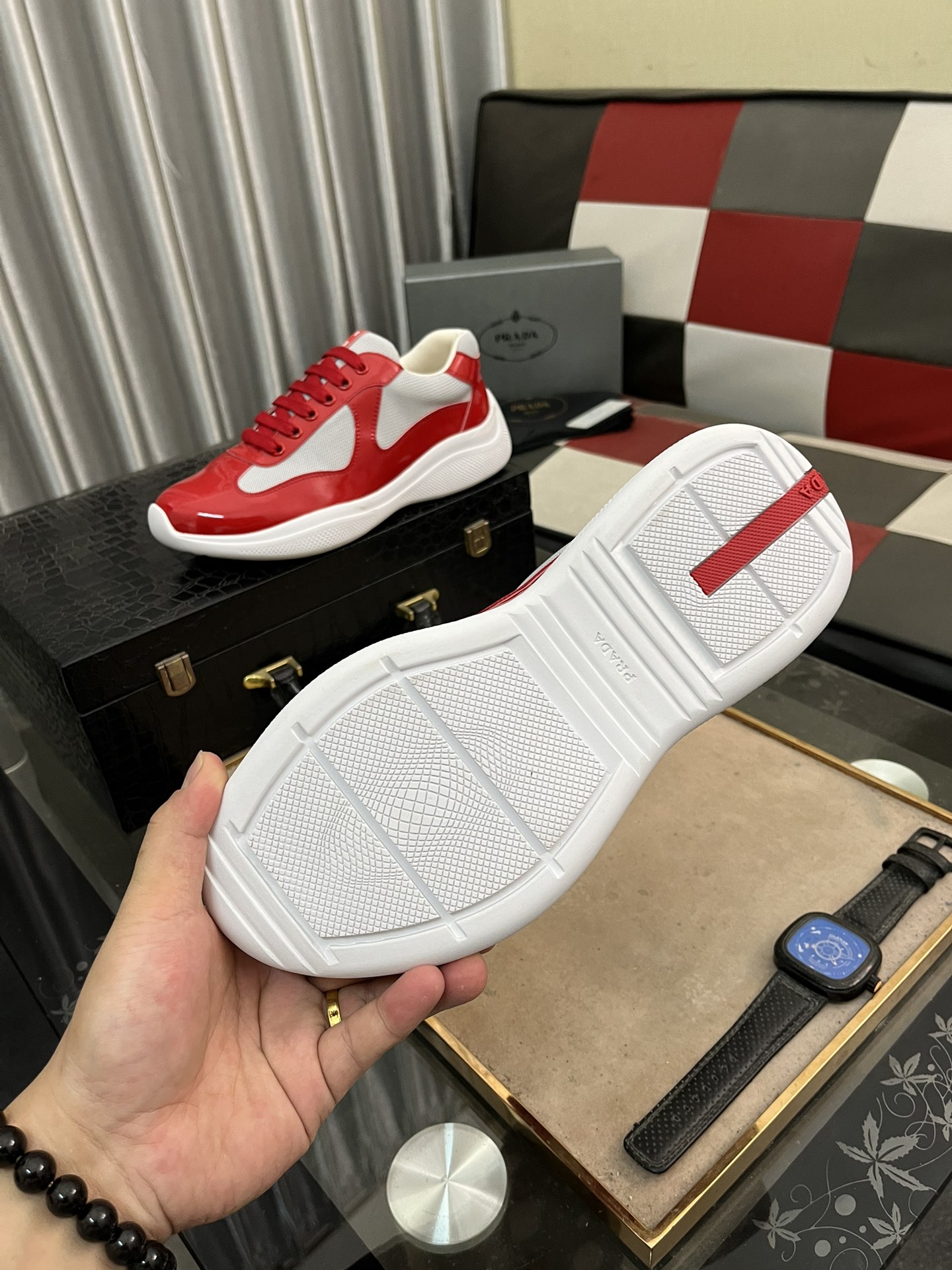 This shoes is AAAAA 1:1 quality (superb). Materials used are identical to the original ones. Prada trademark marks are indistinguishable to the authentic. Photos take by actual shoes, what you receive will be 100% same with our photos.