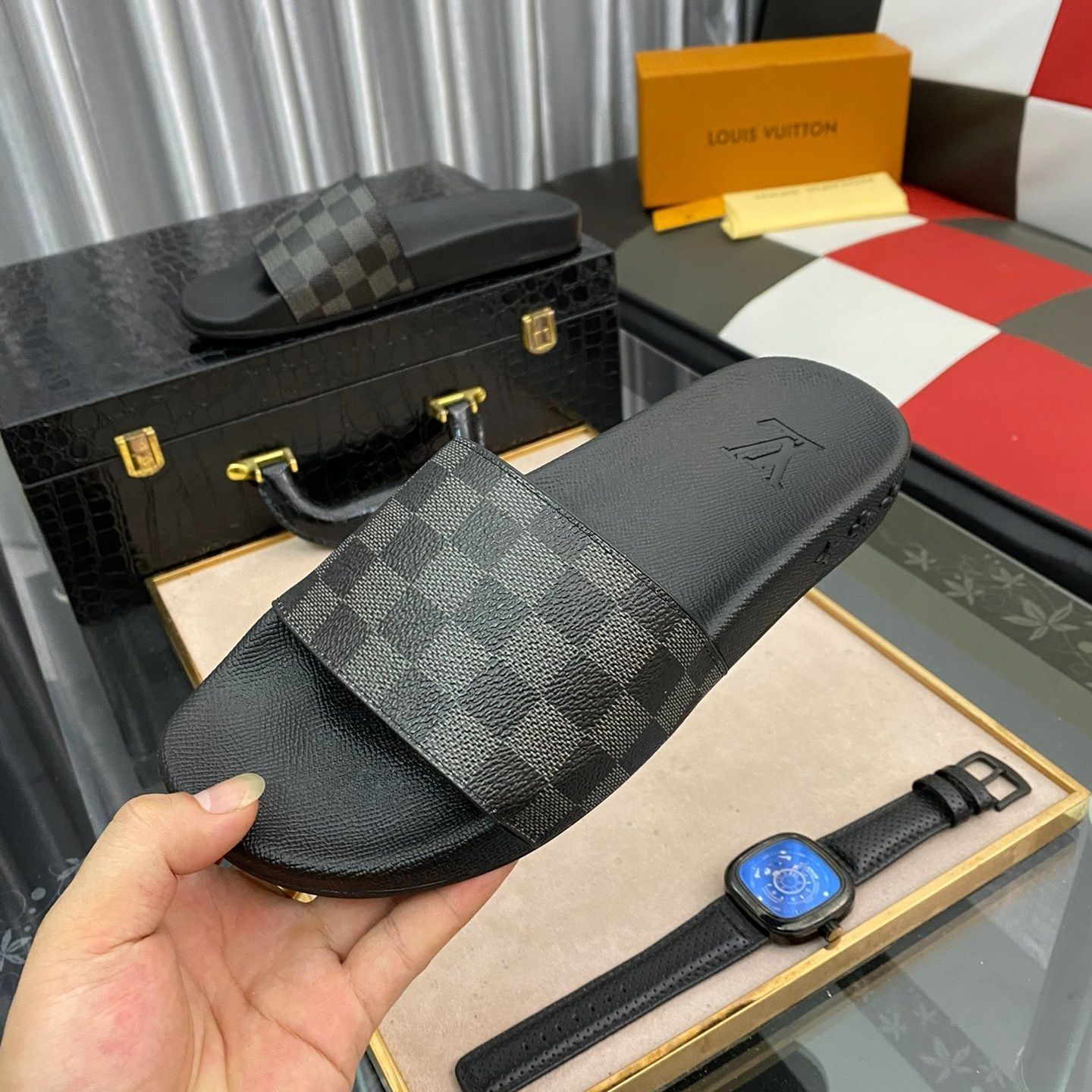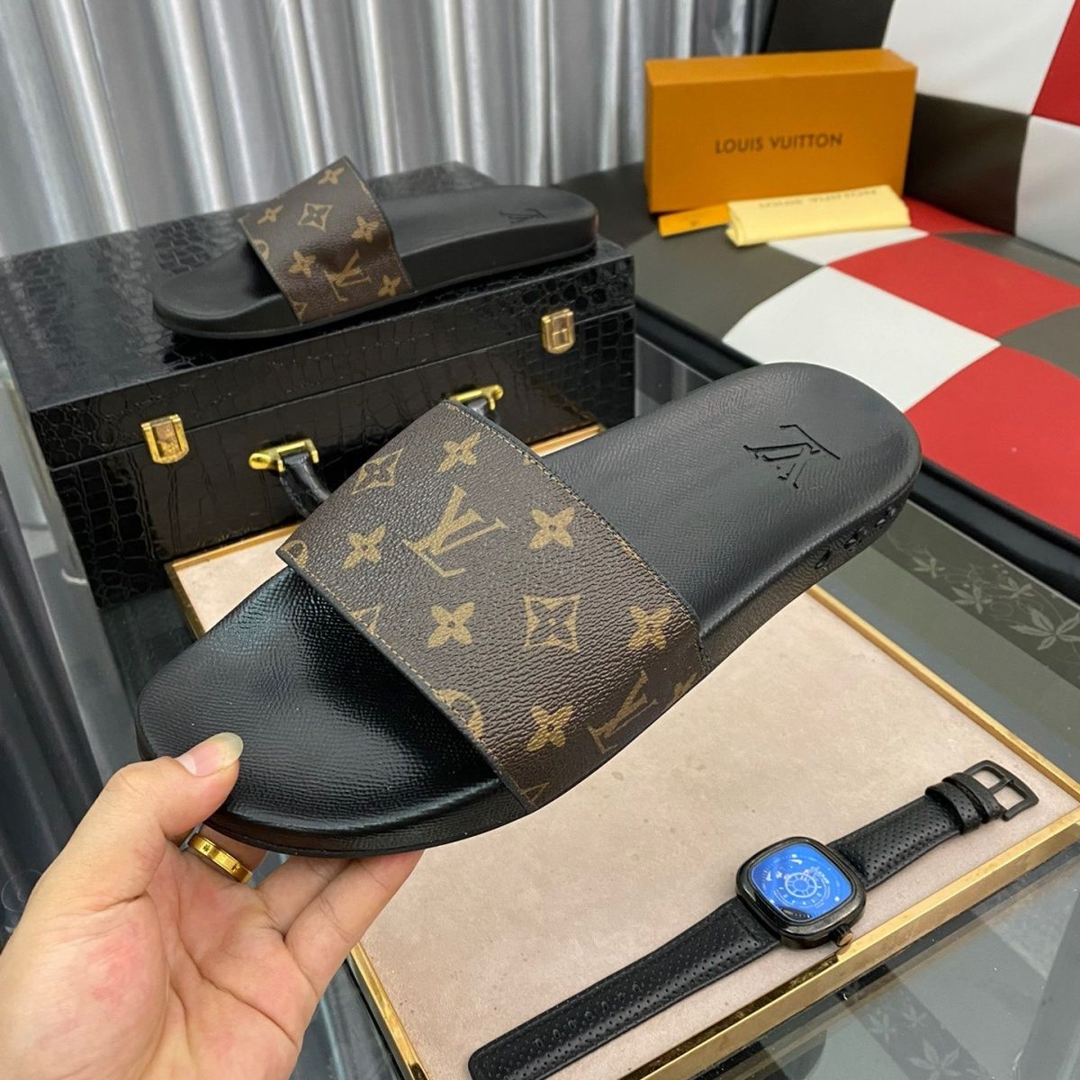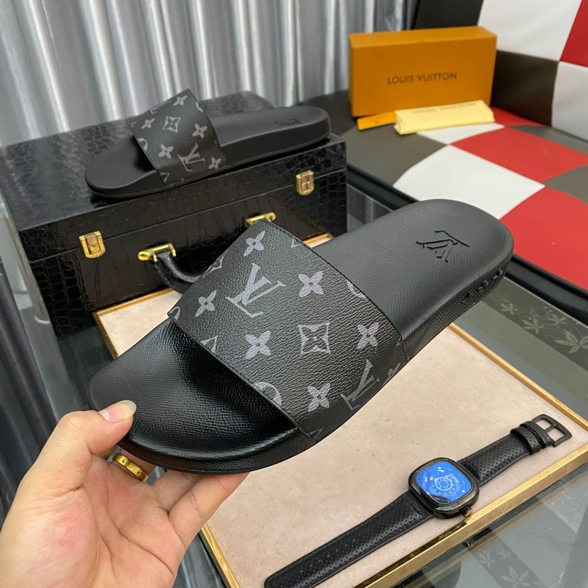 This shoes is AAAAA 1:1 quality (superb). Materials used are identical to the original ones. Louis Vuitton trademark marks are indistinguishable to the authentic. Photos take by actual shoes, what you receive will be 100% same with our photos.