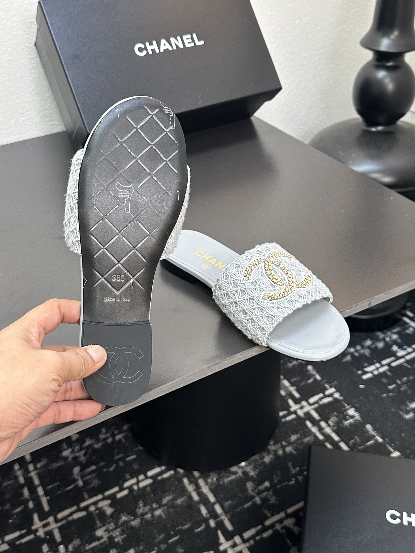 This shoes is AAAAA 1:1 quality (superb). Materials used are identical to the original ones. Chanel trademark marks are indistinguishable to the authentic. Photos take by actual shoes, what you receive will be 100% same with our photos.
