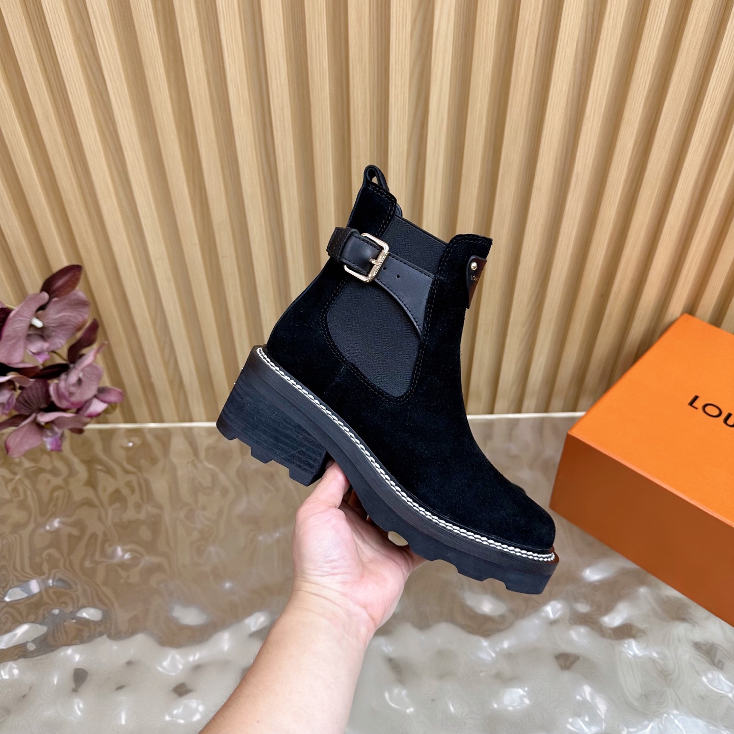 This shoes is AAAAA 1:1 quality (superb). Materials used are identical to the original ones. Louis Vuitton trademark marks are indistinguishable to the authentic. Photos take by actual shoes, what you receive will be 100% same with our photos.
