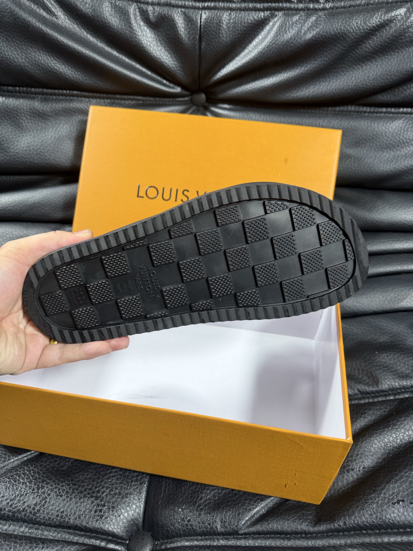 This shoes is AAAAA 1:1 quality (superb). Materials used are identical to the original ones. Louis Vuitton trademark marks are indistinguishable to the authentic. Photos take by actual shoes, what you receive will be 100% same with our photos.