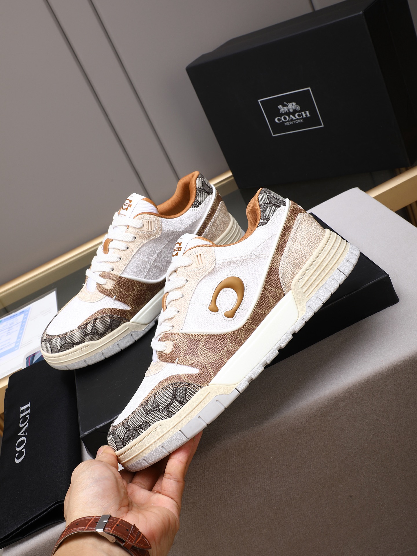 This shoes is AAAAA 1:1 quality (superb). Materials used are identical to the original ones. Coach trademark marks are indistinguishable to the authentic. Photos take by actual shoes, what you receive will be 100% same with our photos.