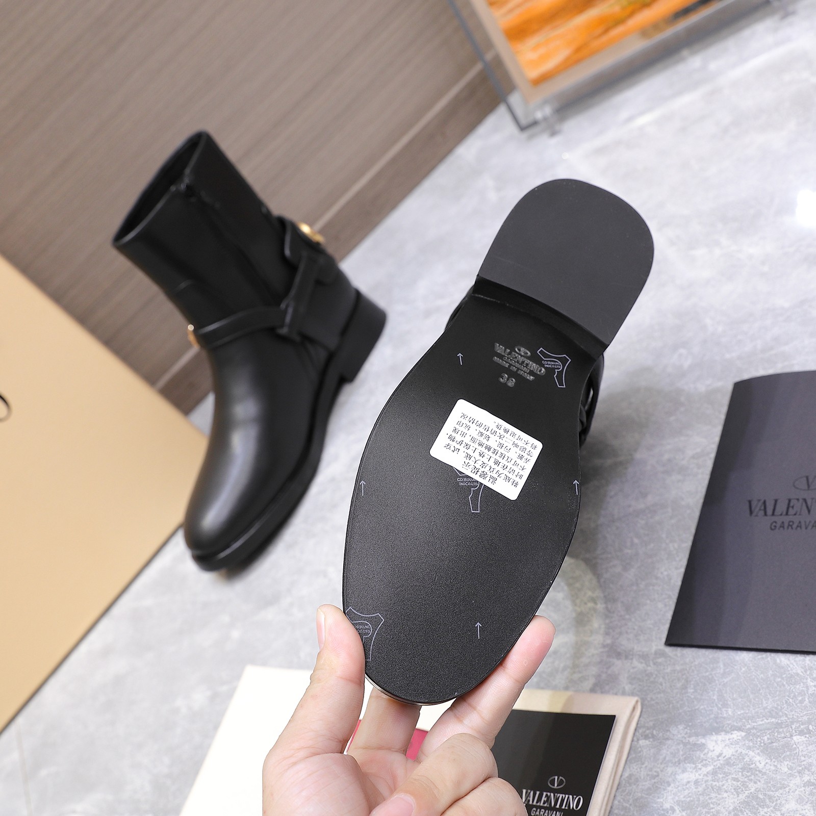 This shoes is AAAAA 1:1 quality (superb). Materials used are identical to the original ones. Valentino trademark marks are indistinguishable to the authentic. Photos take by actual shoes, what you receive will be 100% same with our photos.