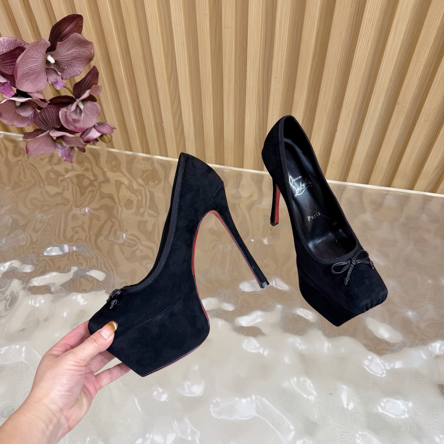 This shoes is AAAAA 1:1 quality (superb). Materials used are identical to the original ones. Christian Louboutin trademark marks are indistinguishable to the authentic. Photos take by actual shoes, what you receive will be 100% same with our photos.