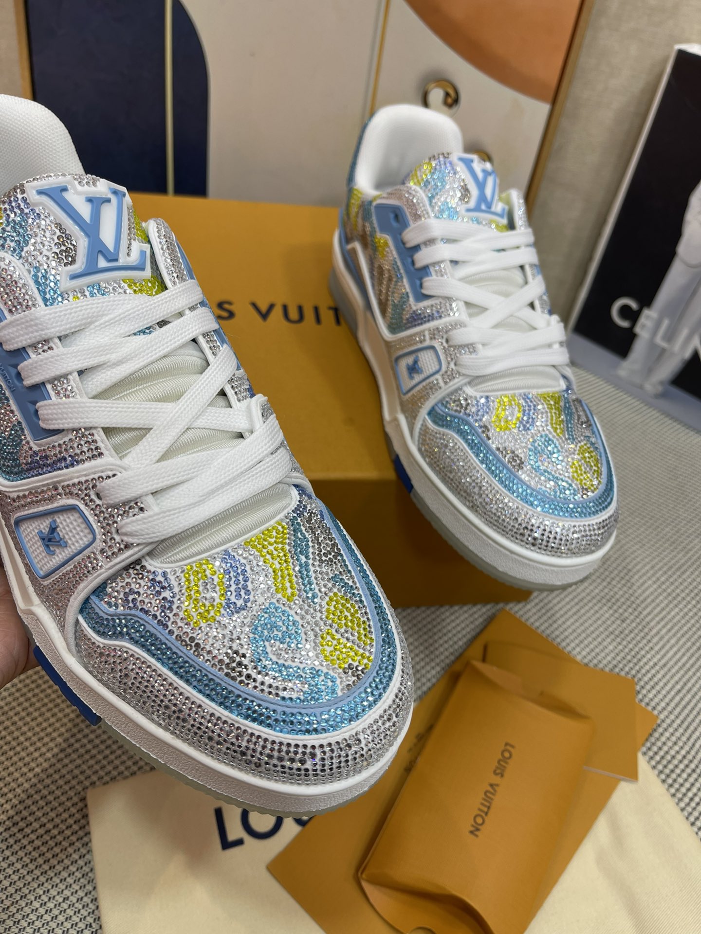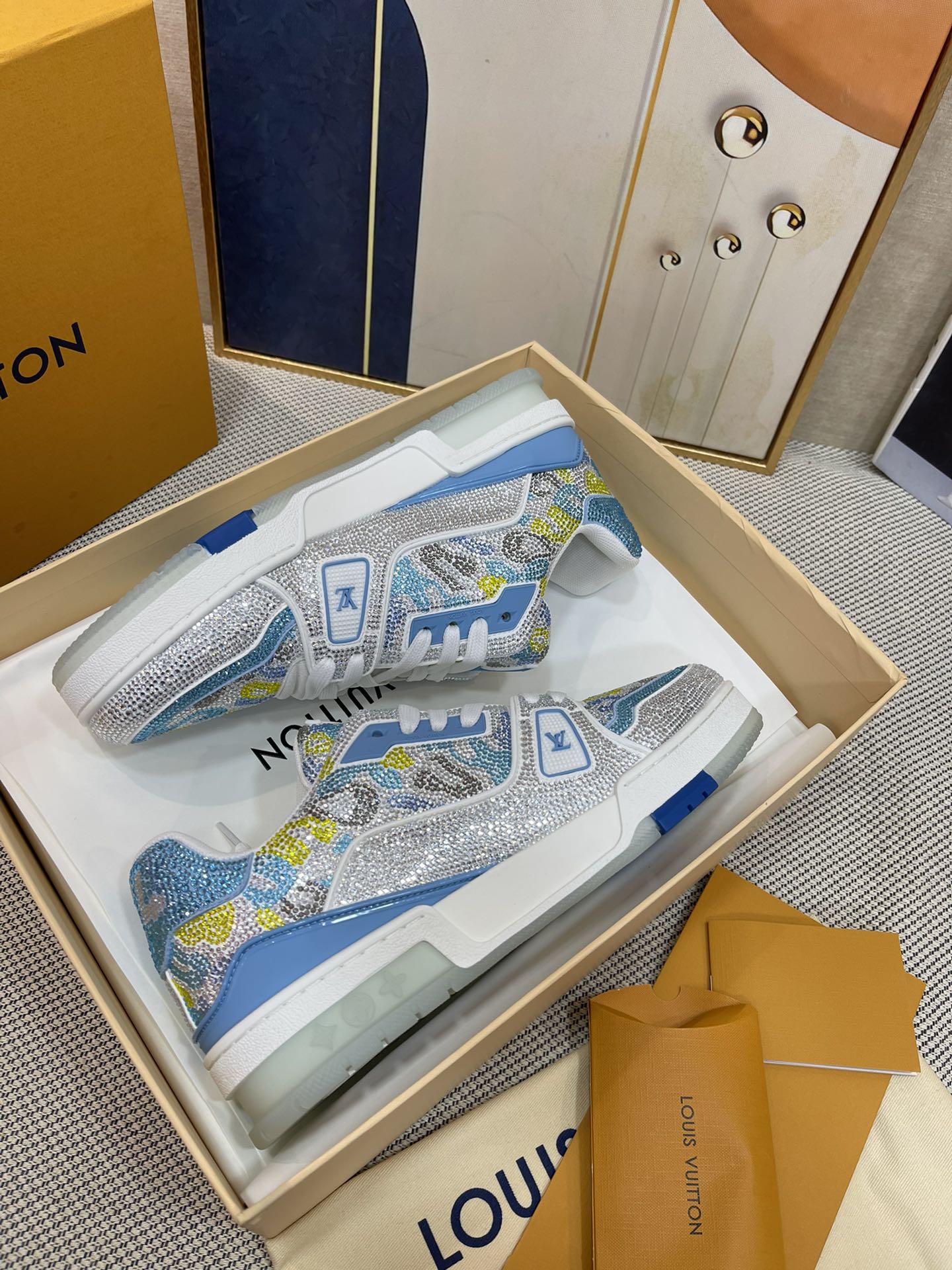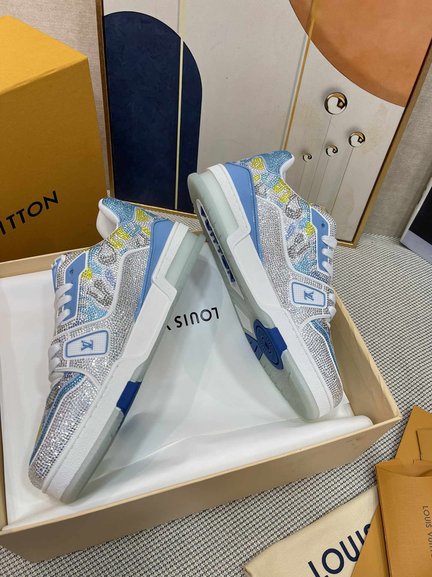 This shoes is AAAAA 1:1 quality (superb). Materials used are identical to the original ones. Louis Vuitton trademark marks are indistinguishable to the authentic. Photos take by actual shoes, what you receive will be 100% same with our photos.