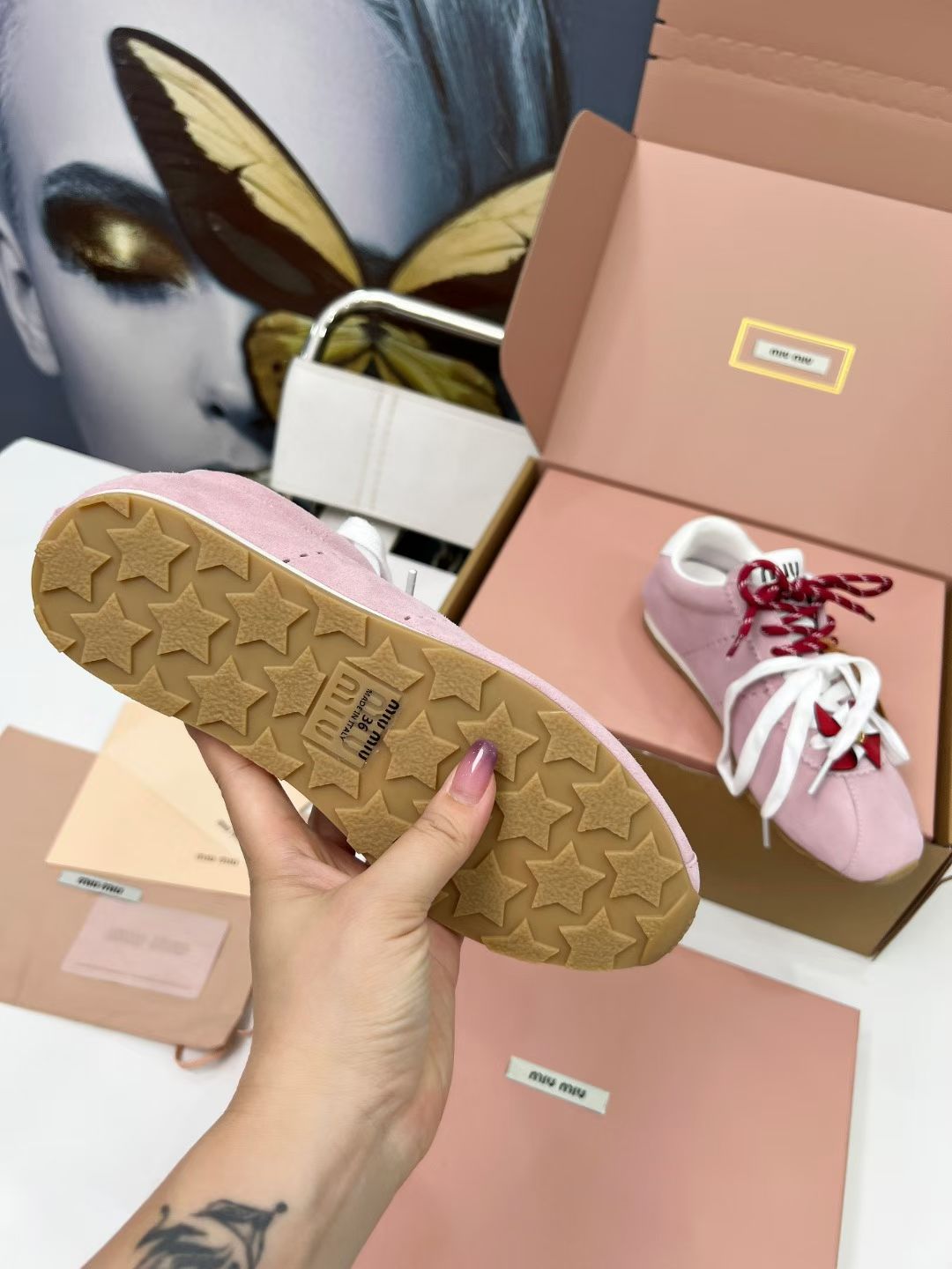 This shoes is AAAAA 1:1 quality (superb). Materials used are identical to the original ones. Miu Miu trademark marks are indistinguishable to the authentic. Photos take by actual shoes, what you receive will be 100% same with our photos.