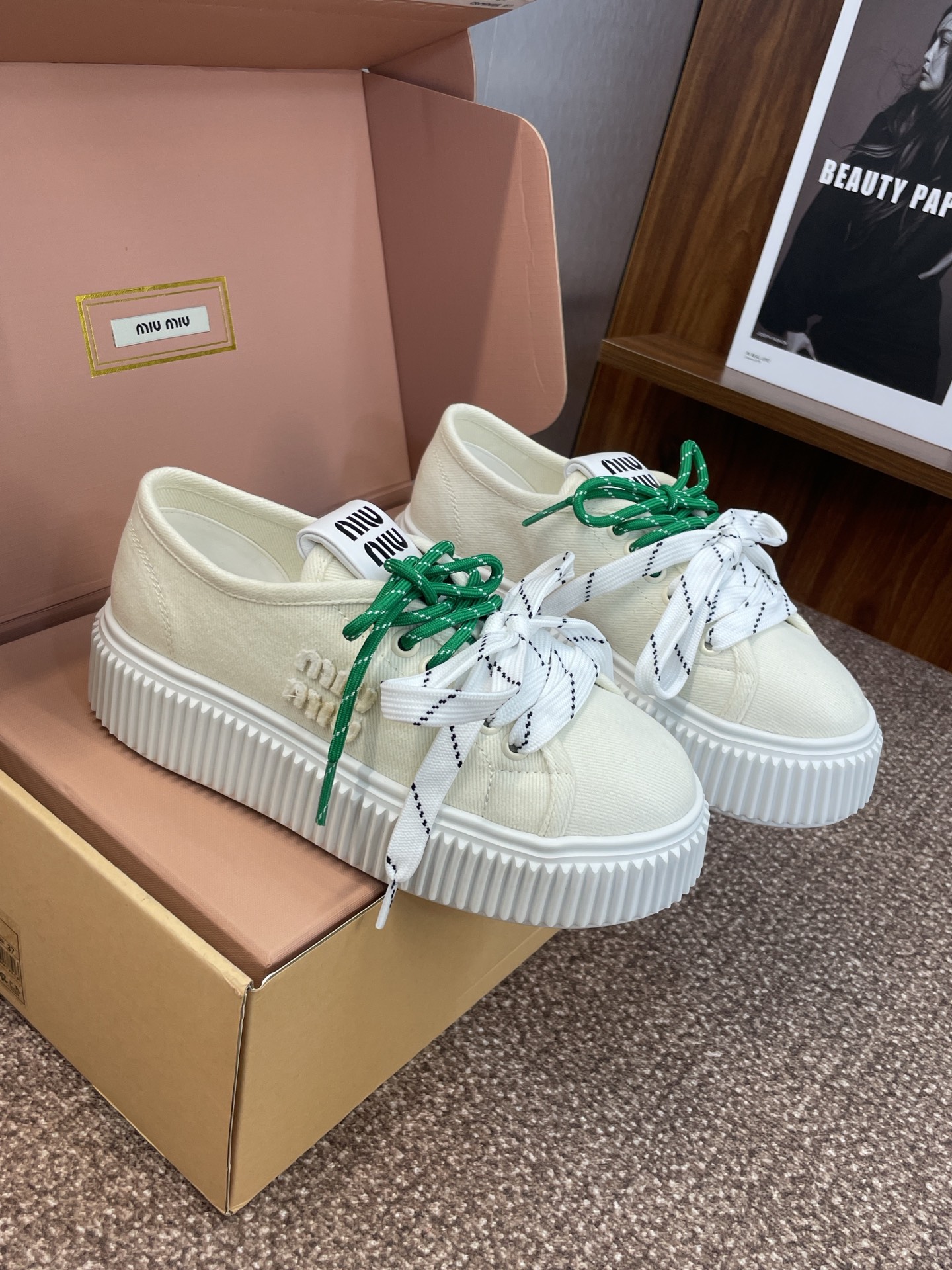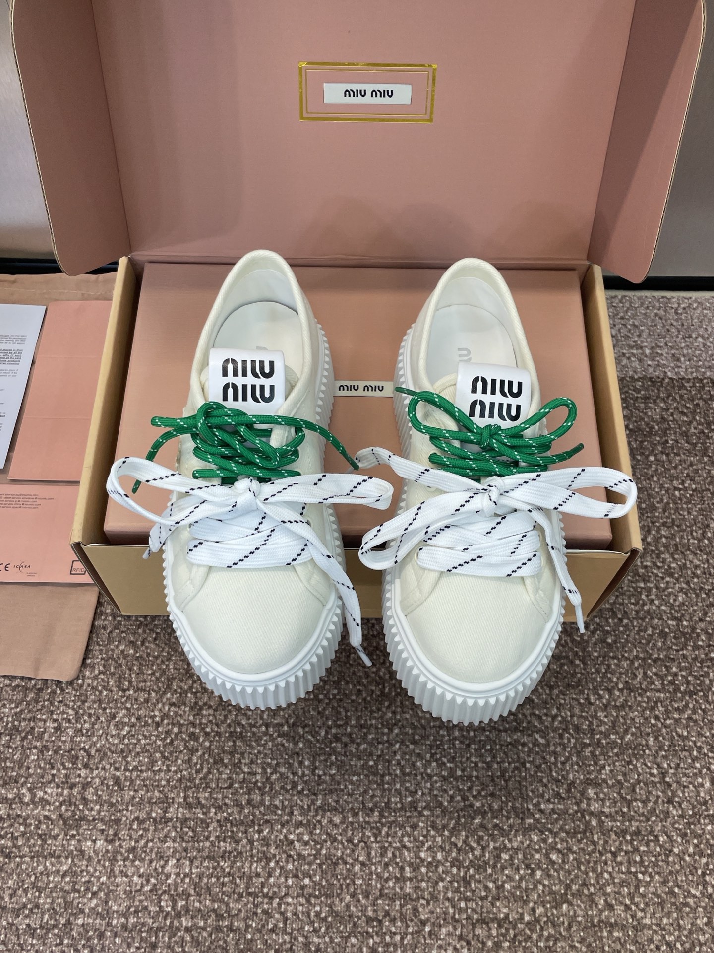 NO:4001107. The shoes is from Miu Miu designer.