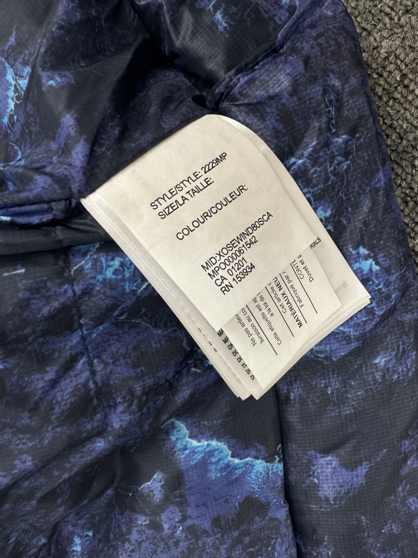 NO:4001888. The clothes is from Canada Goose designer.