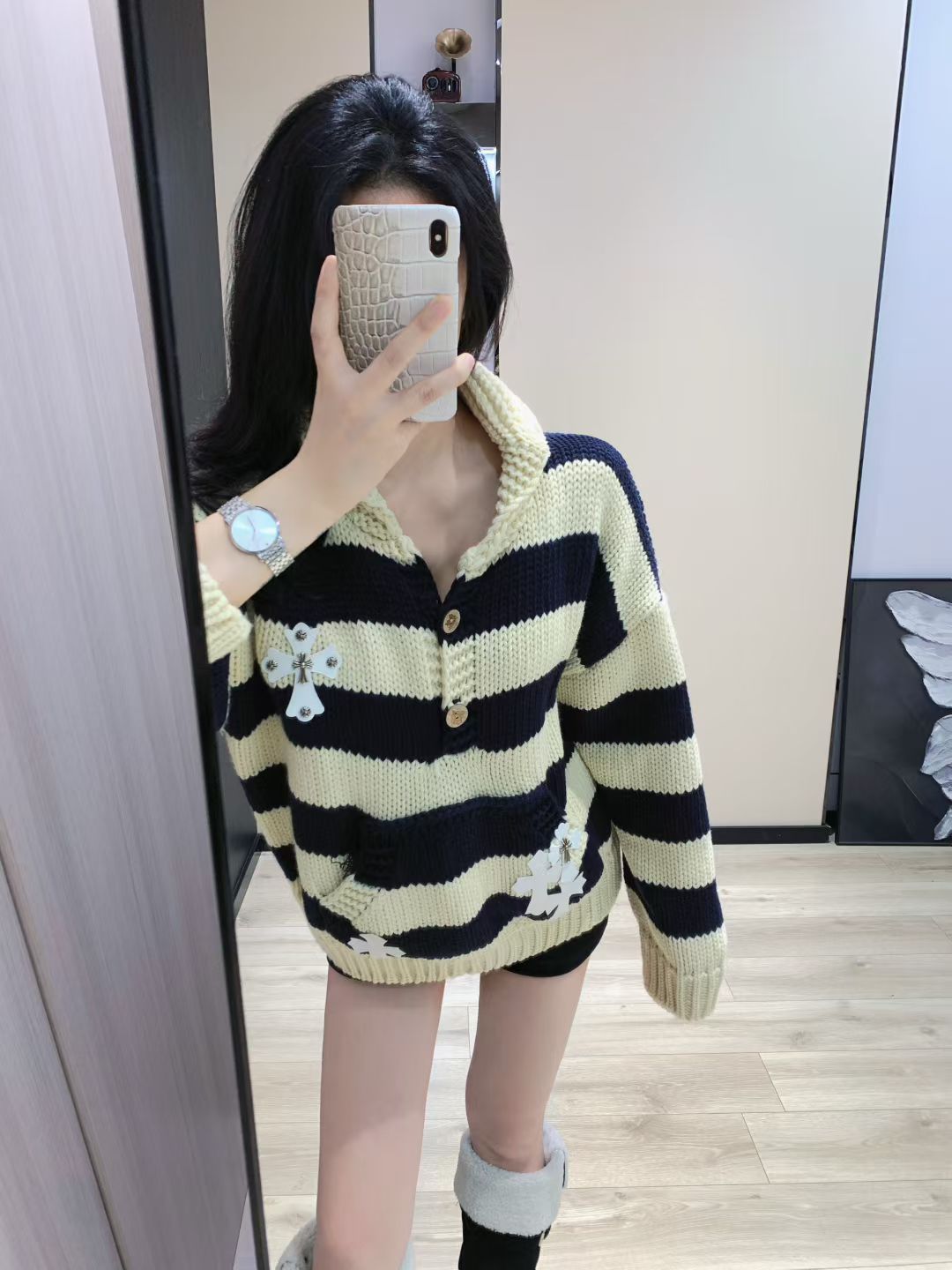 This clothes is AAAAA 1:1 quality (superb). Materials used are identical to the original ones. trademark marks are indistinguishable to the authentic. Photos take by actual clothes, what you receive will be 100% same with our photos.