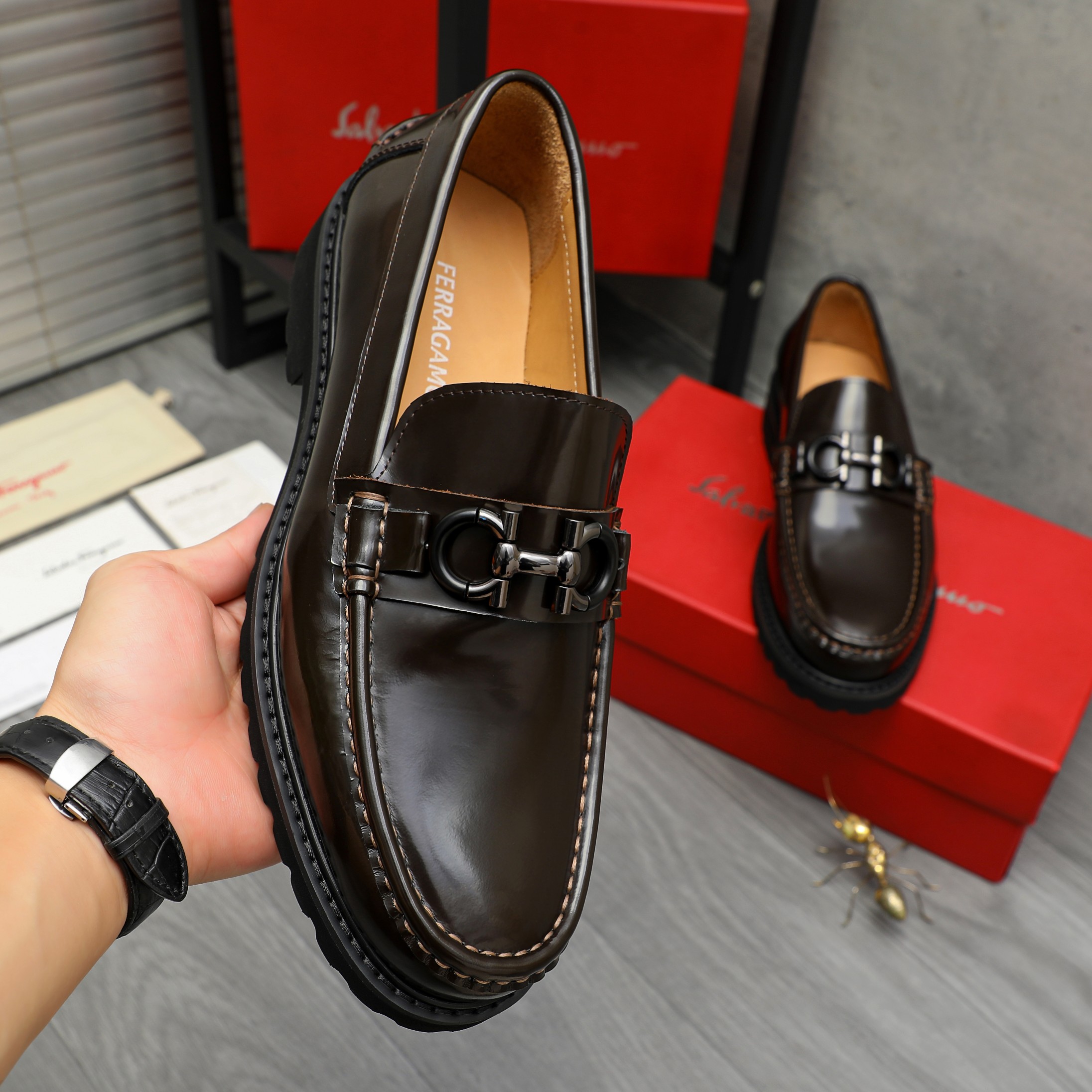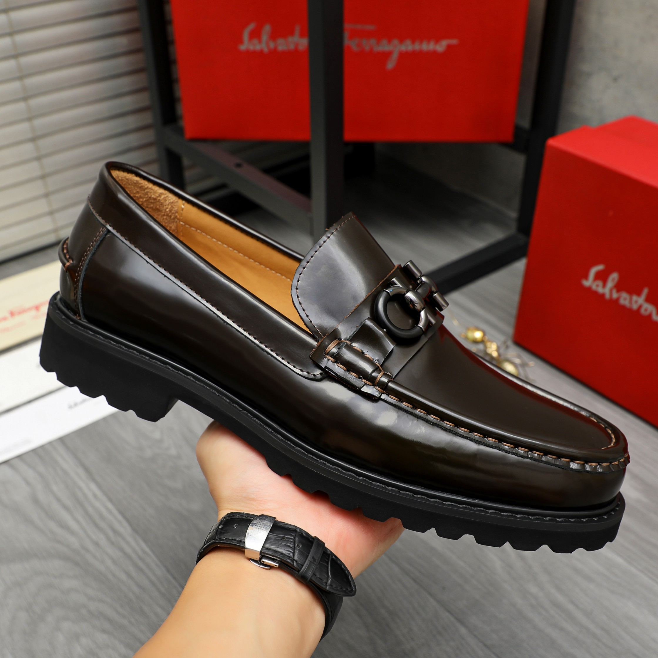 This shoes is AAAAA 1:1 quality (superb). Materials used are identical to the original ones. Salvatore Ferragamo trademark marks are indistinguishable to the authentic. Photos take by actual shoes, what you receive will be 100% same with our photos.