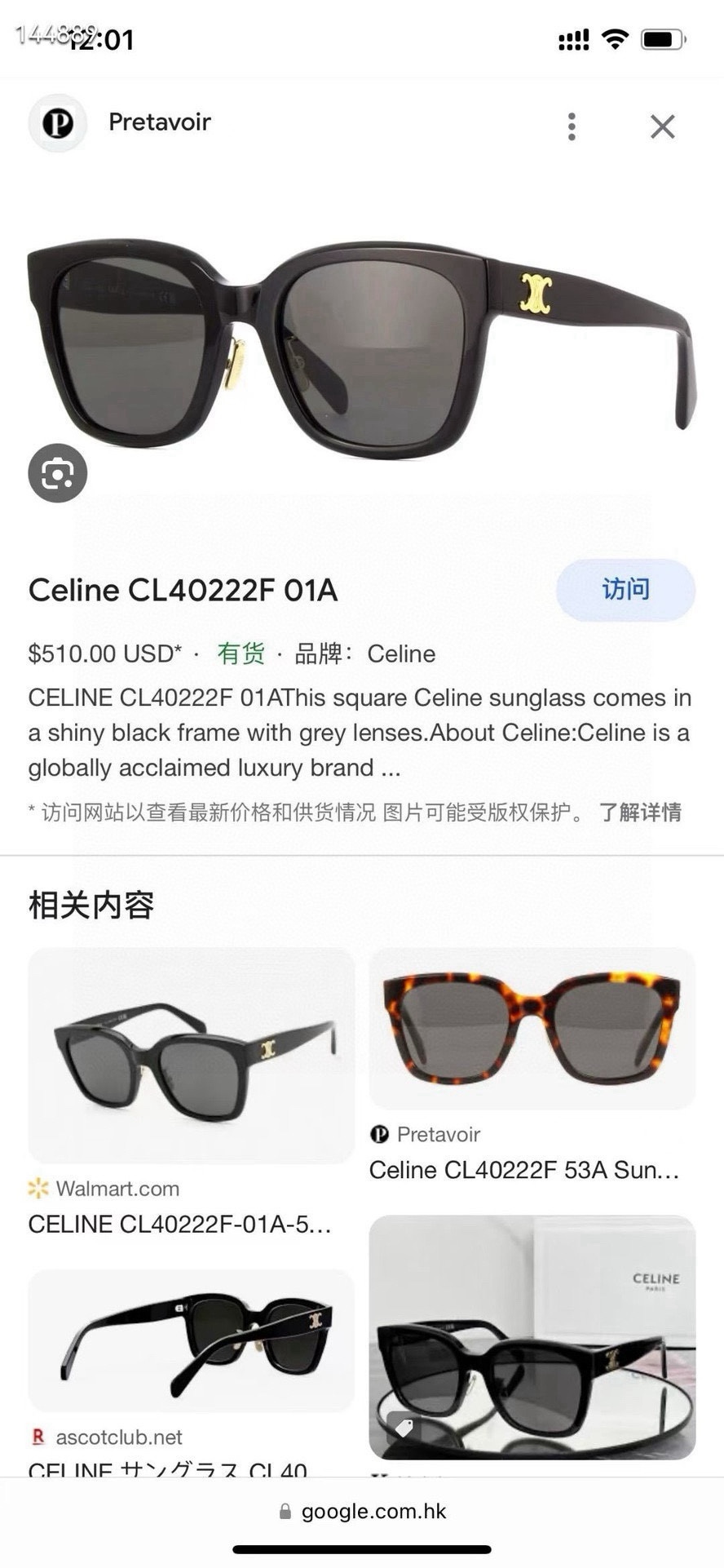 NO:4028711. The sunglasses is from Celine designer.