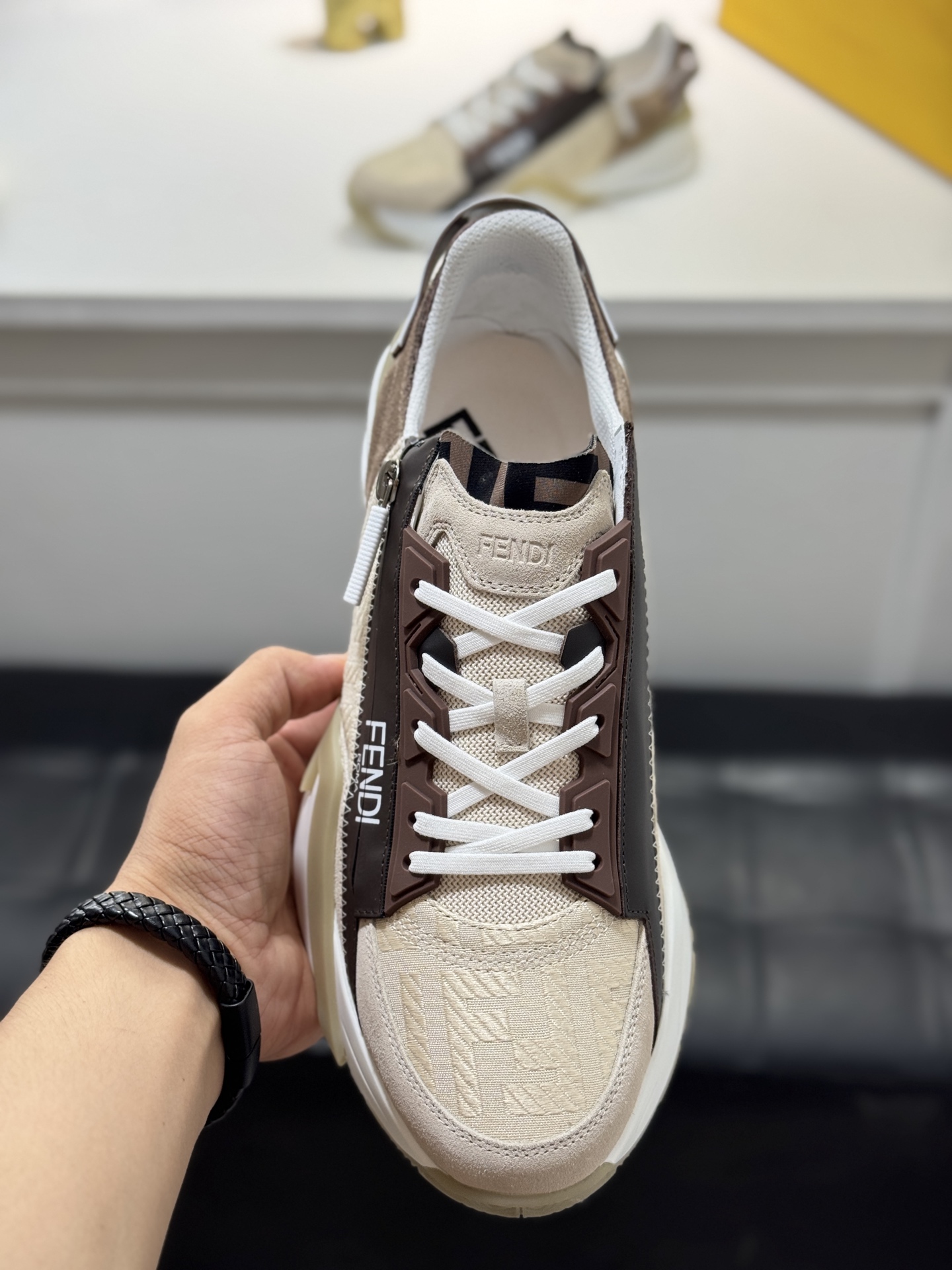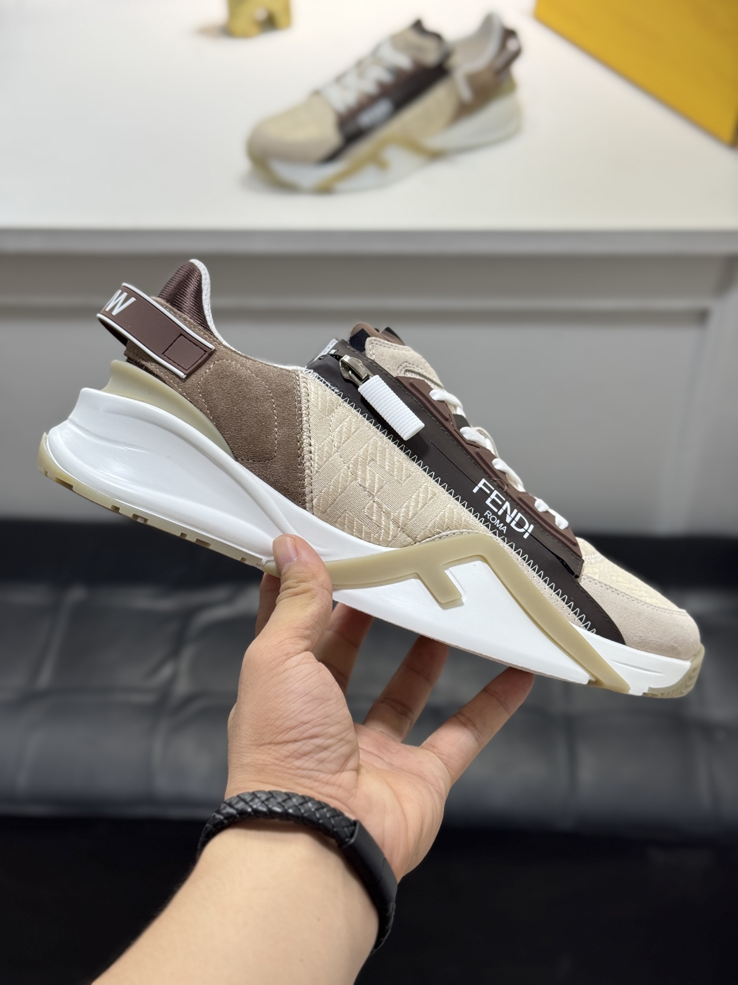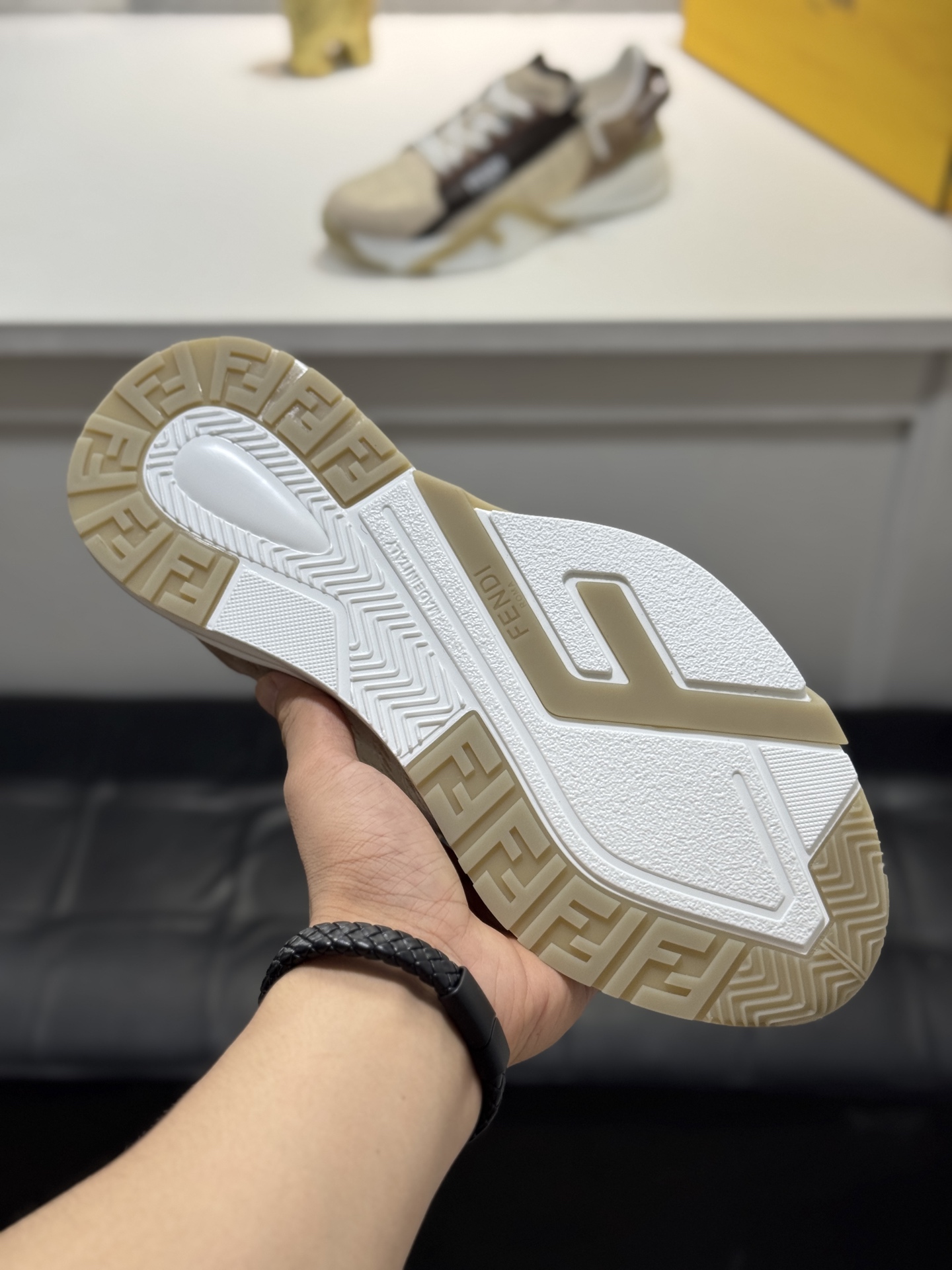 This shoes is AAAAA 1:1 quality (superb). Materials used are identical to the original ones. Fendi trademark marks are indistinguishable to the authentic. Photos take by actual shoes, what you receive will be 100% same with our photos.