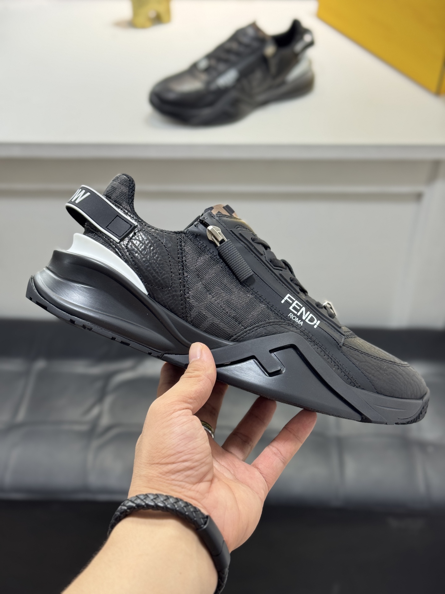 This shoes is AAAAA 1:1 quality (superb). Materials used are identical to the original ones. Fendi trademark marks are indistinguishable to the authentic. Photos take by actual shoes, what you receive will be 100% same with our photos.