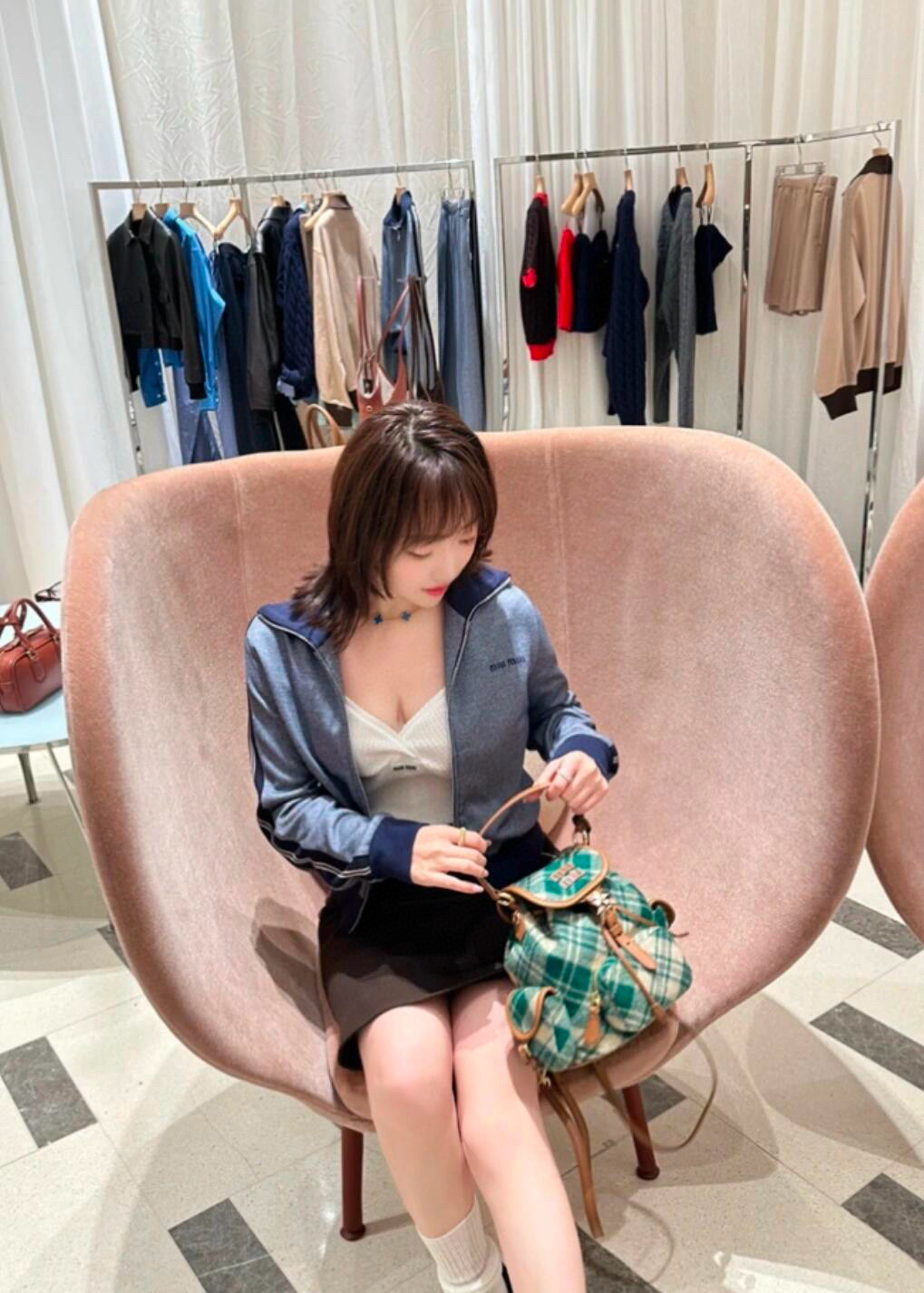 NO:4067926. The clothes is from Miu Miu designer.