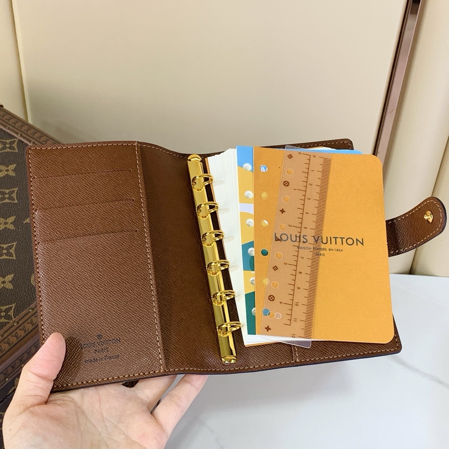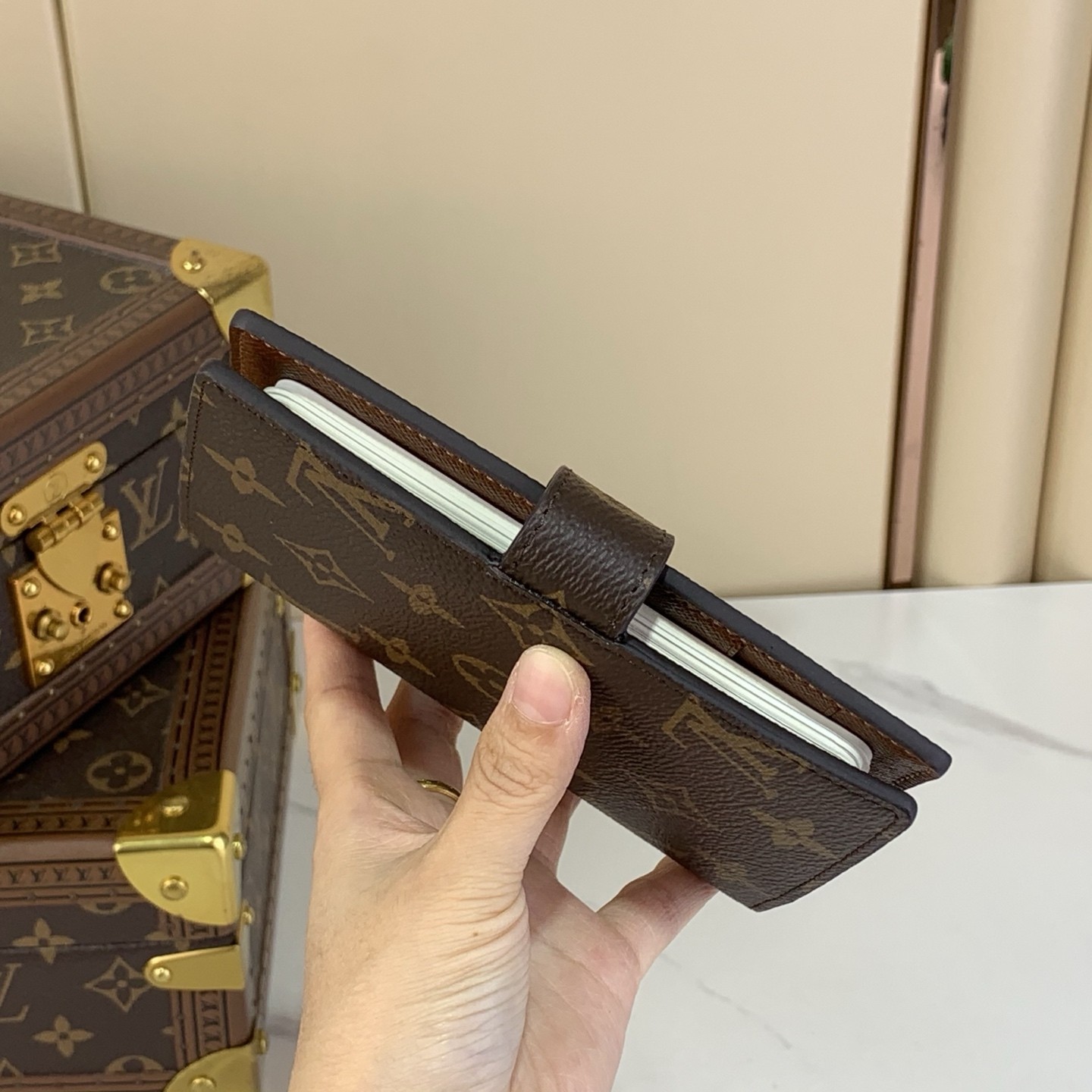NO:4075815. The notepad is from Louis Vuitton designer.