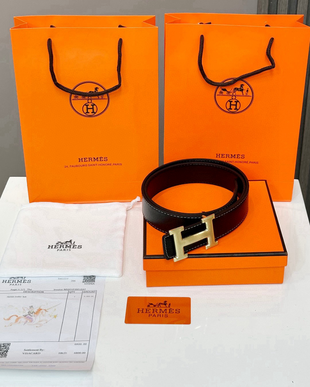 NO:4076919. The belt is from Hermes designer.