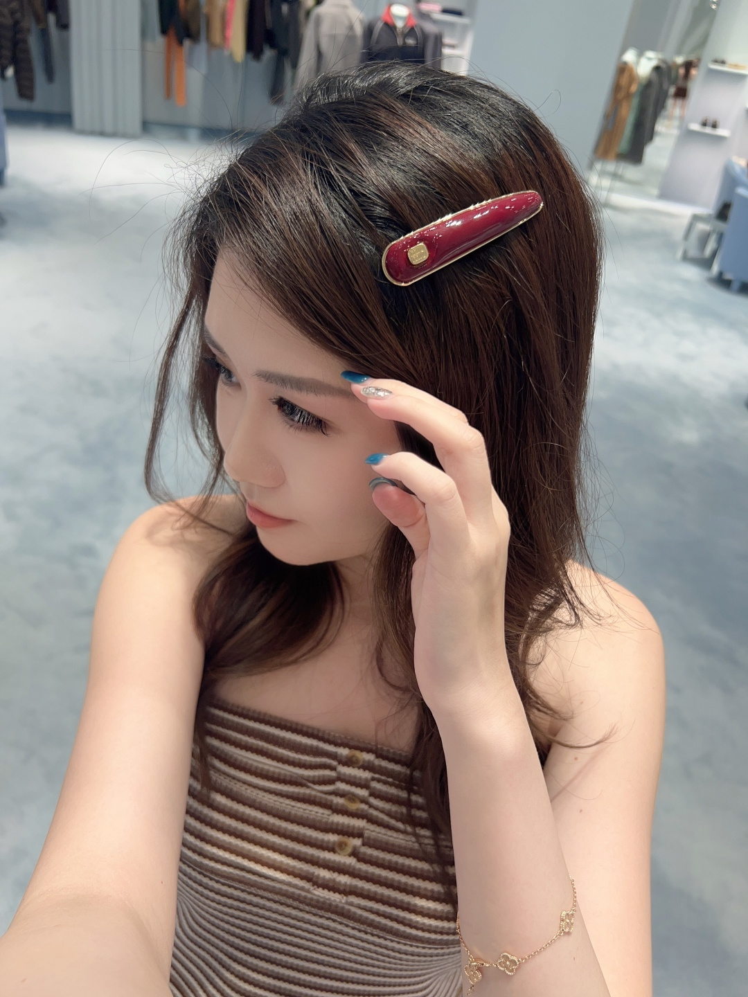 NO:4084272. The jewelry is from Miu Miu designer.