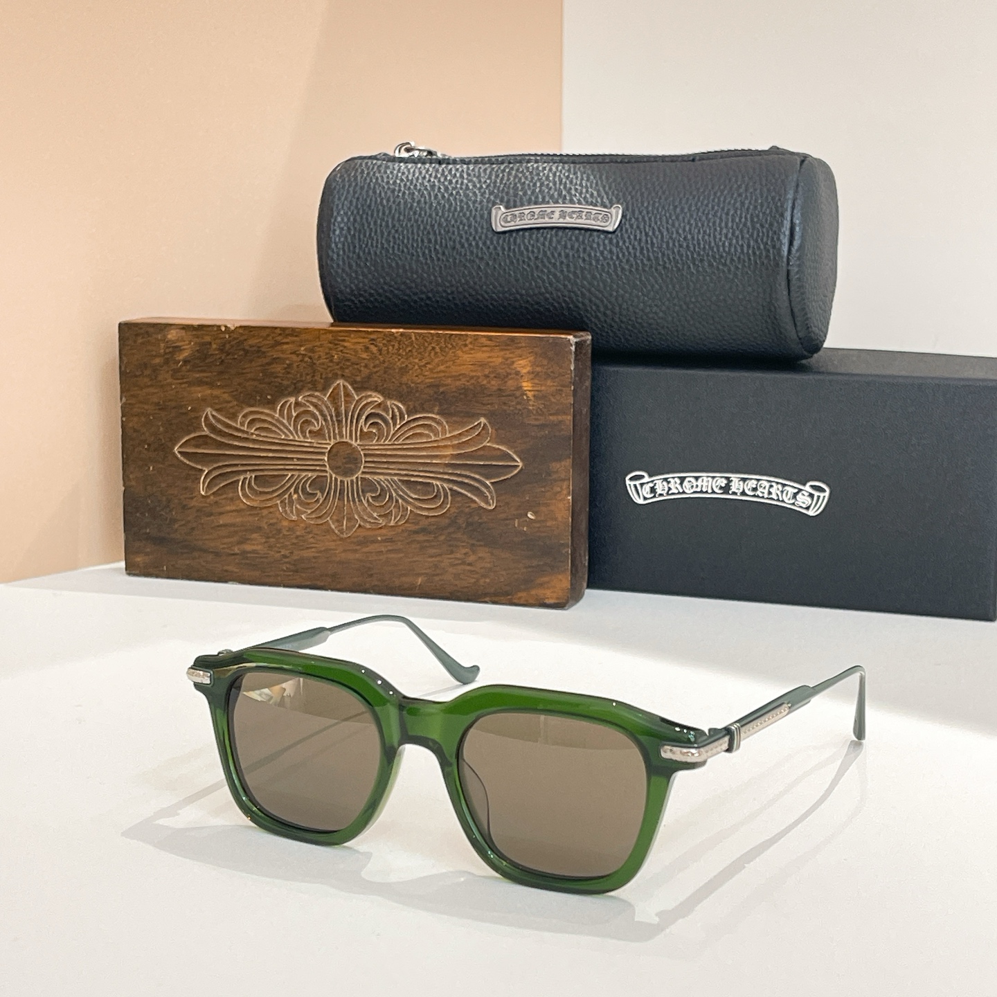 This sunglasses is AAAAA 1:1 quality (superb). Materials used are identical to the original ones. Chrome Hearts trademark marks are indistinguishable to the authentic. Photos take by actual sunglasses, what you receive will be 100% same with our photos.