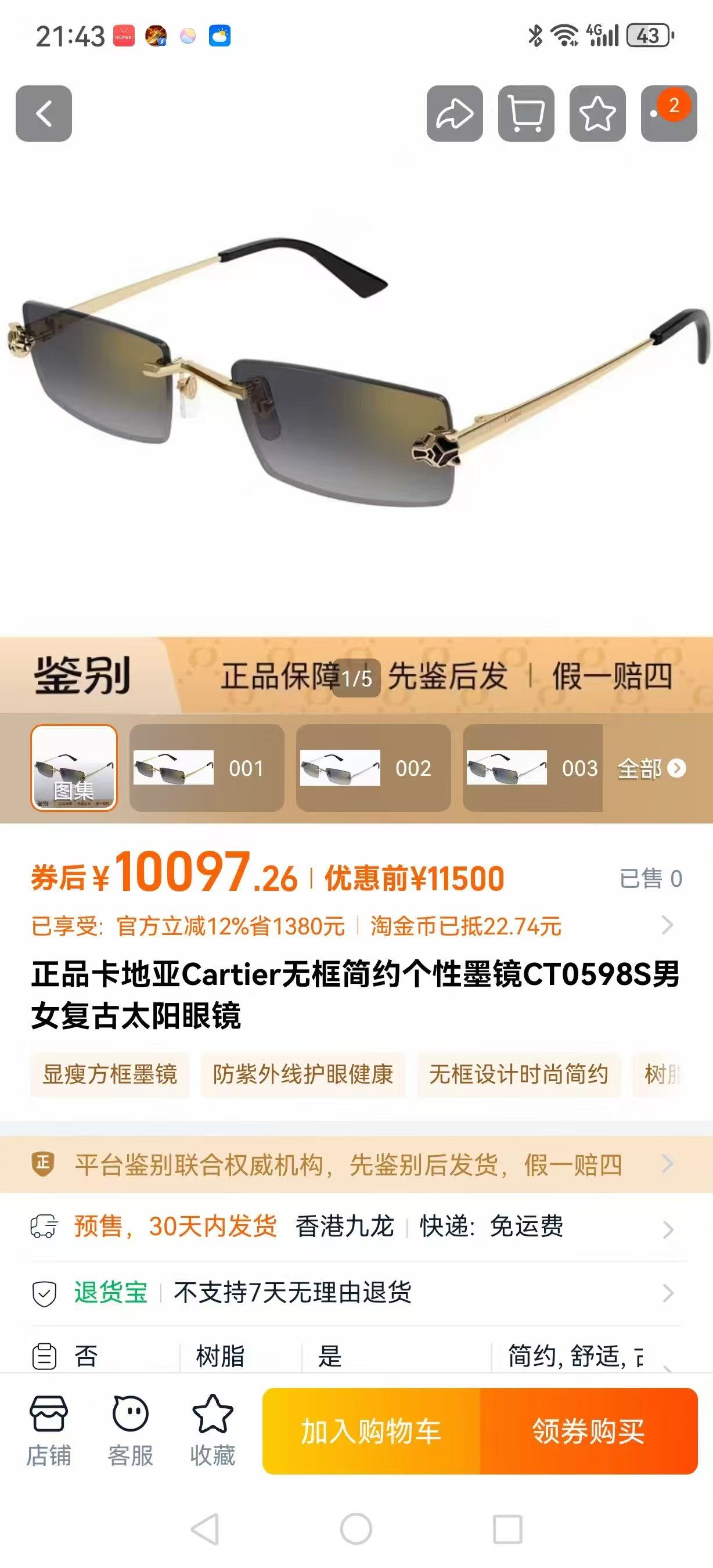NO:4094787. The sunglasses is from Cartier designer.