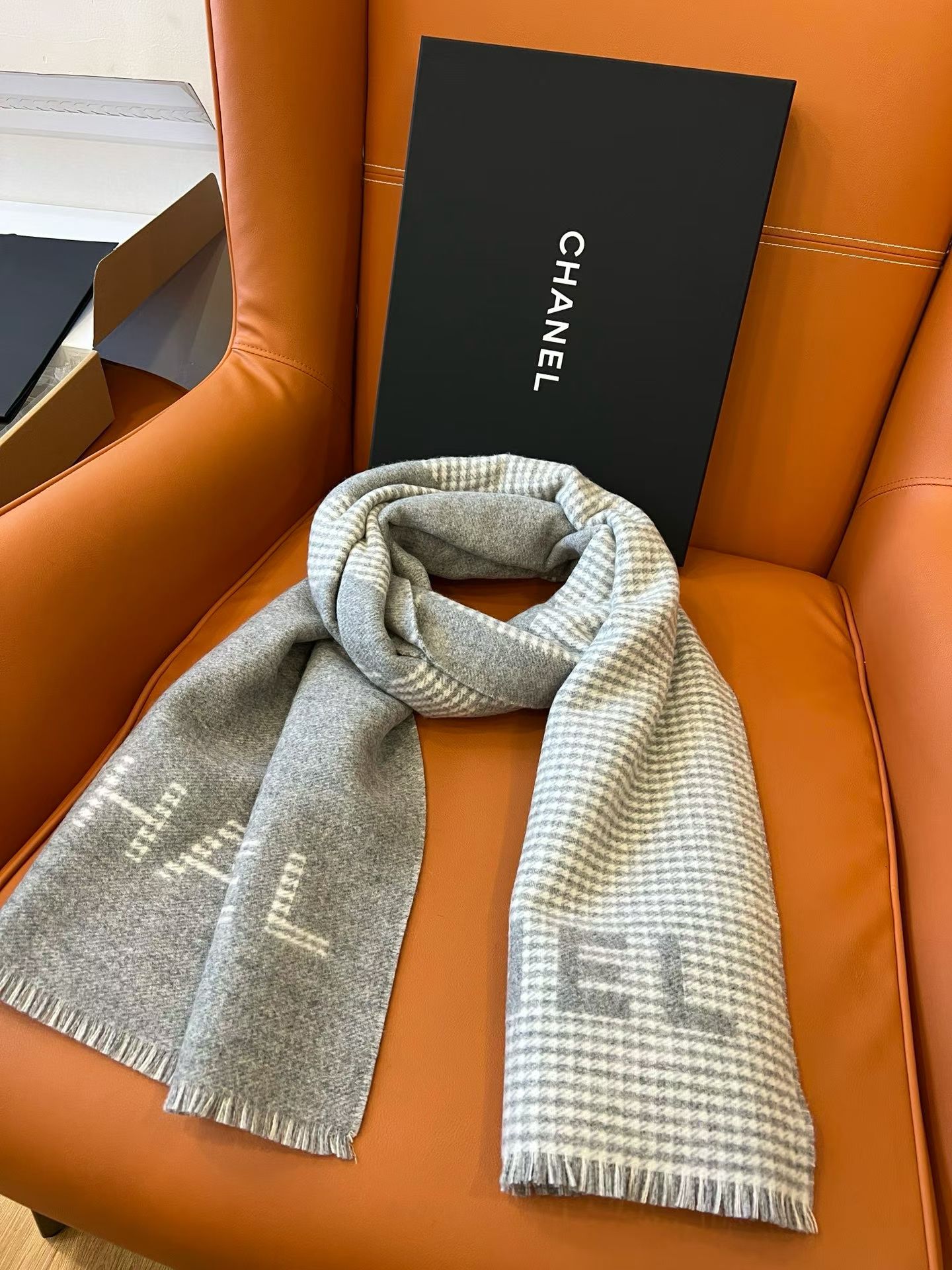 NO:4099036. The scarf is from Chanel designer.