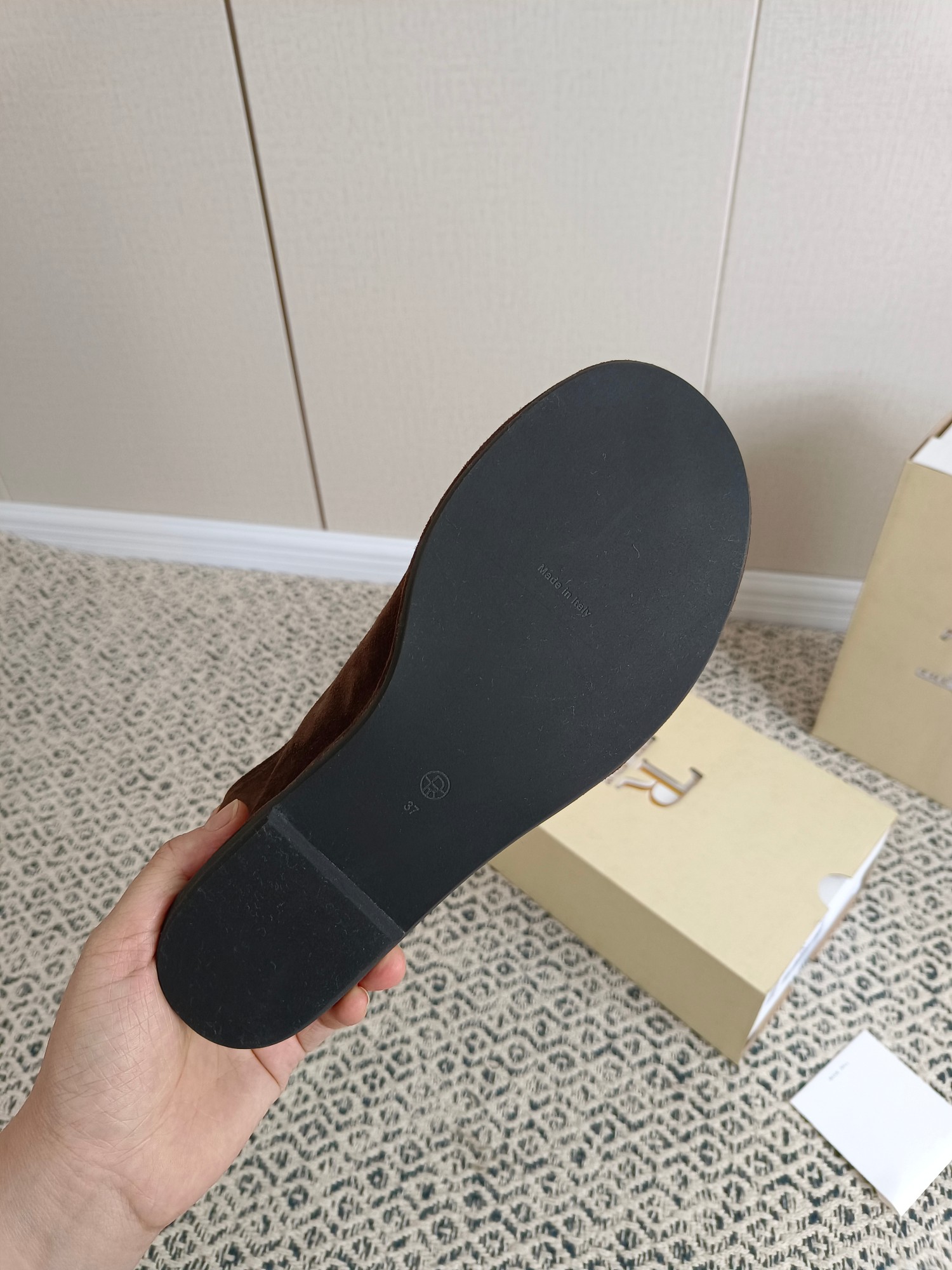 This shoes is AAAAA 1:1 quality (superb). Materials used are identical to the original ones. The Row trademark marks are indistinguishable to the authentic. Photos take by actual shoes, what you receive will be 100% same with our photos.