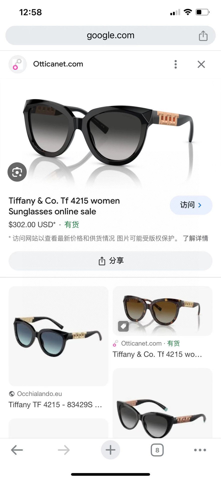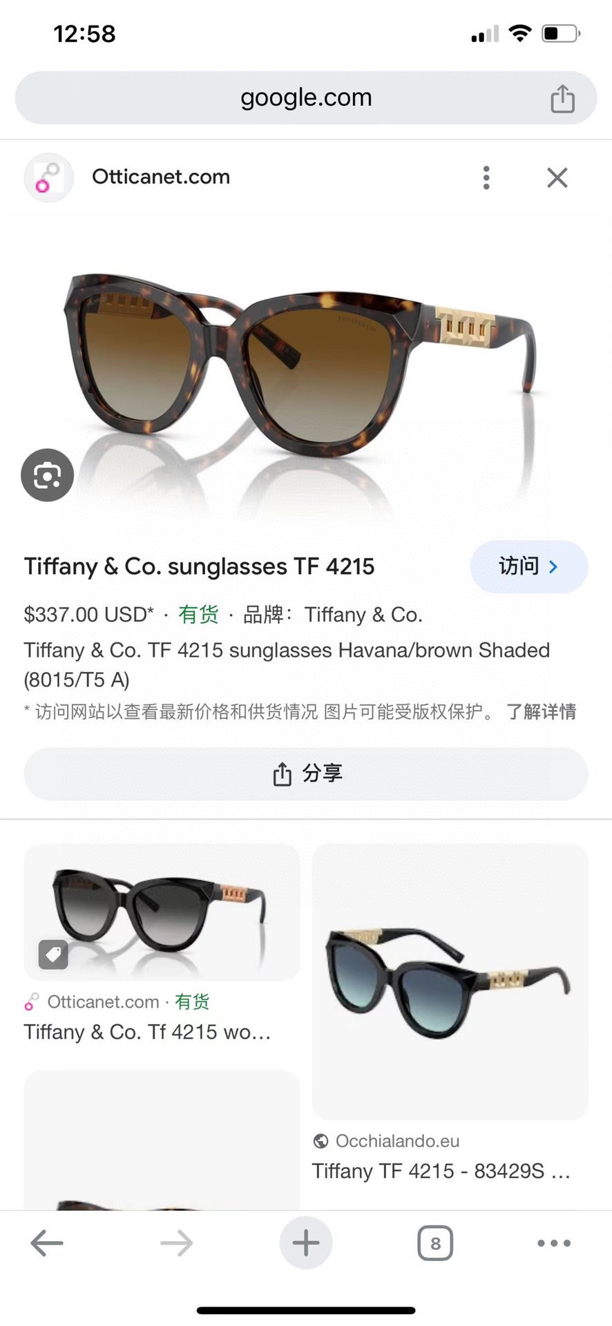 NO:4110880. The sunglasses is from Tiffany designer.