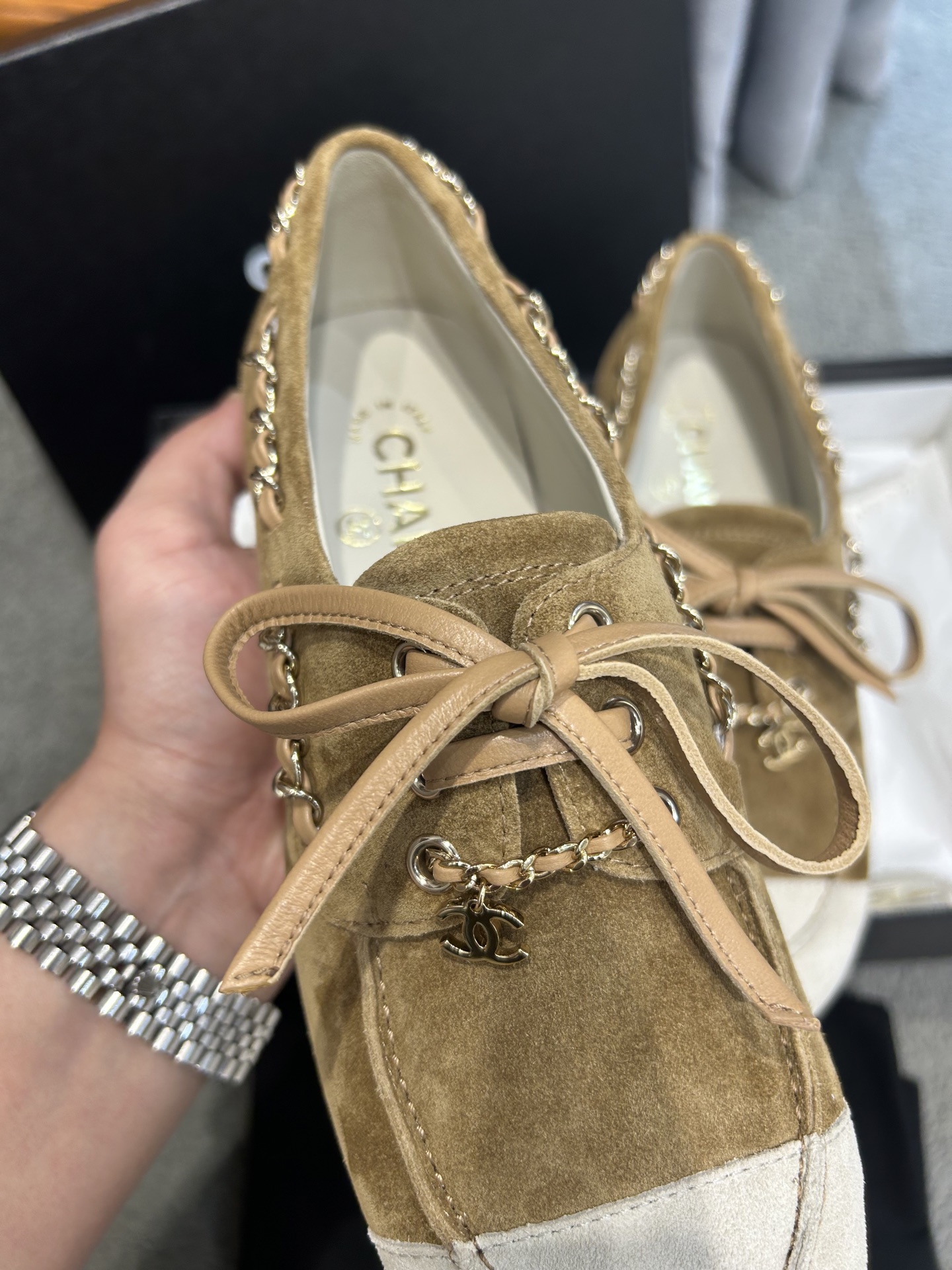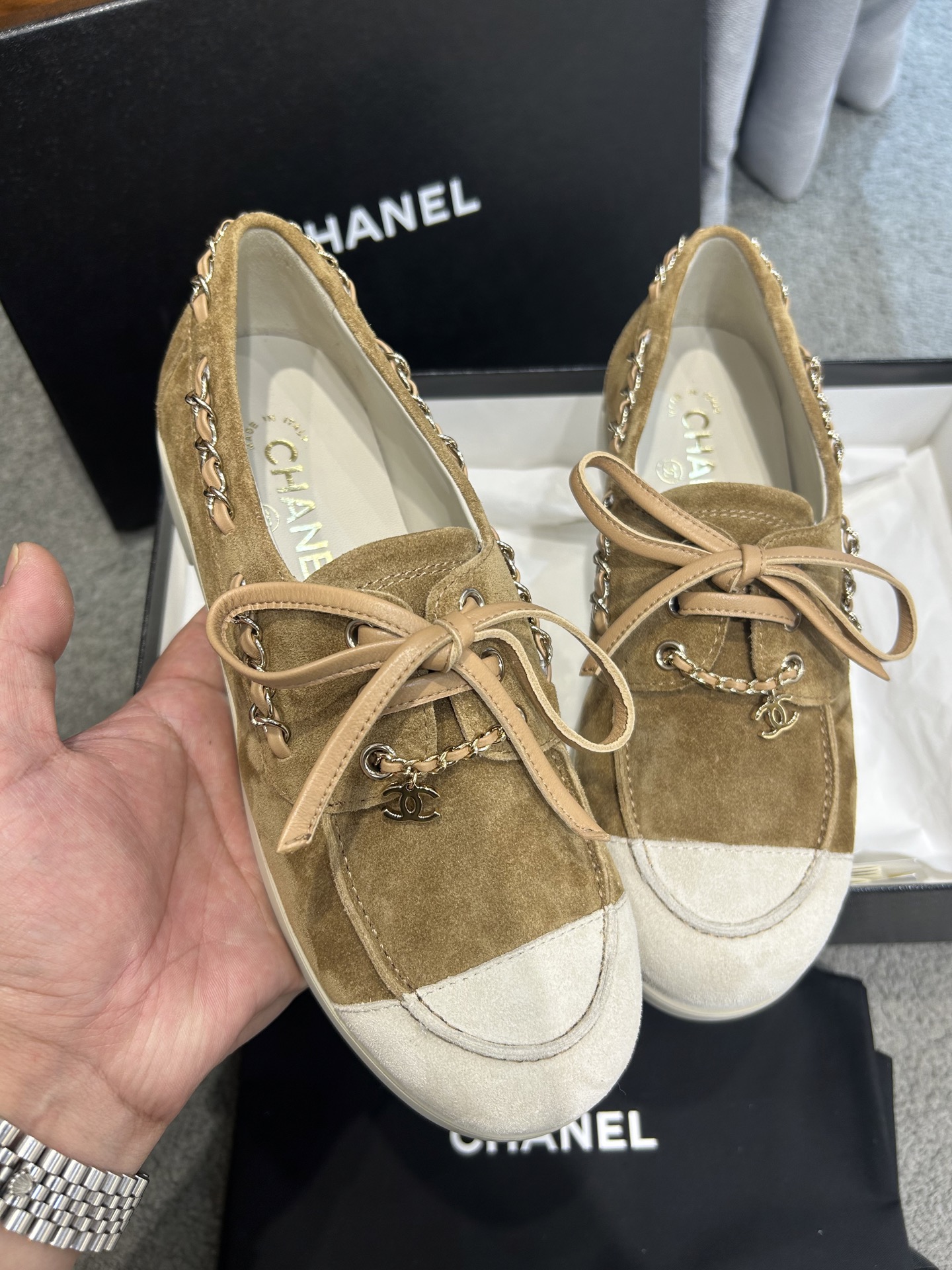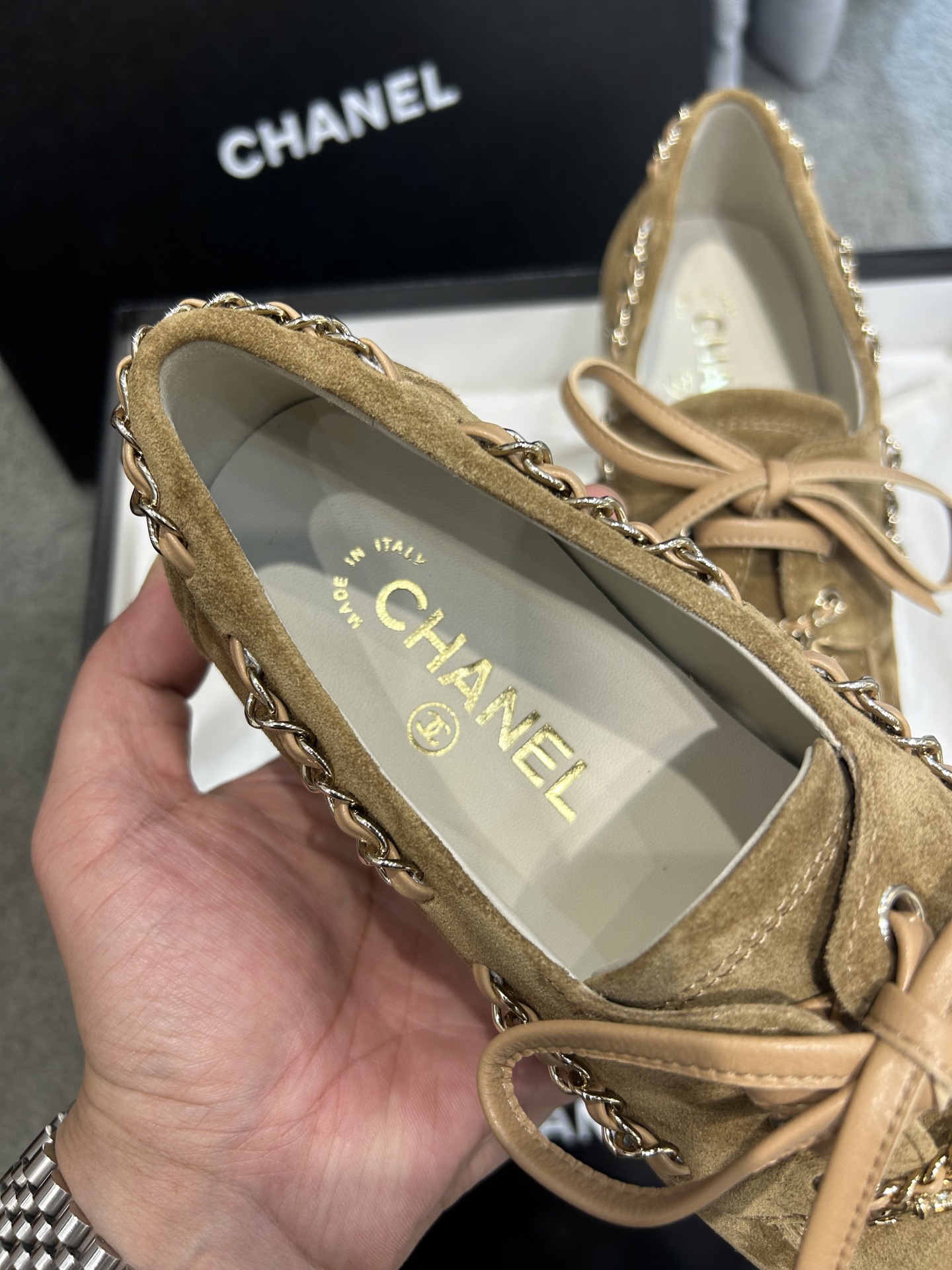 This shoes is AAAAA 1:1 quality (superb). Materials used are identical to the original ones. Chanel trademark marks are indistinguishable to the authentic. Photos take by actual shoes, what you receive will be 100% same with our photos.